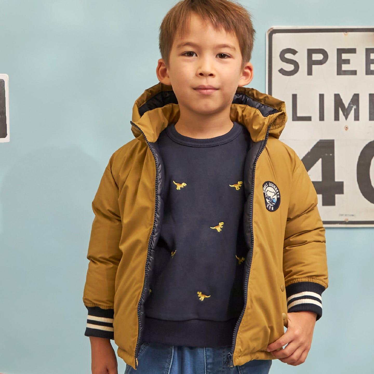 輕便保暖的軟墊夾克。羅紋袖口和可調節下襬配有鬆緊繩,可抵禦寒冷。兜帽可根據天氣、場景或搭配需要拆卸。從現在開始,它很可能每天都活躍在寒冷的季節裡。