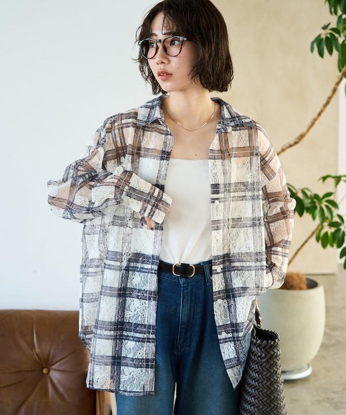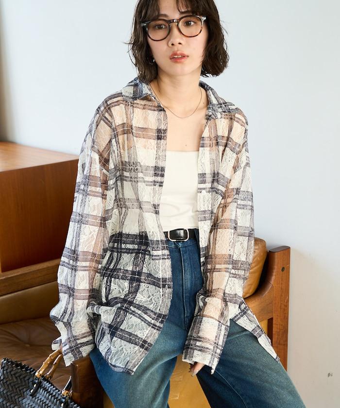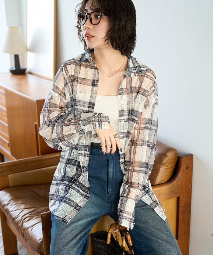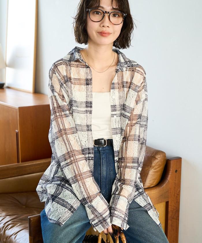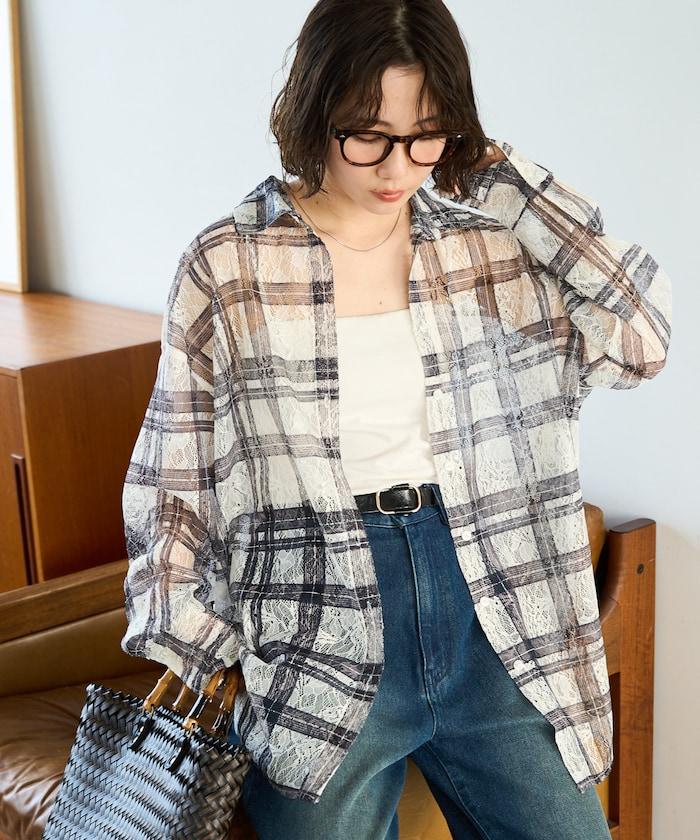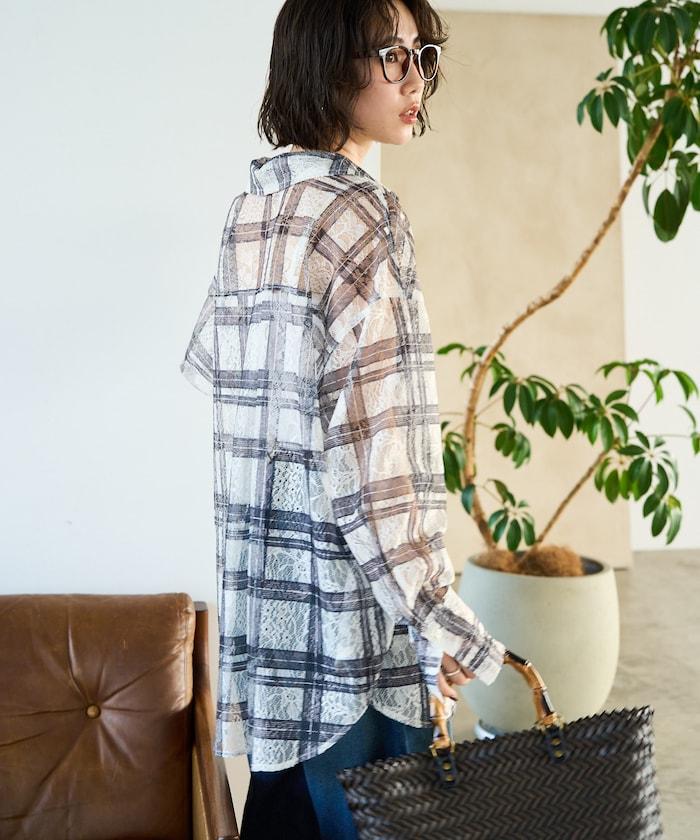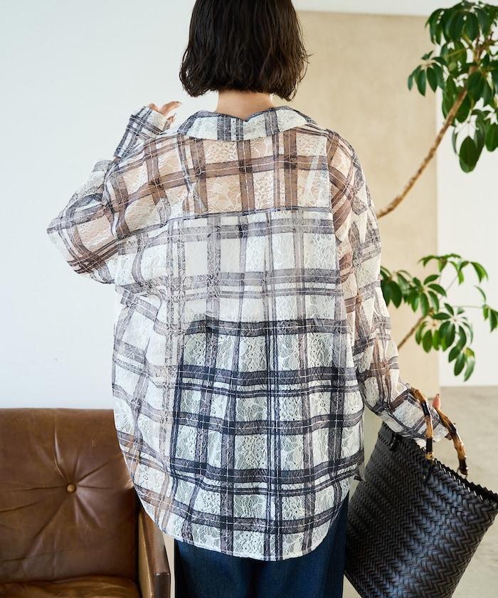 レースチェックプリントオーバーシャツ(セットアップ対応)【限定展開】