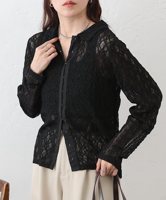 蕾絲格紋印花罩衫