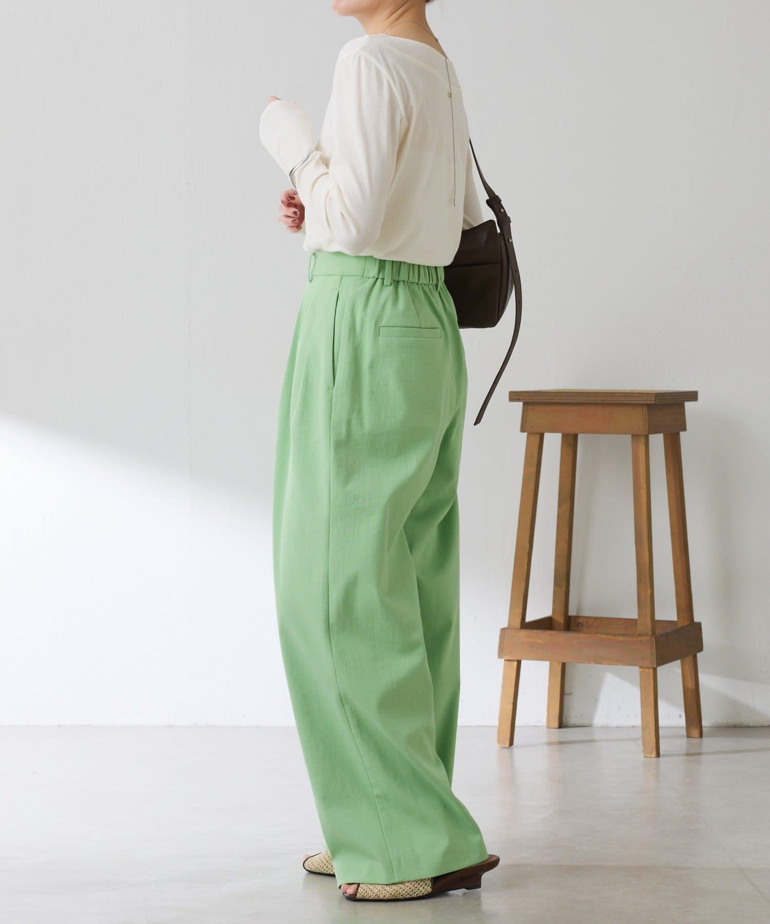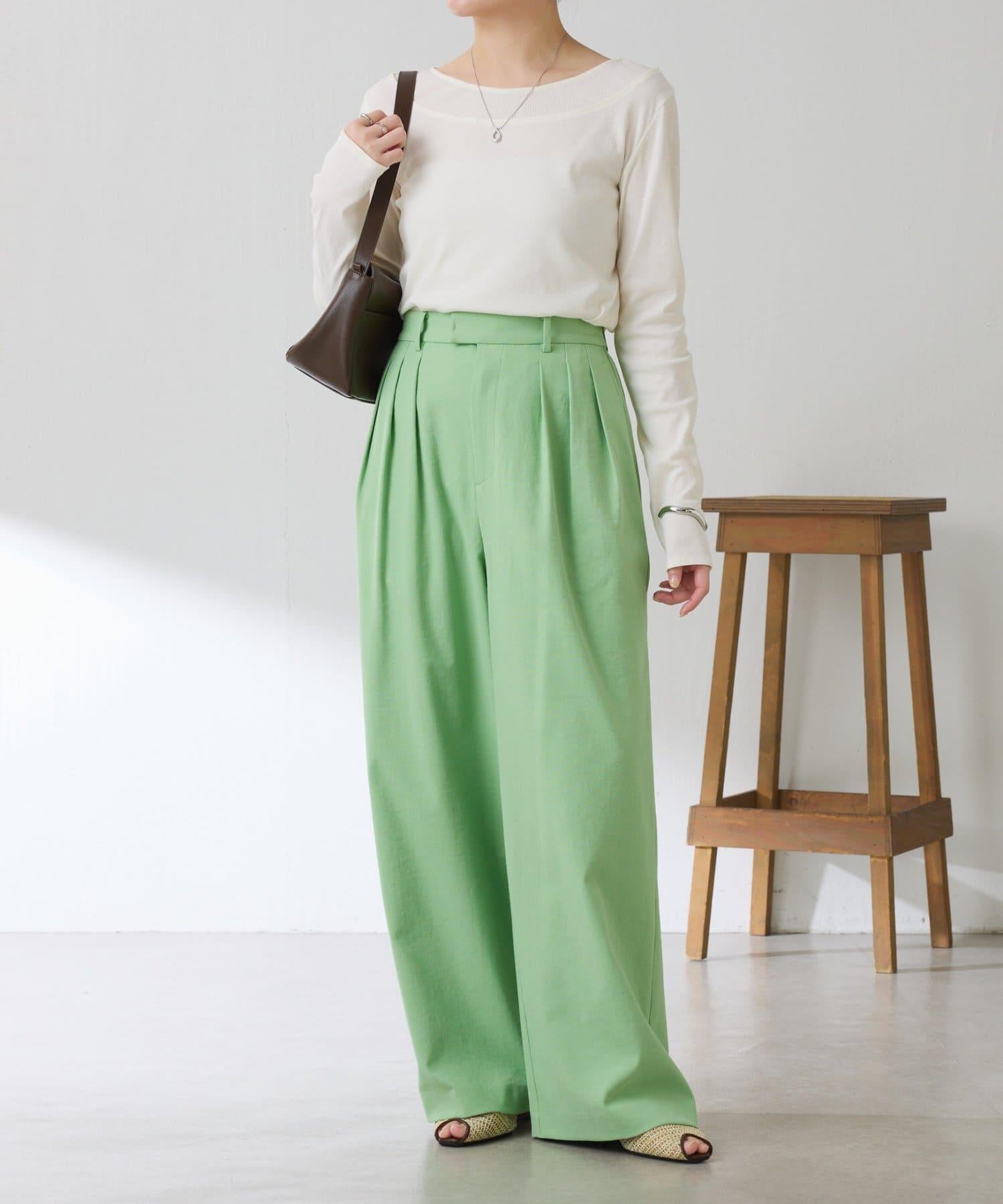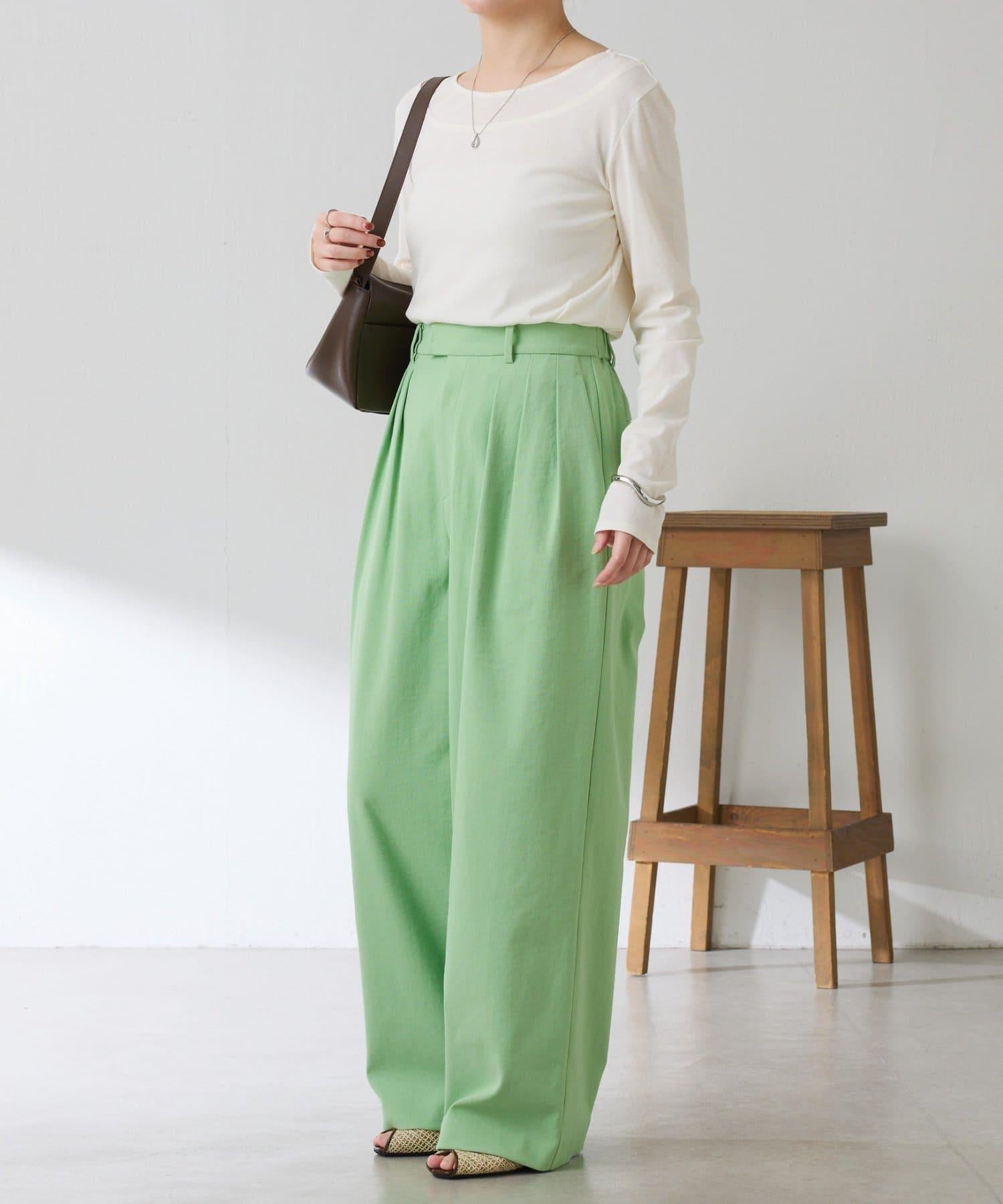通過將相同紗線的面料與不同的編織方法對接,營造出一種整體感。這是一款易於在工作中使用的多層次產品。