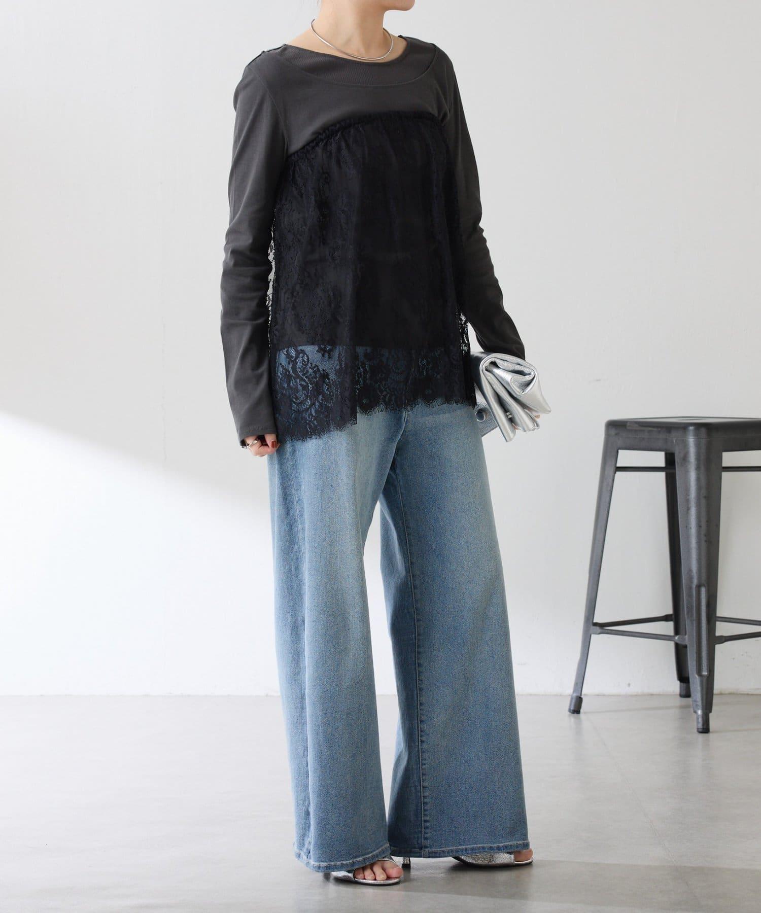 衣領部分的面料略微透薄,營造出一種寬鬆感,看起來很有女人味。