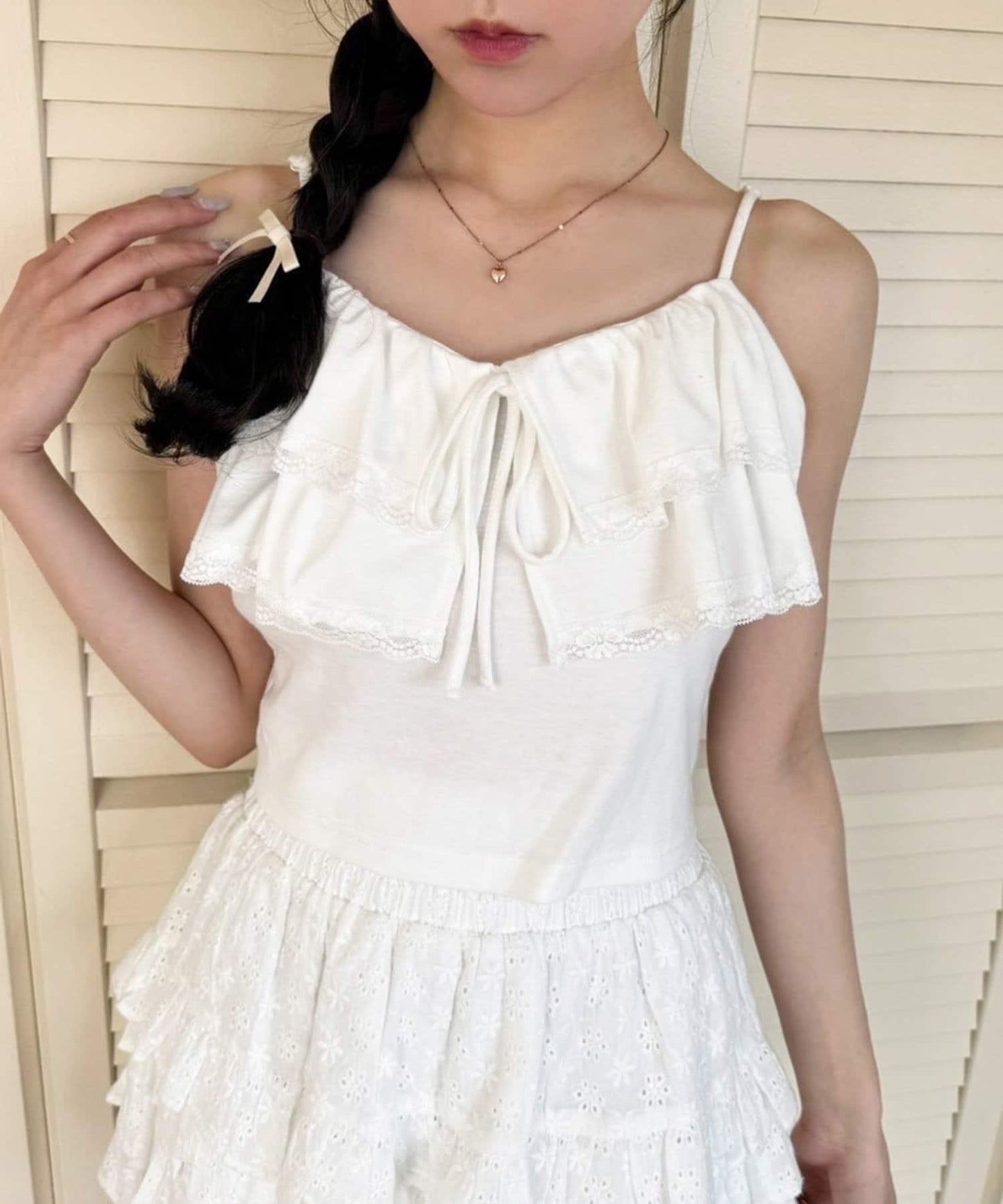 帶有絲帶和流蘇的吊帶衫,突出你的座標。