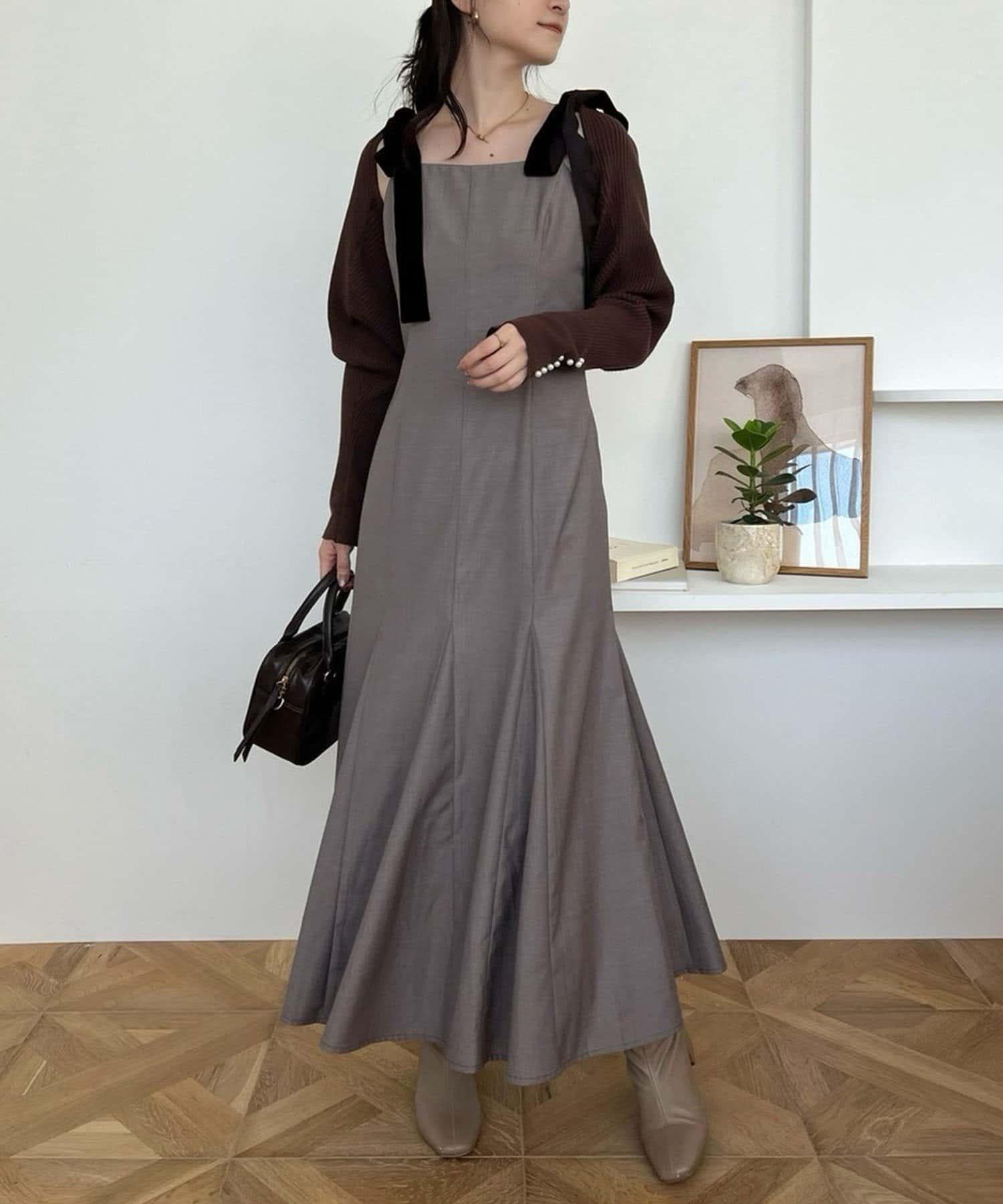 由於是吊帶連衣裙,因此可以搭配各種服飾。