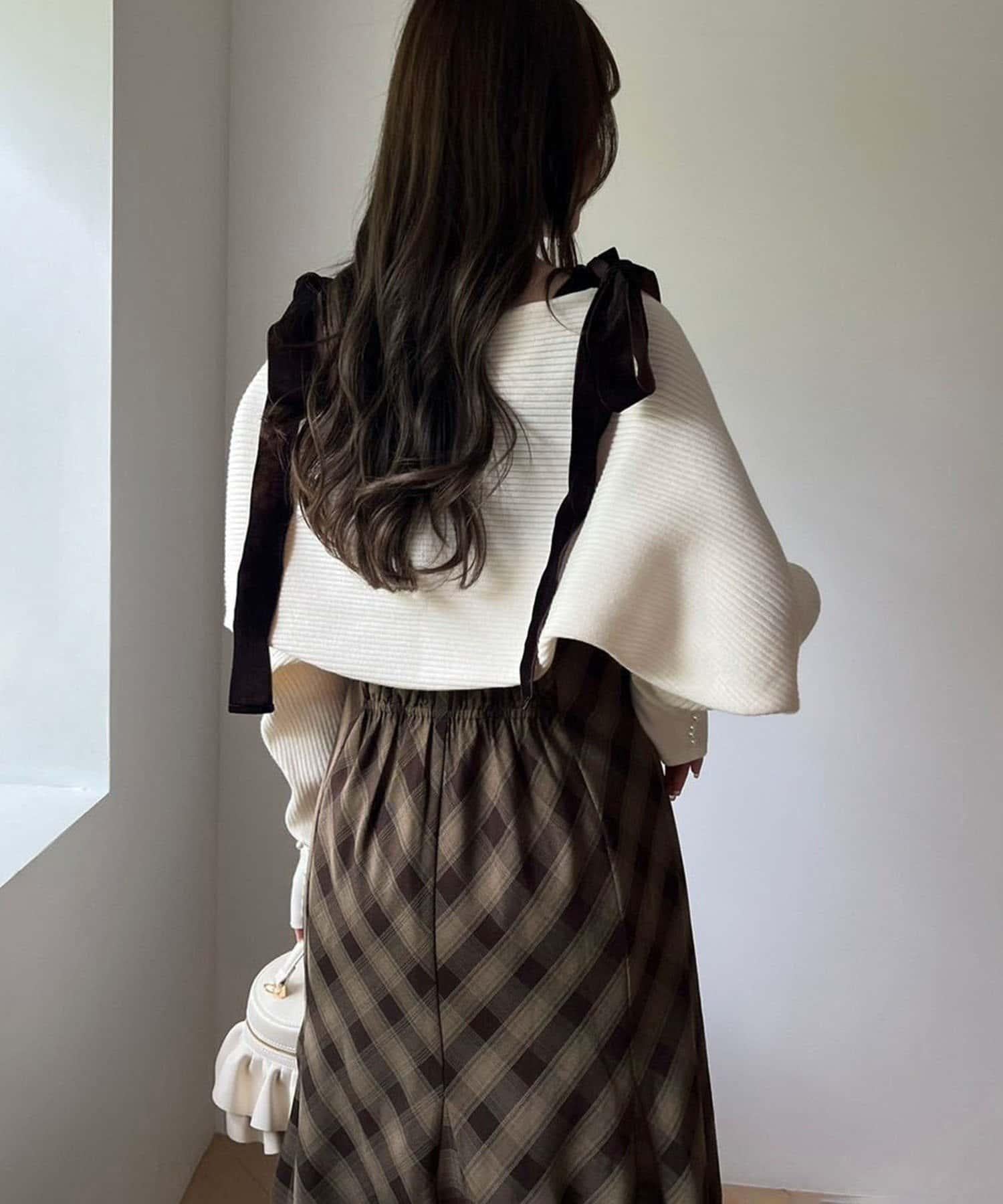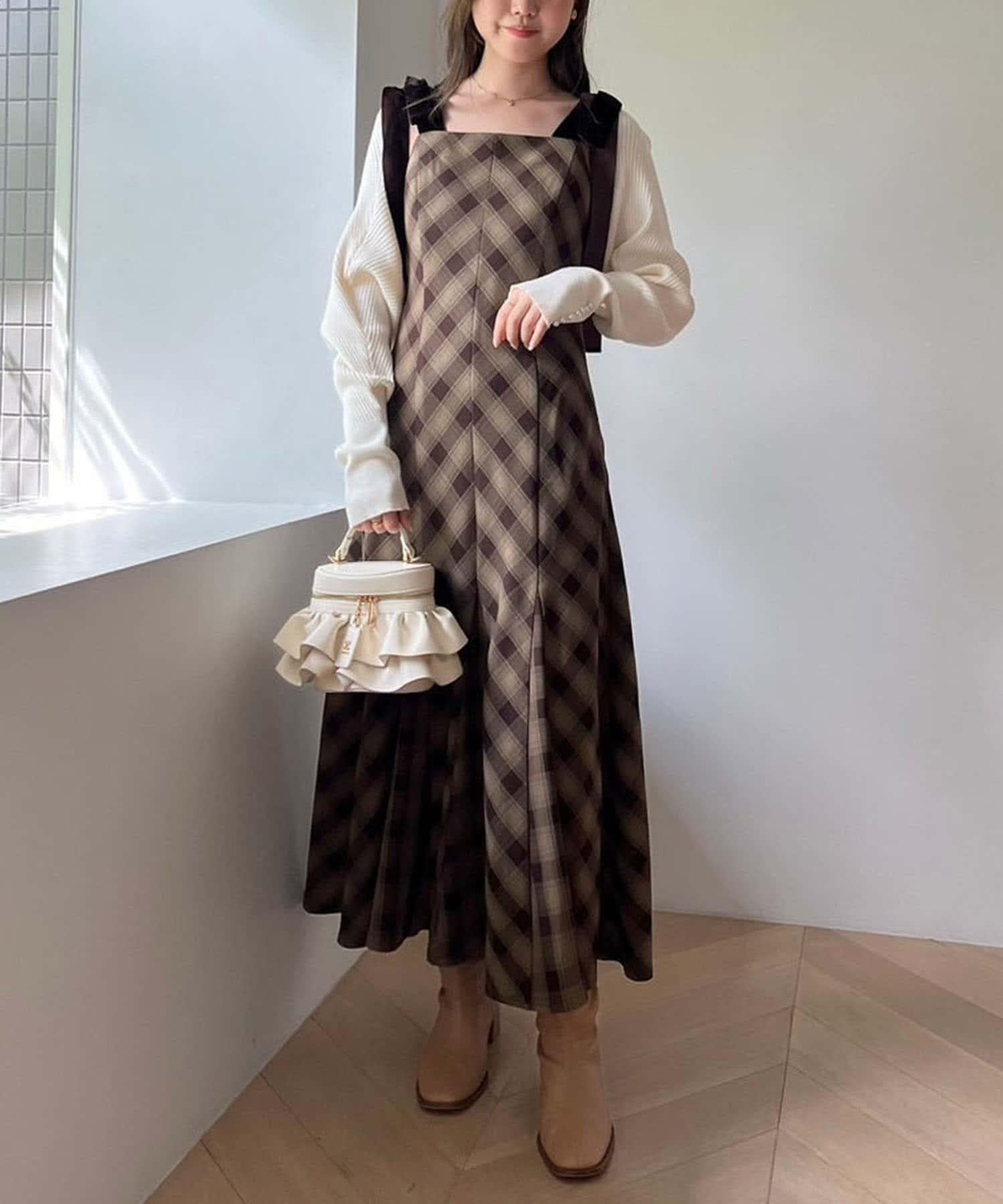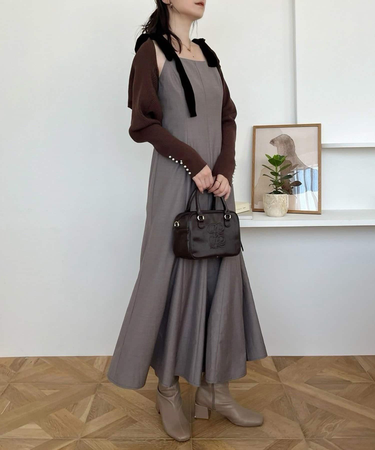 絲帶可拆卸,因此也可作為簡單的連身裙穿著◎。