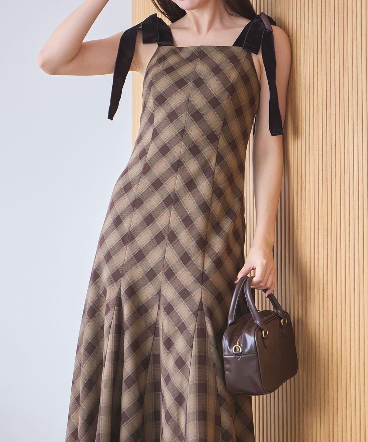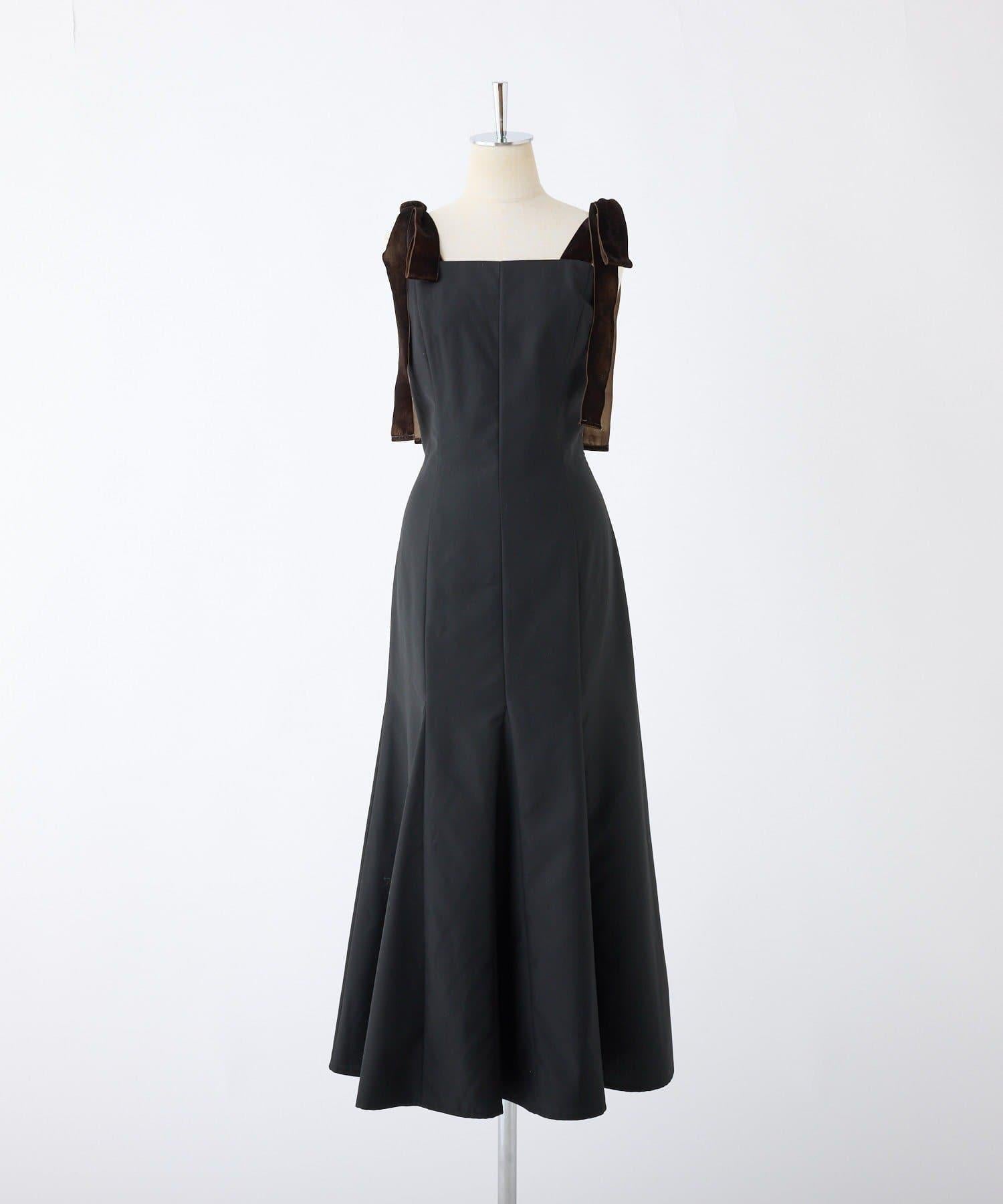 醒目的吊帶連衣裙,肩部飾有大絲帶。