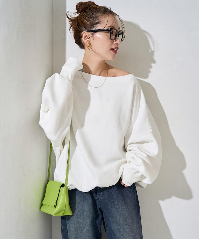 露肩運動衫在偏向休閒的運動衫搭配中給人以女性化的印象。