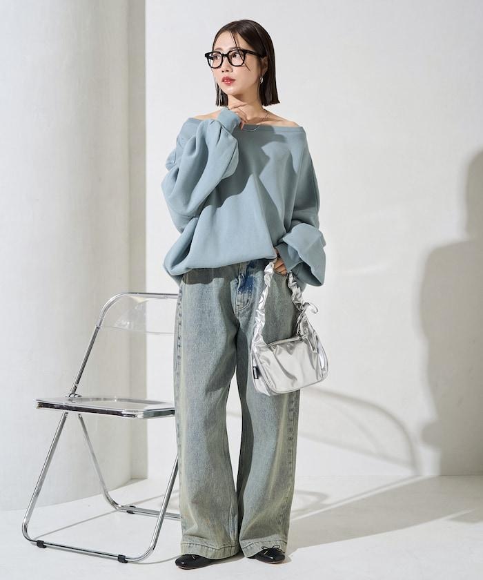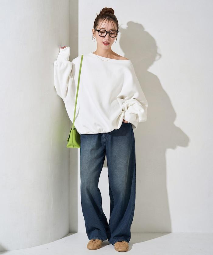 汗衫套頭衫採用露肩設計,盡顯窈窕身姿。