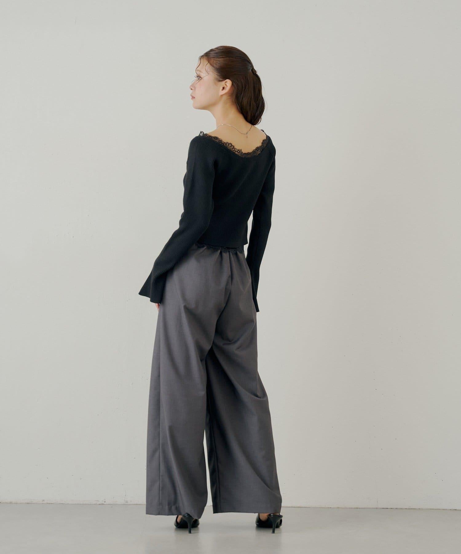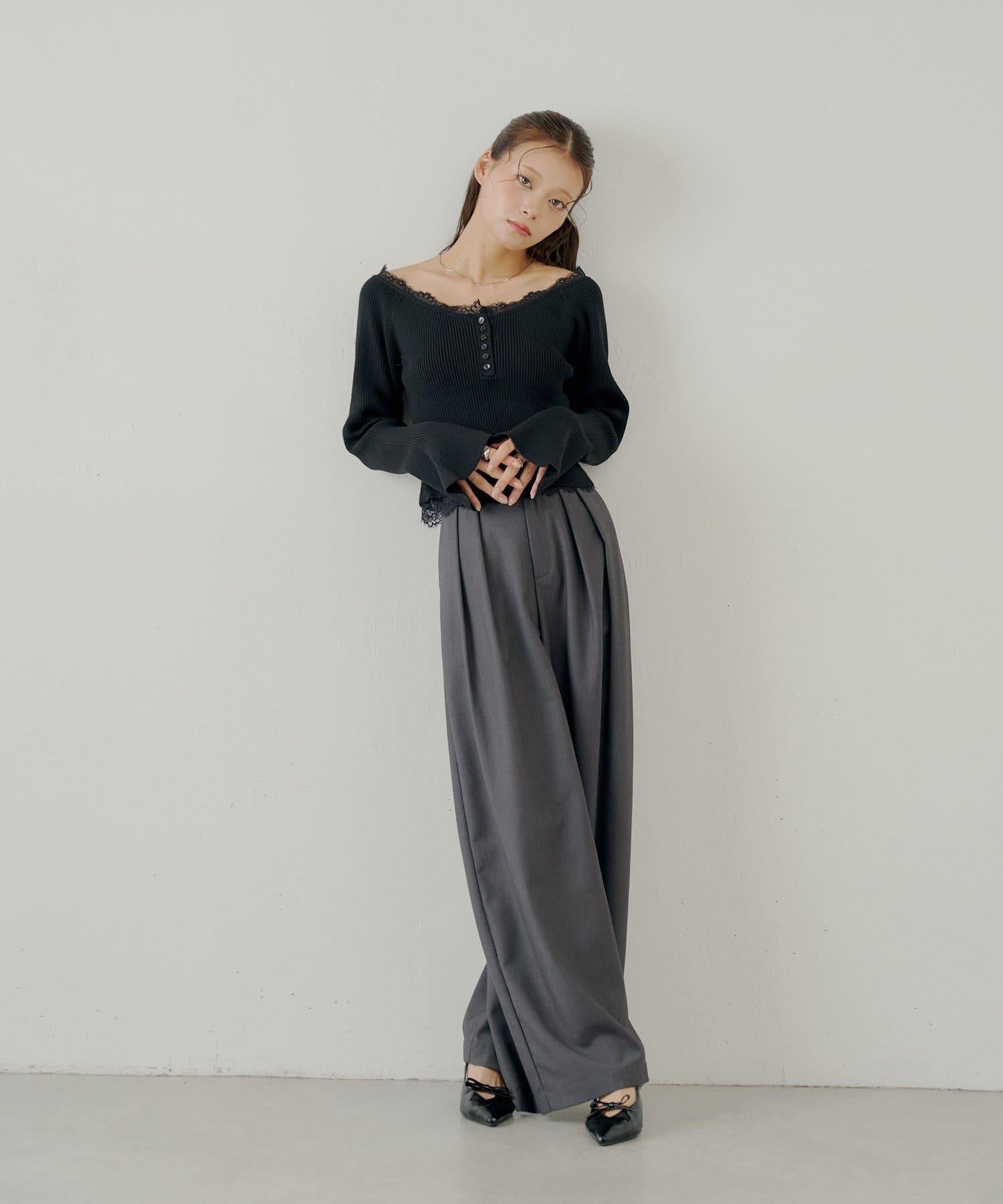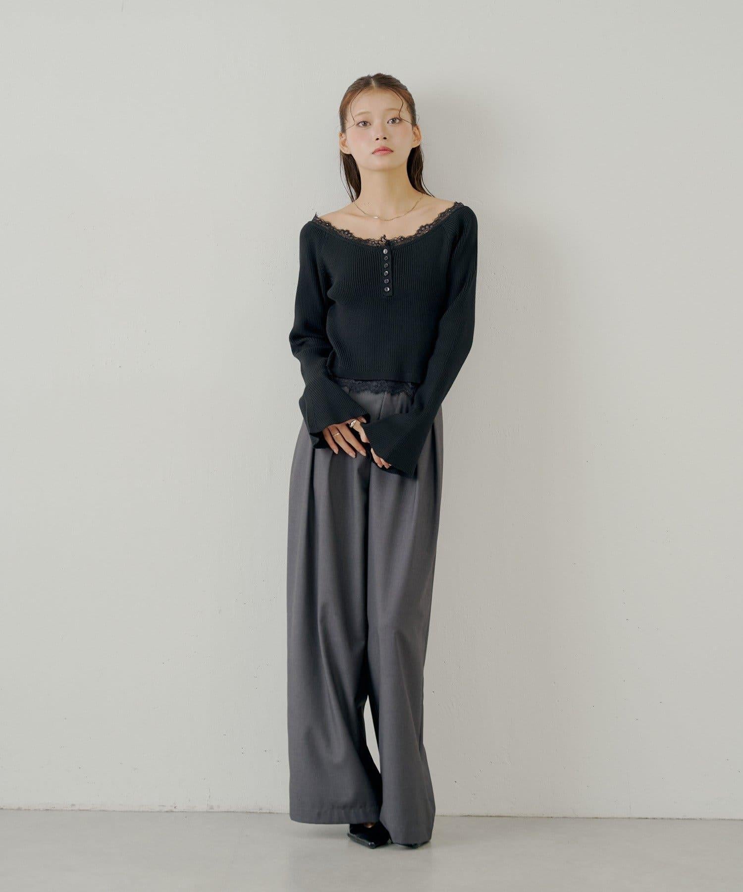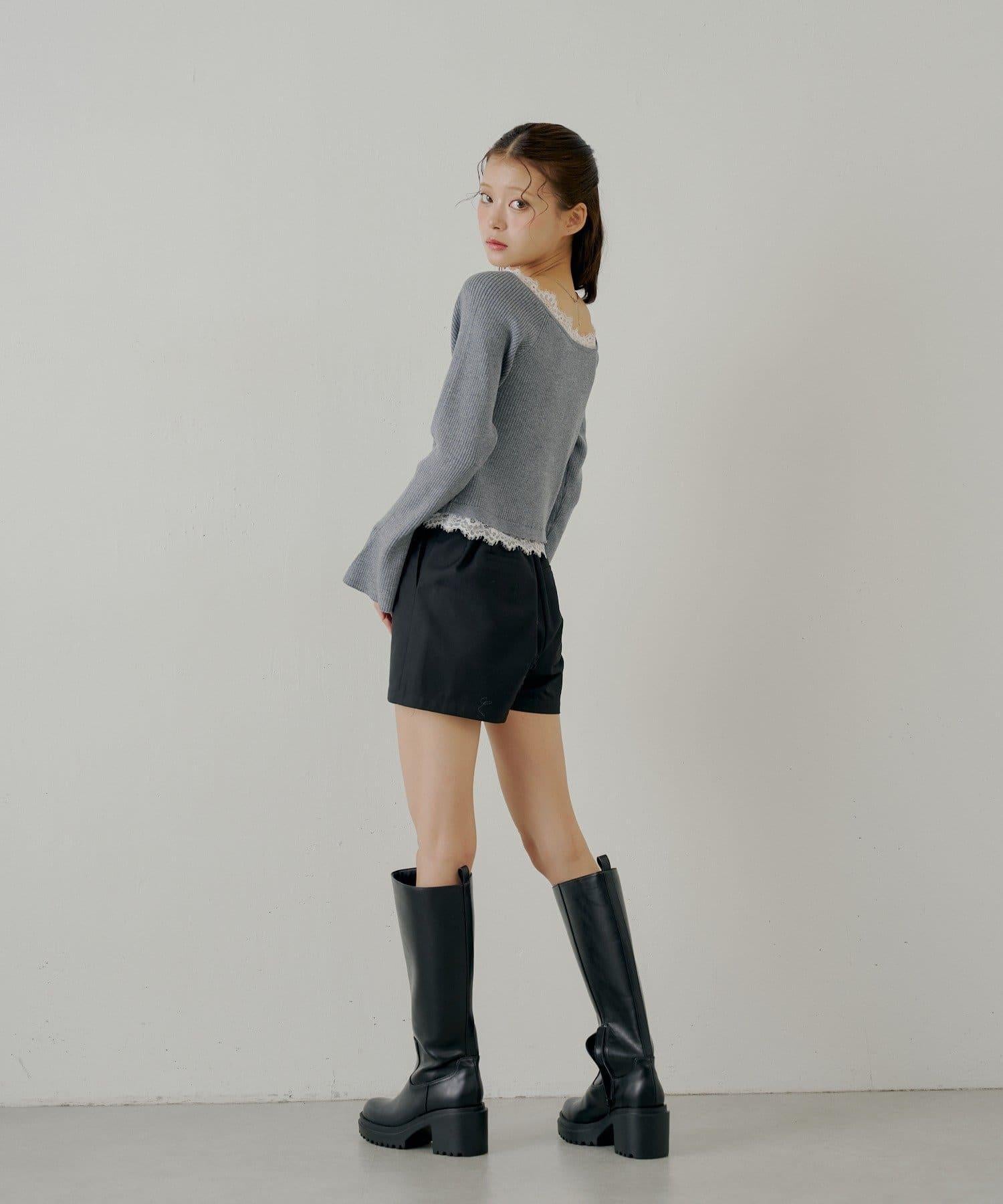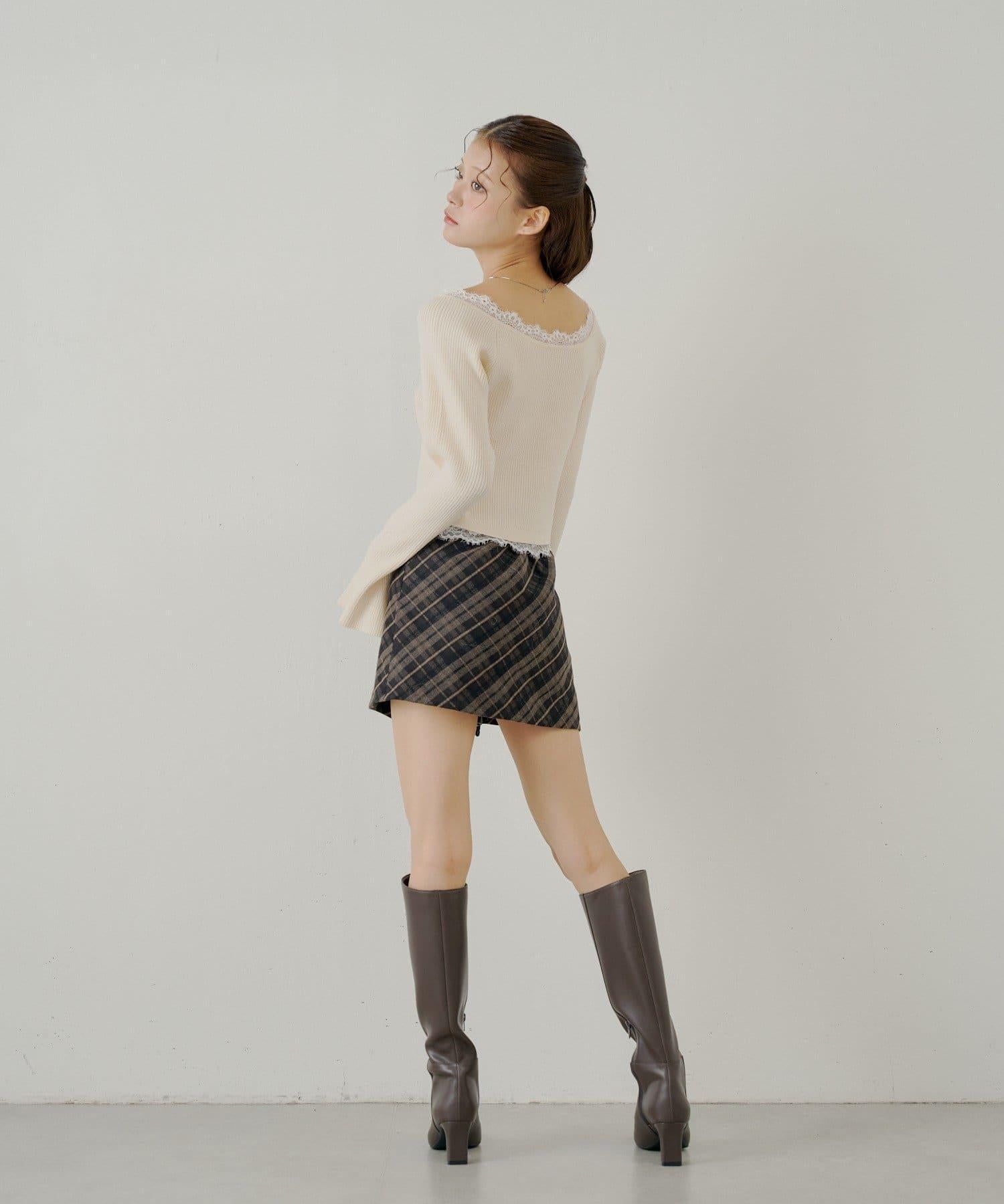 這款雞心領針織衫的領口和下襬採用了精緻的蕾絲花邊,盡顯大人的甜美氣質。