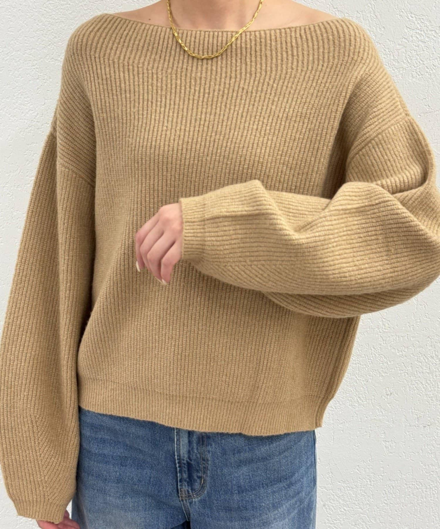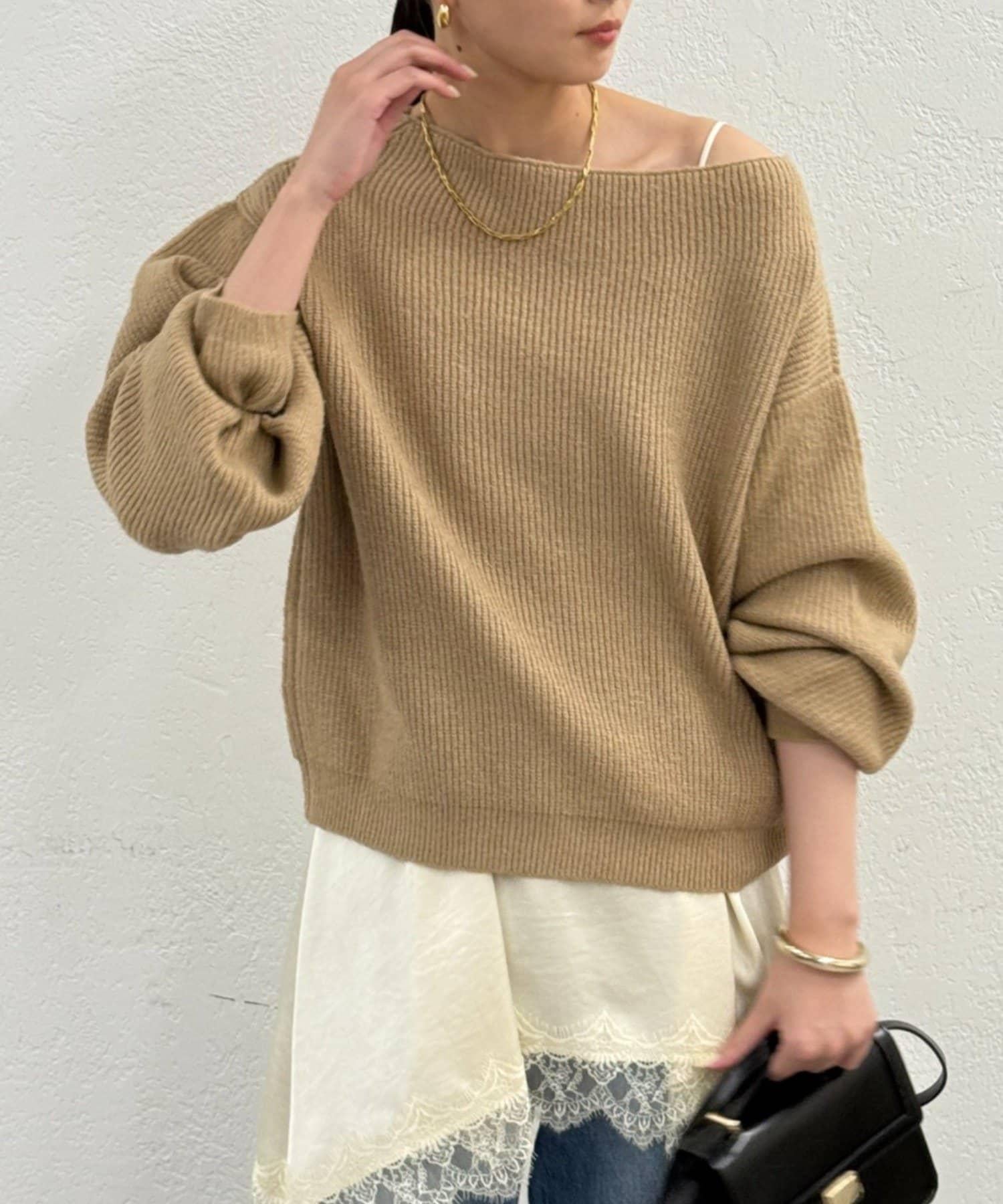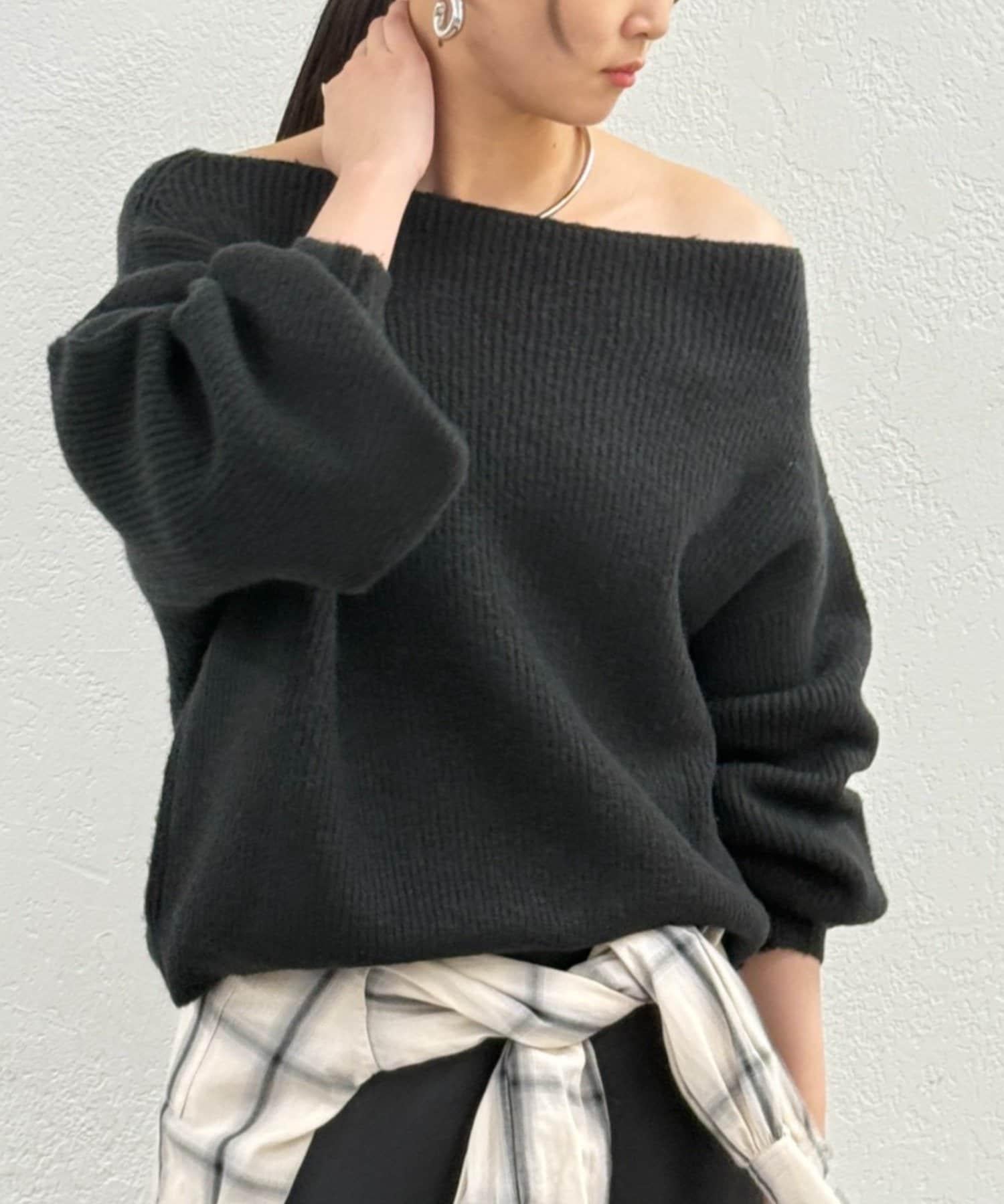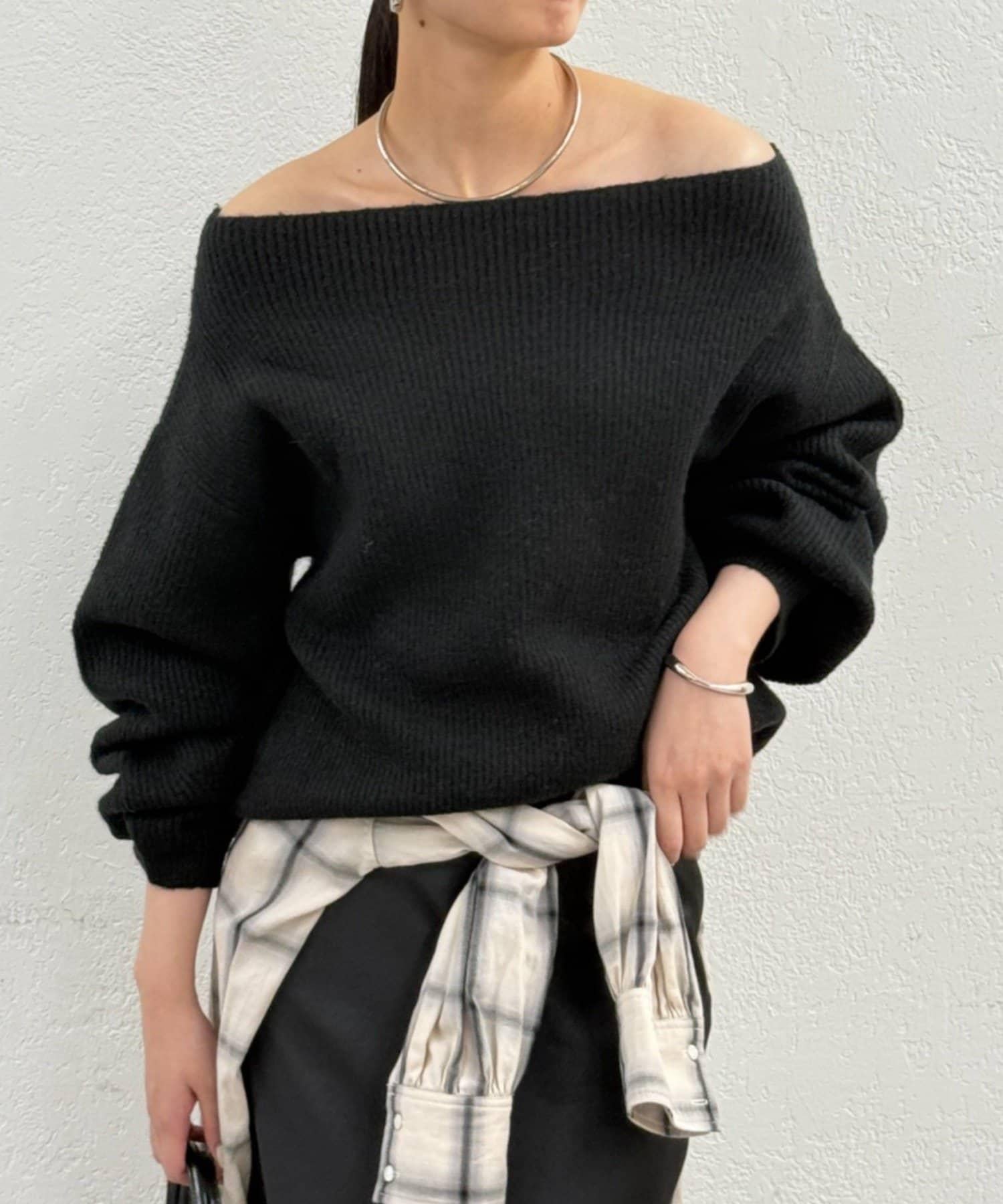 一字肩針織衫