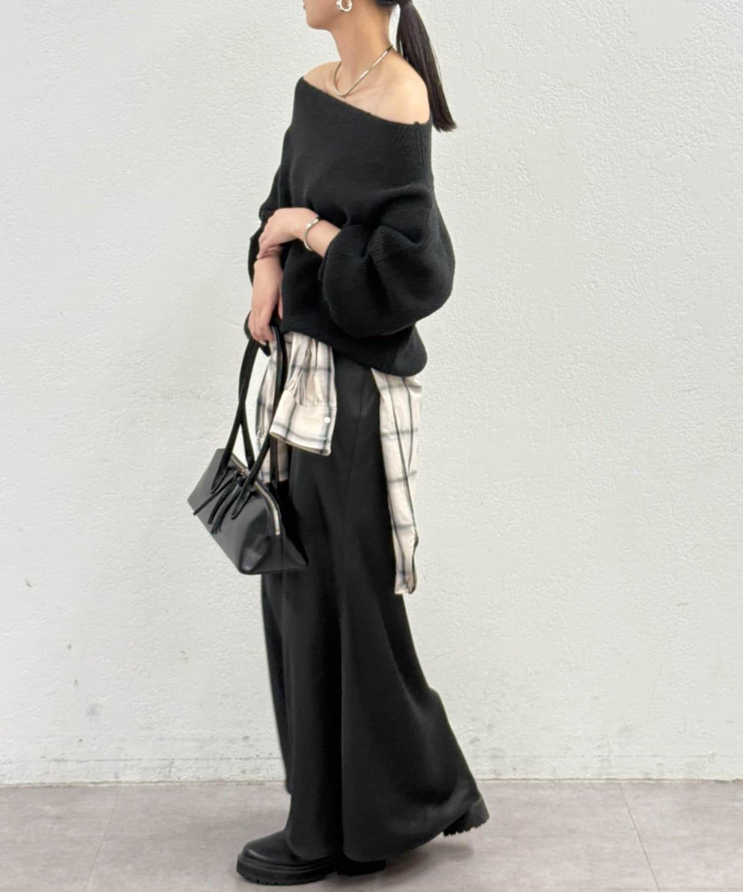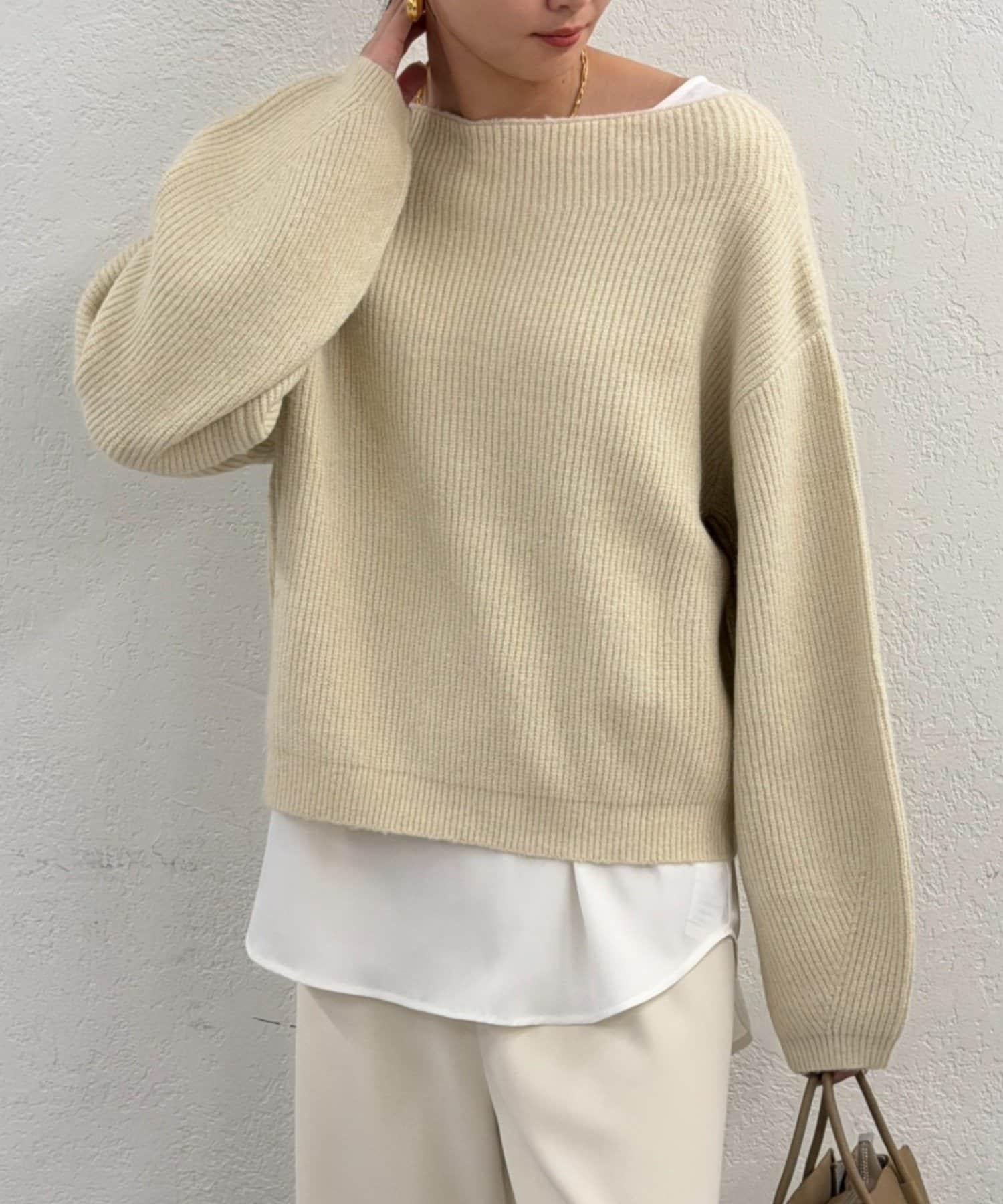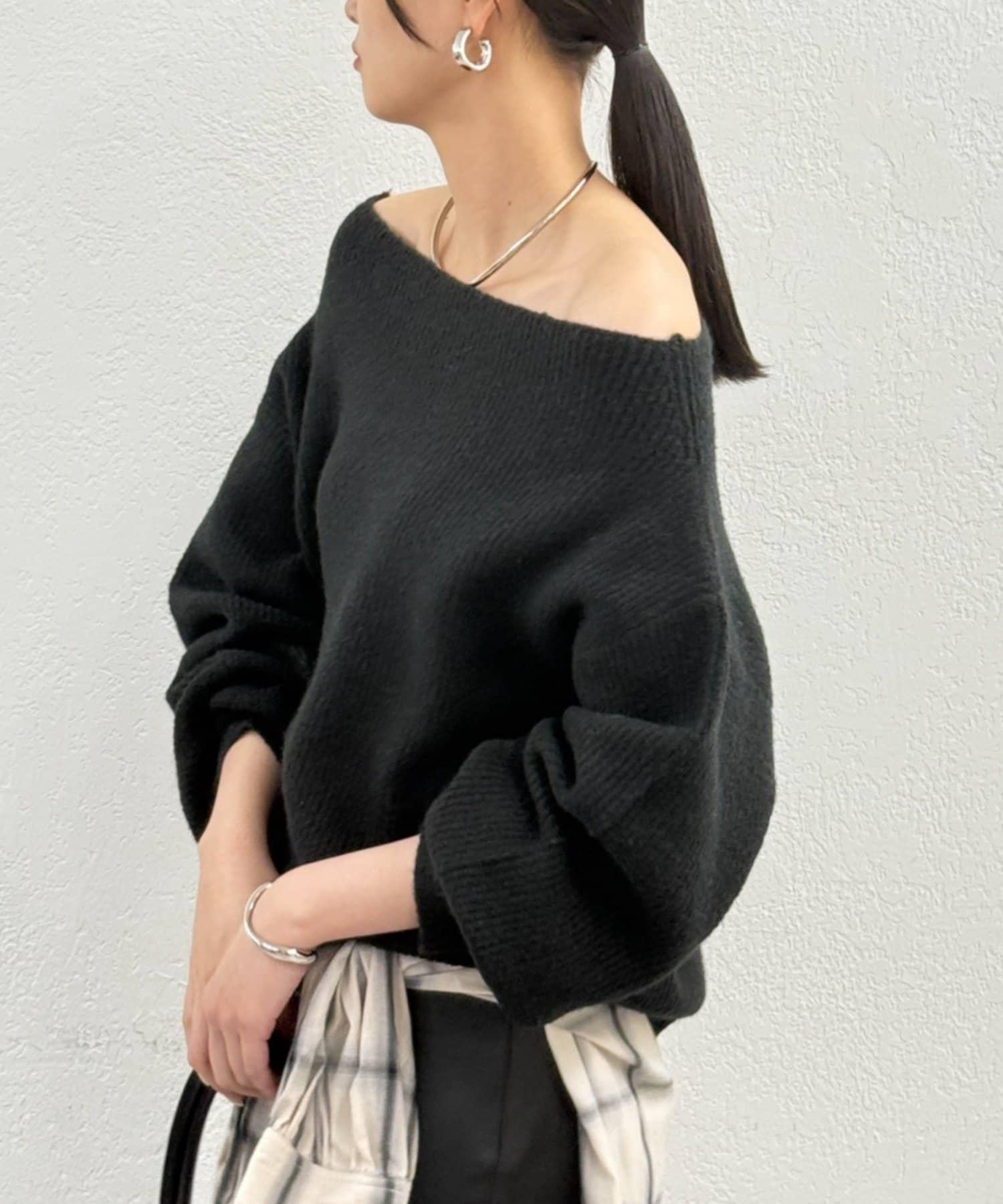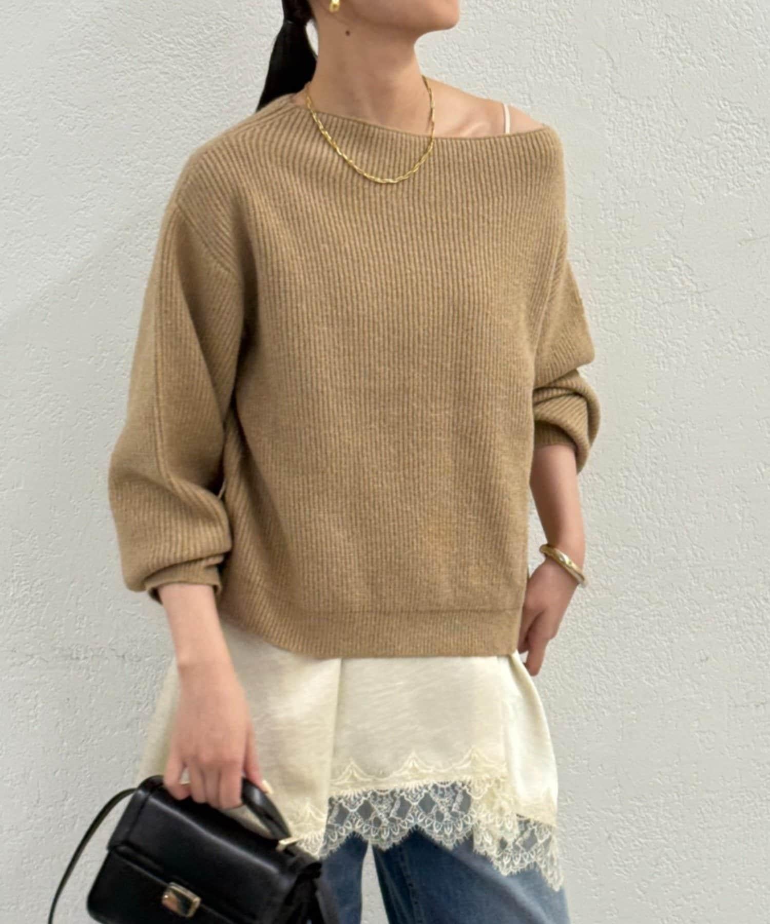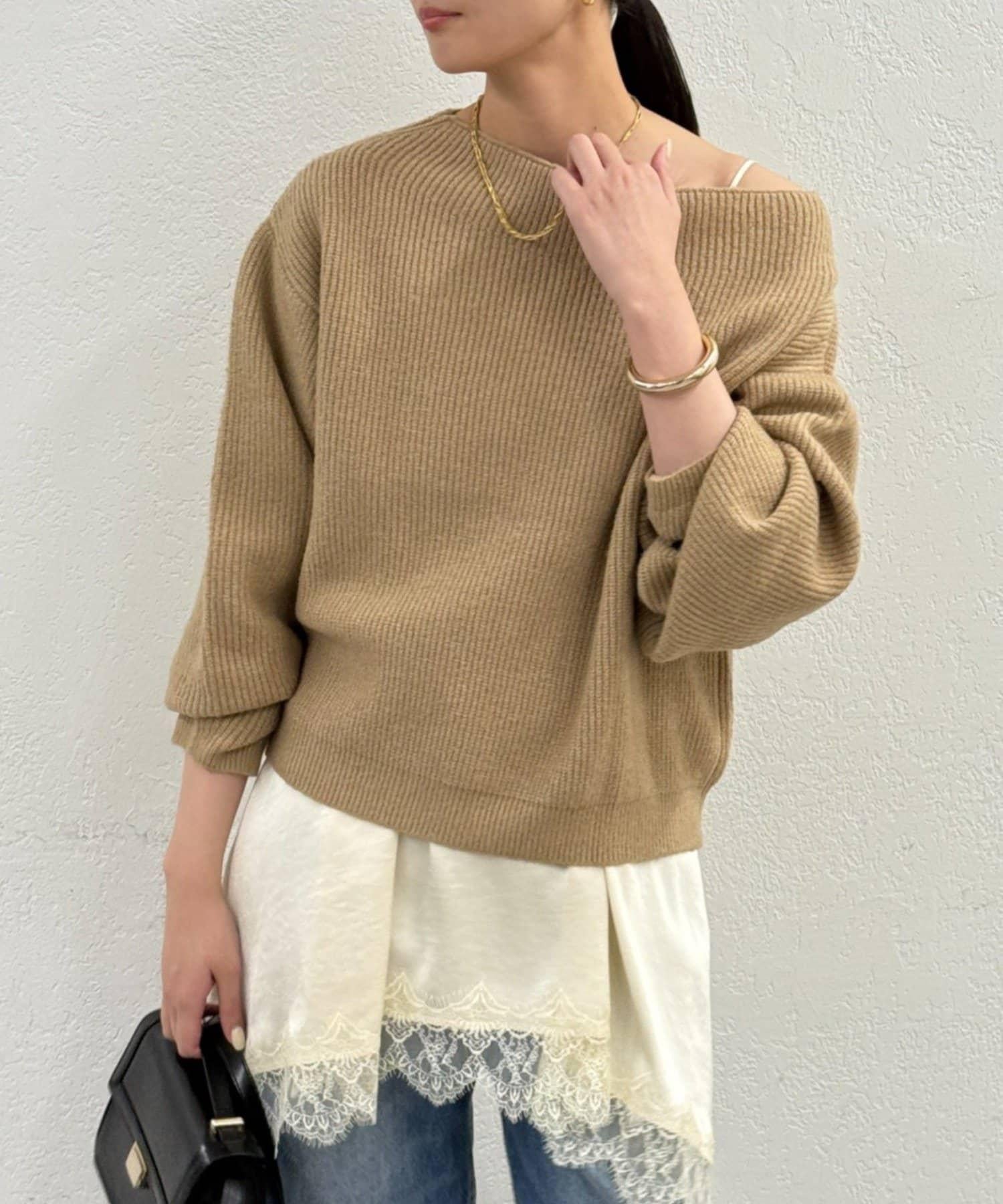 一字肩針織衫