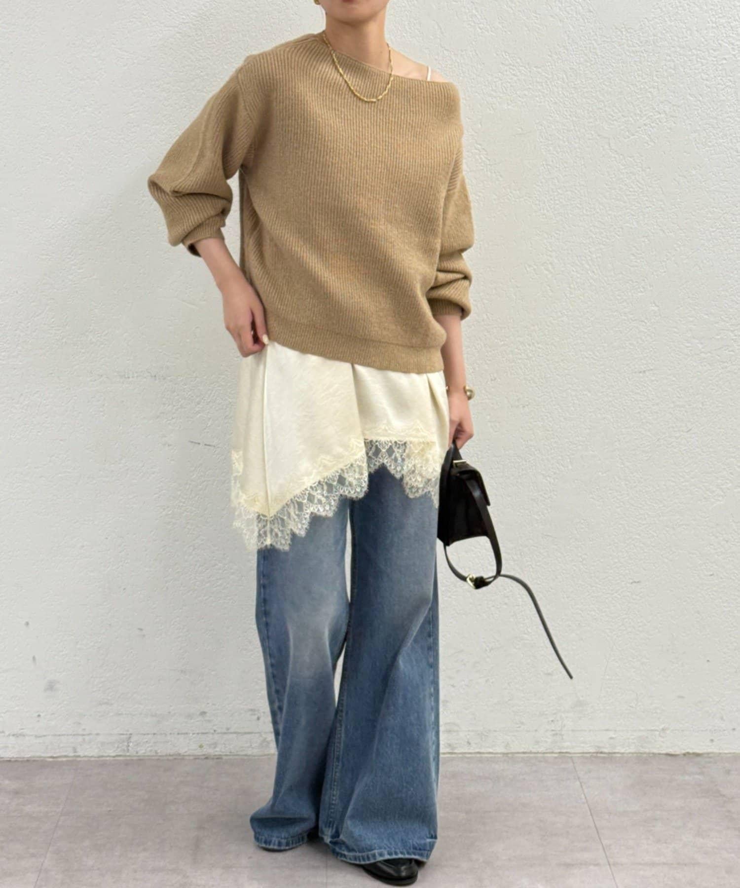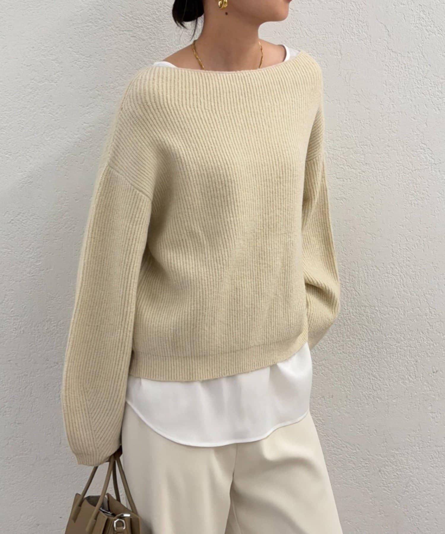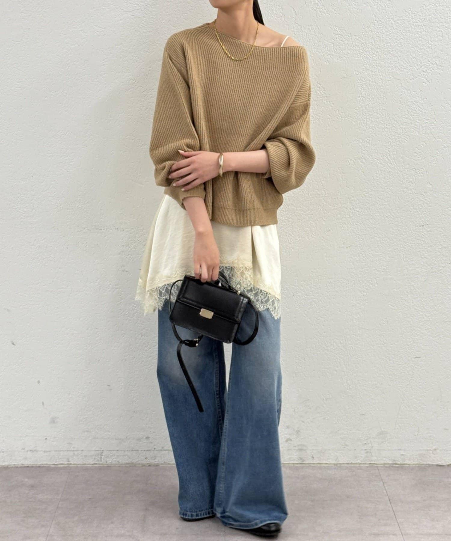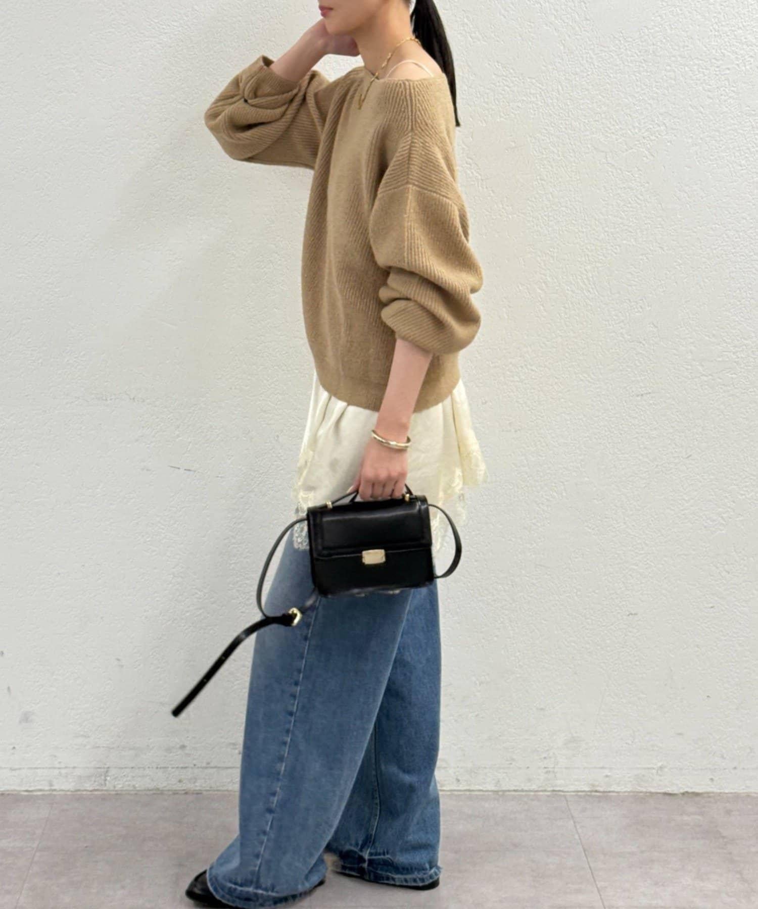 一字肩針織衫