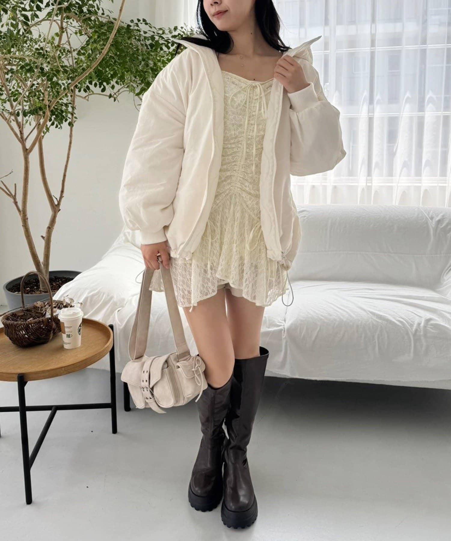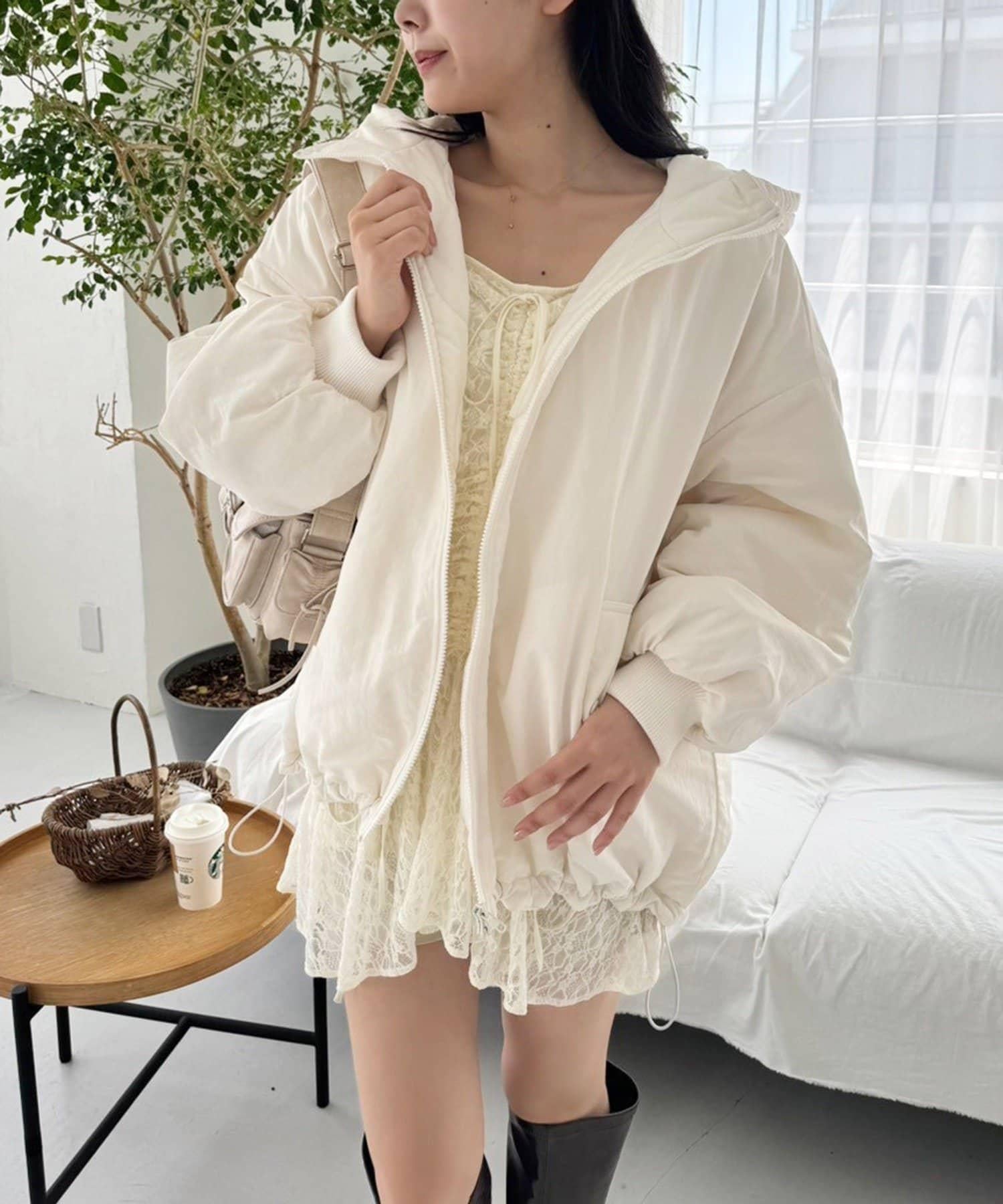 打開下襬露出下半身也是不錯的選擇。