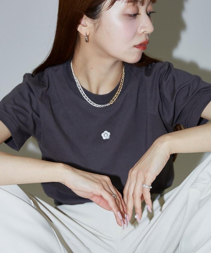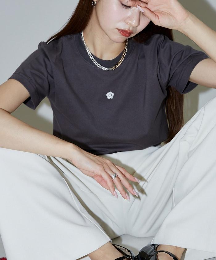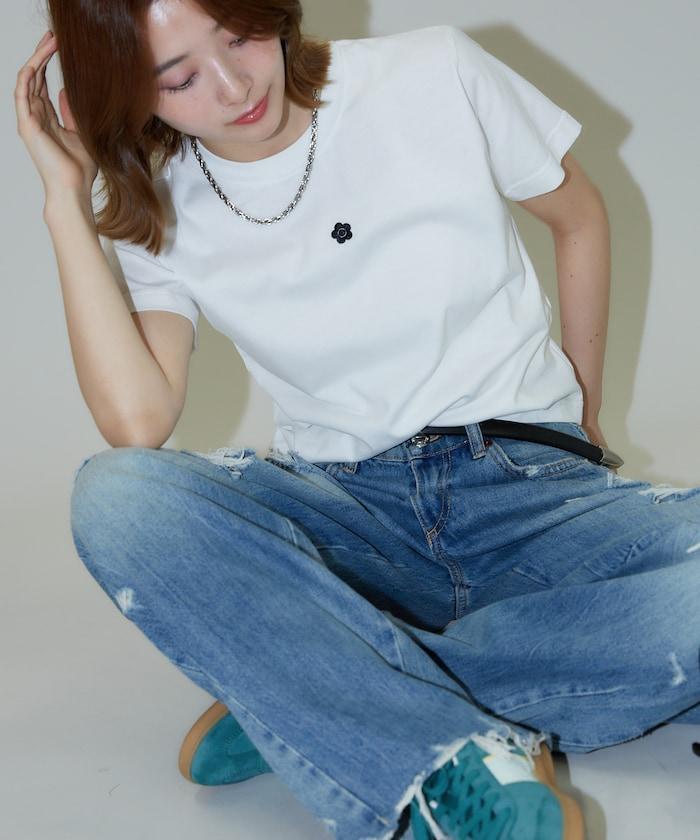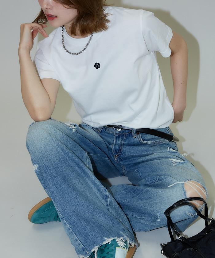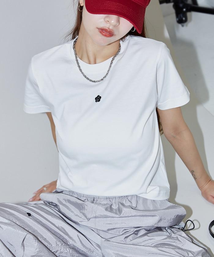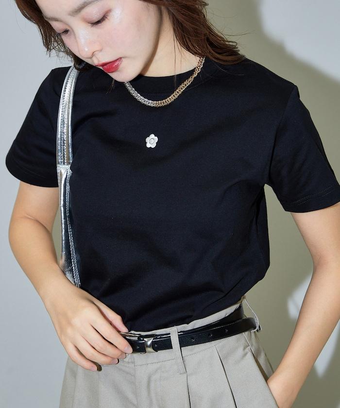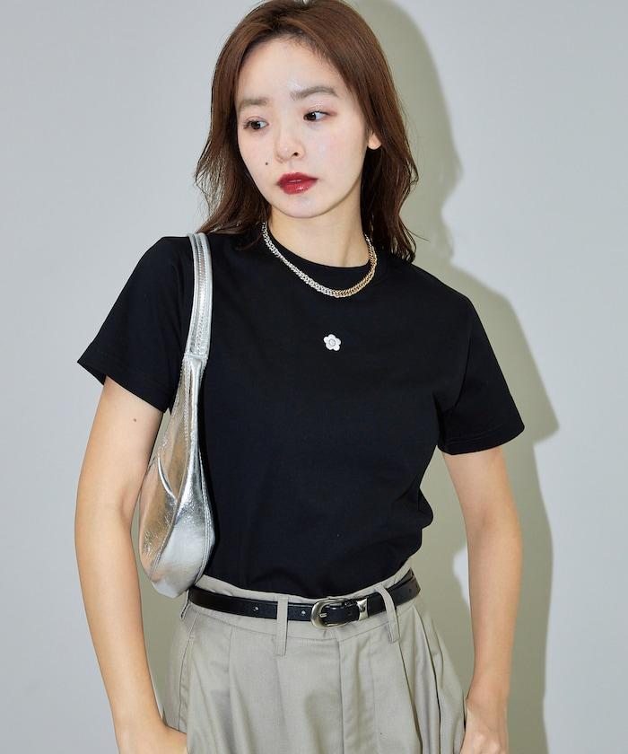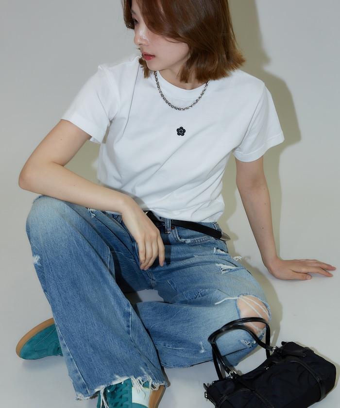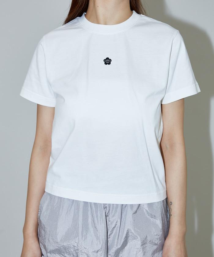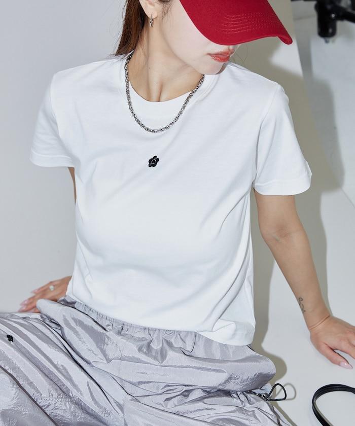 帶有品牌標誌性花朵刺繡圖案的 T 恤。