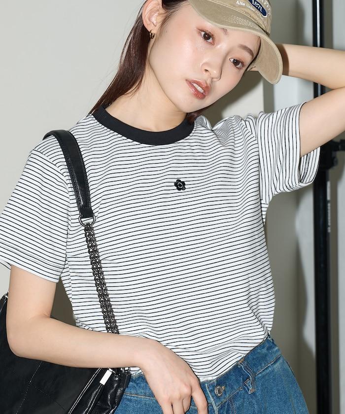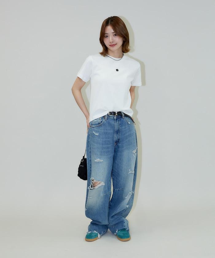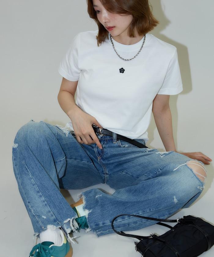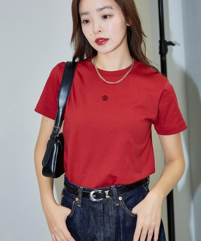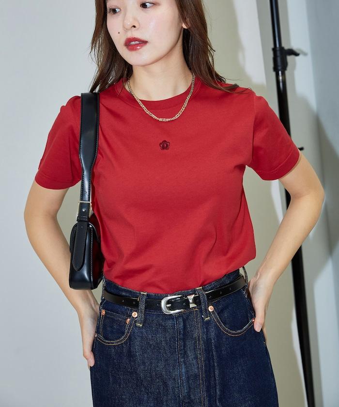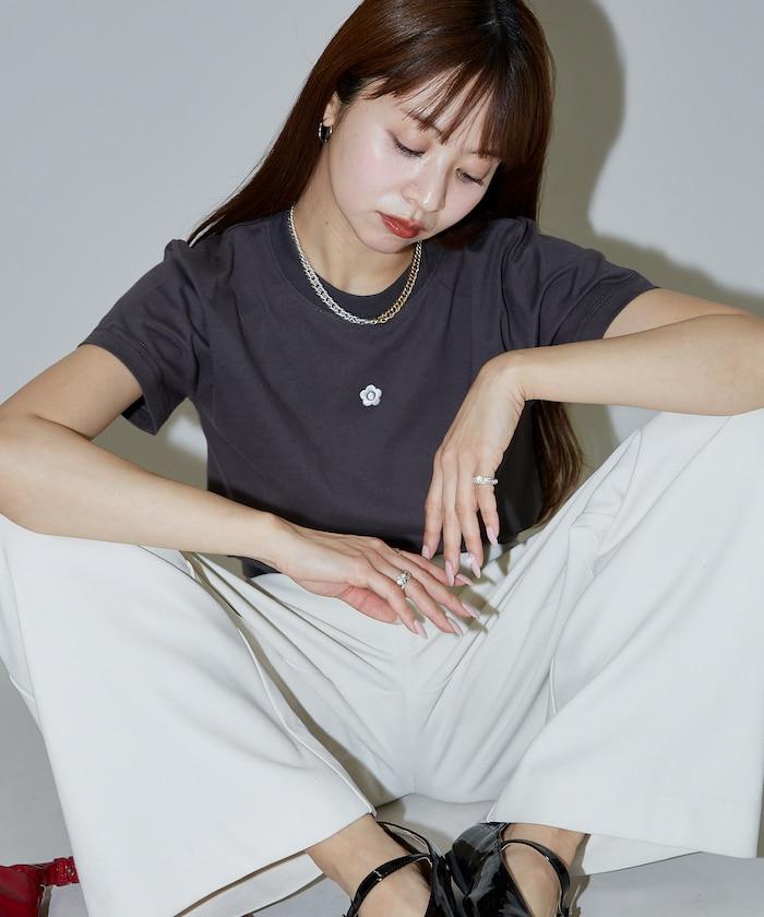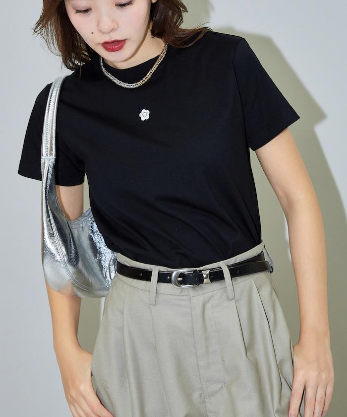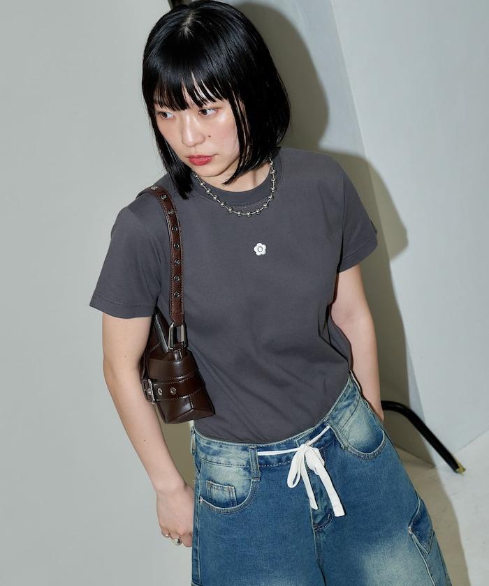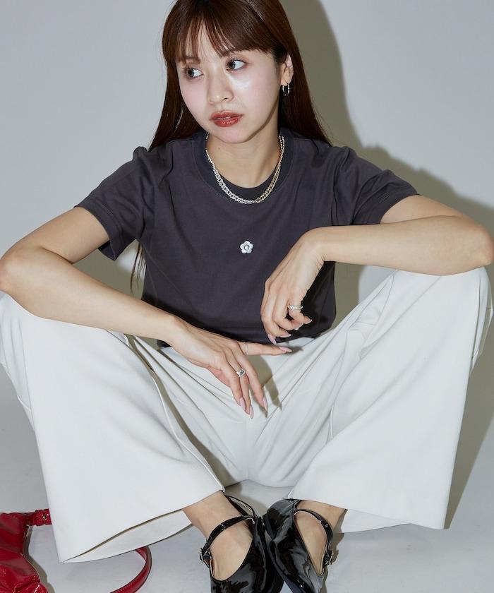 帶有品牌標誌性花朵刺繡圖案的 T 恤。