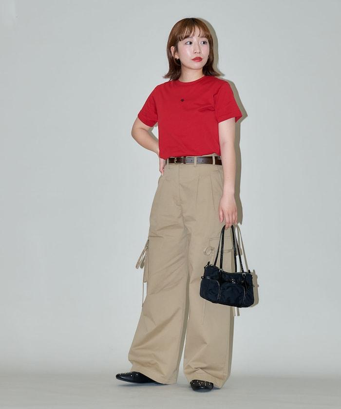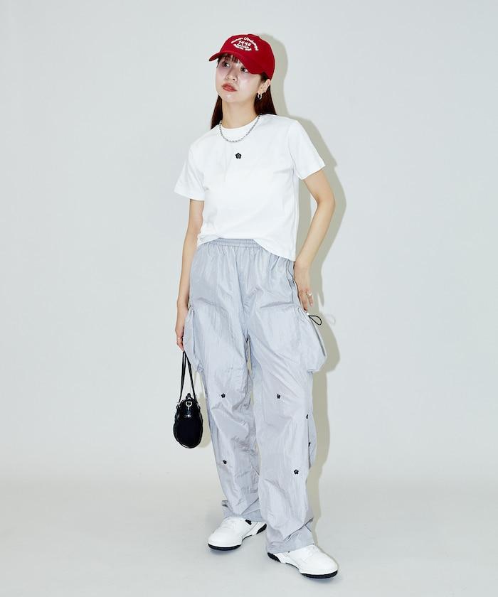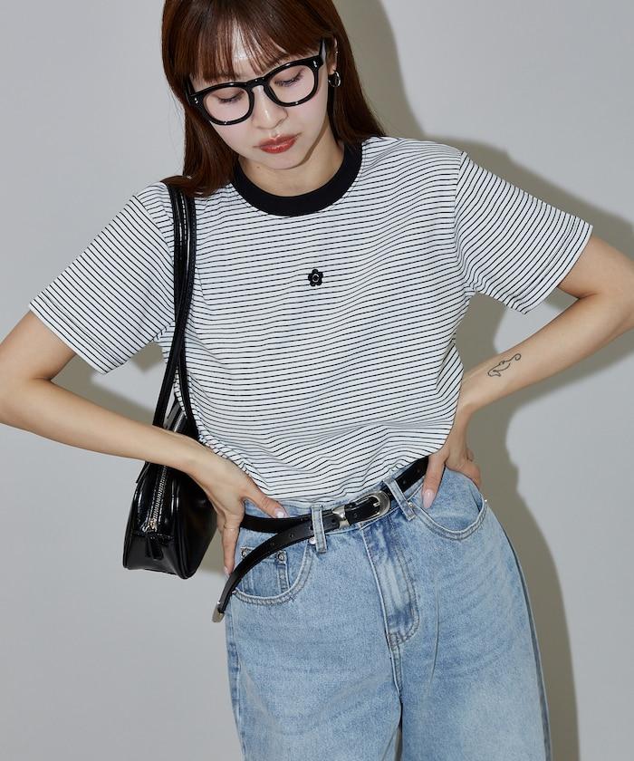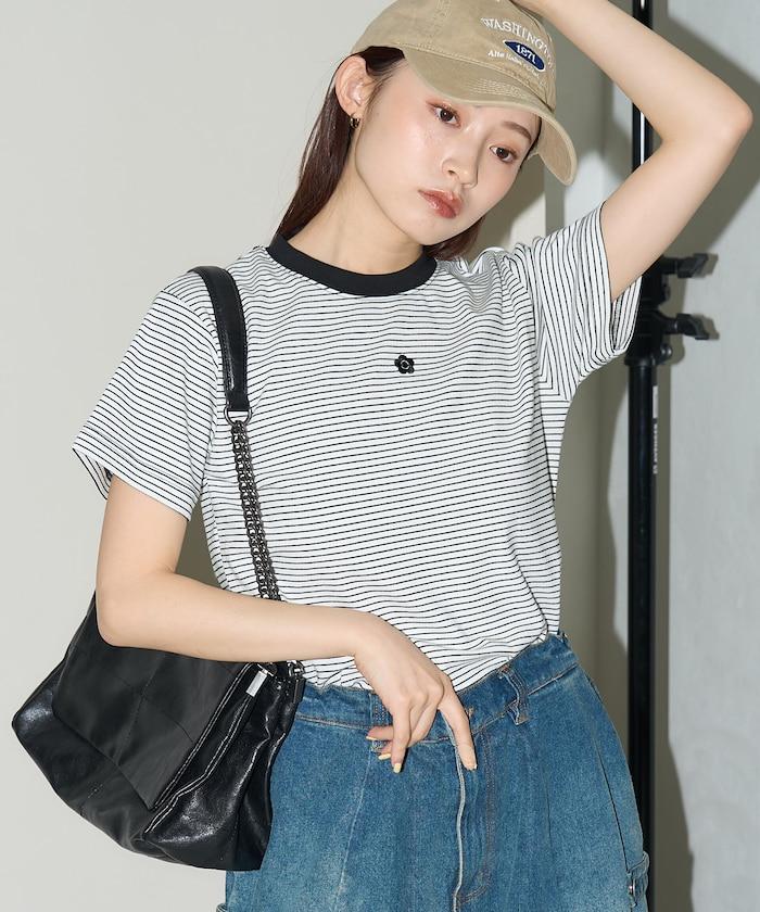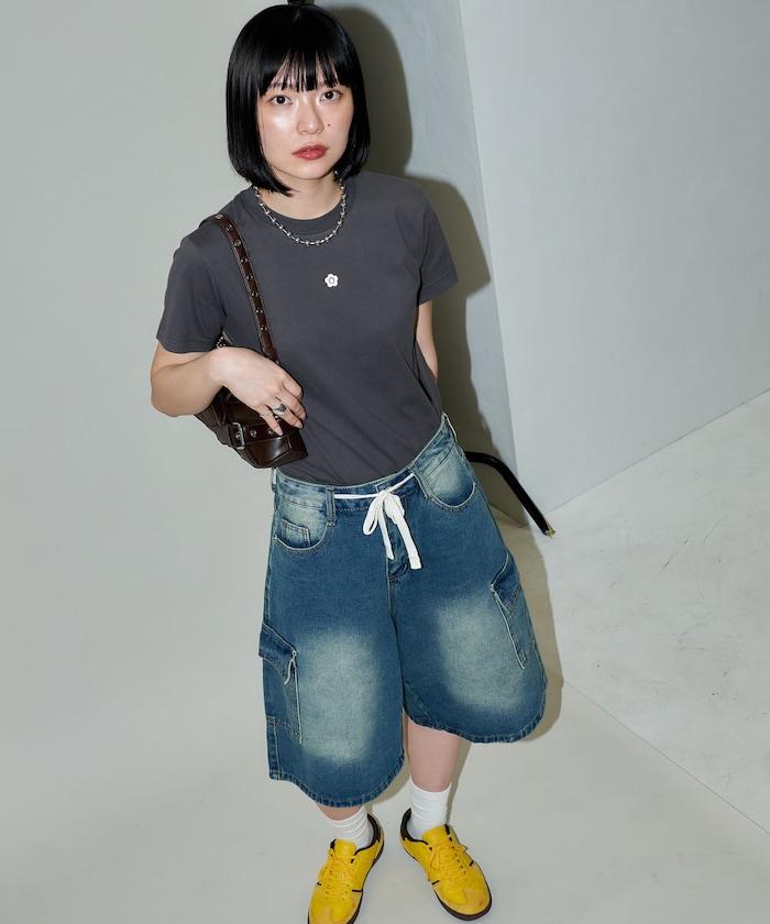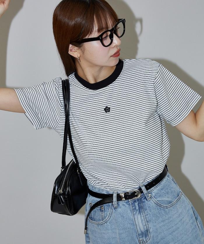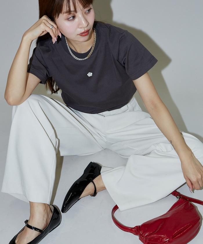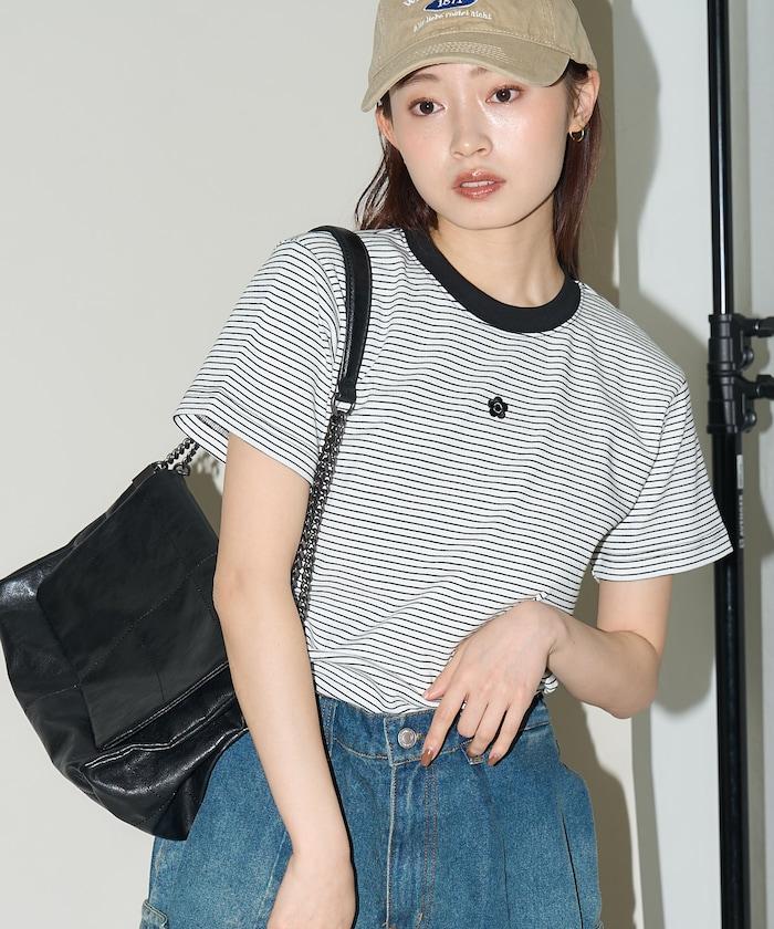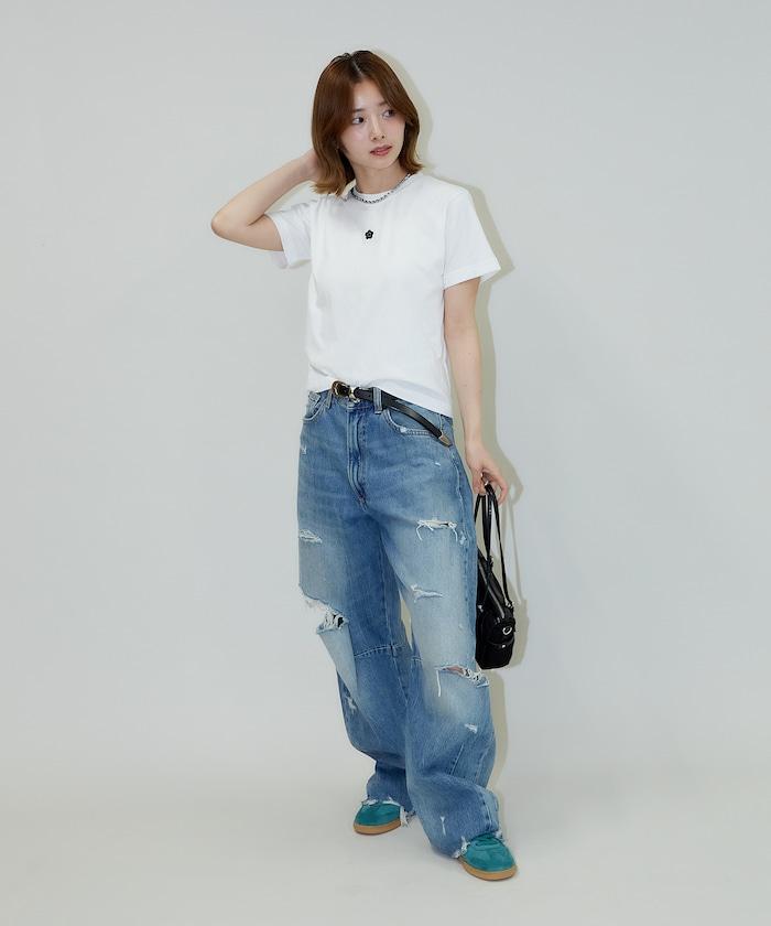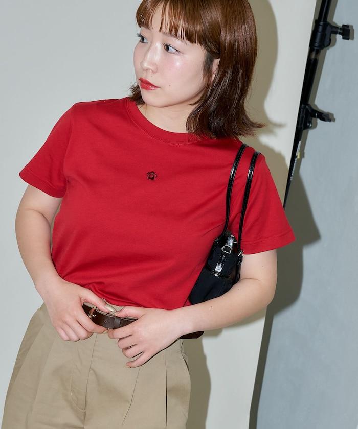 帶有品牌標誌性花朵刺繡圖案的 T 恤。