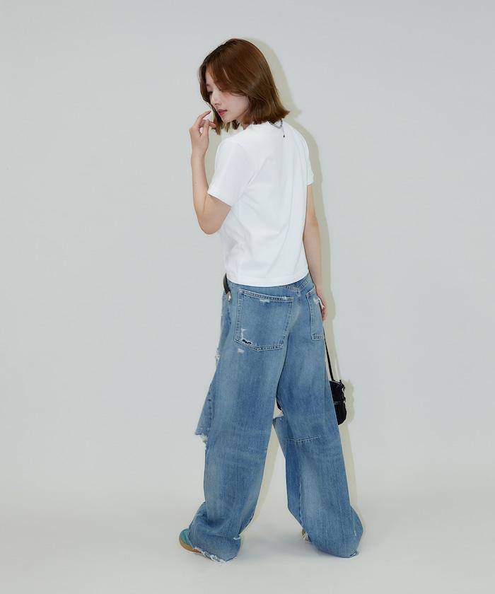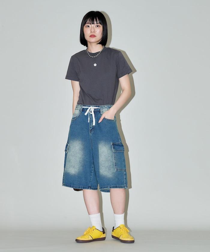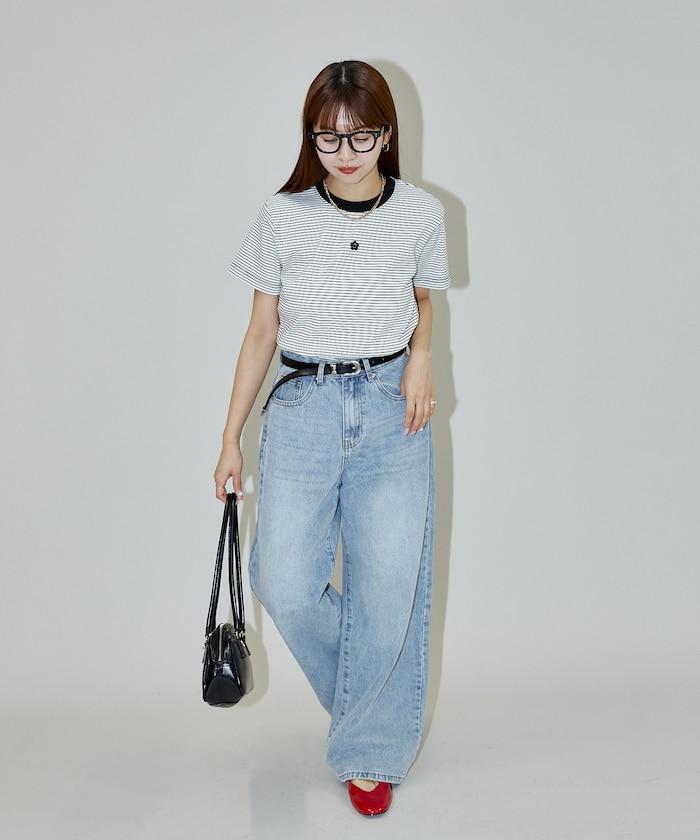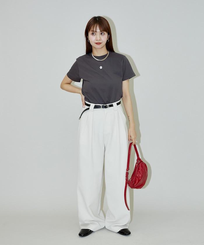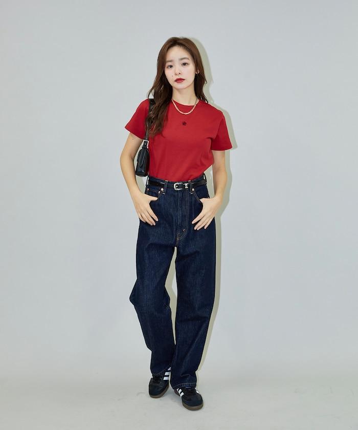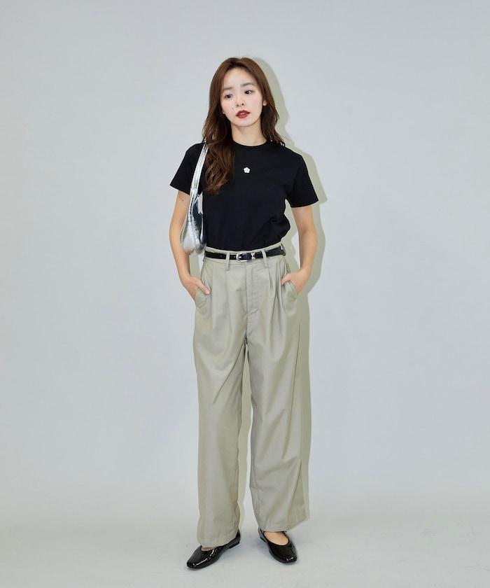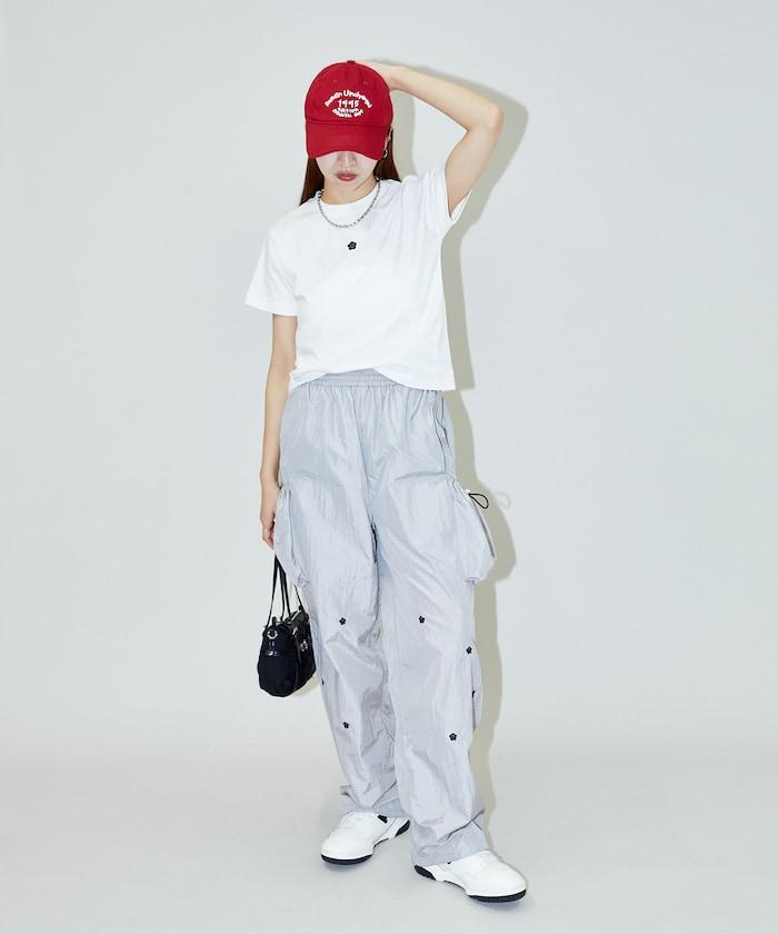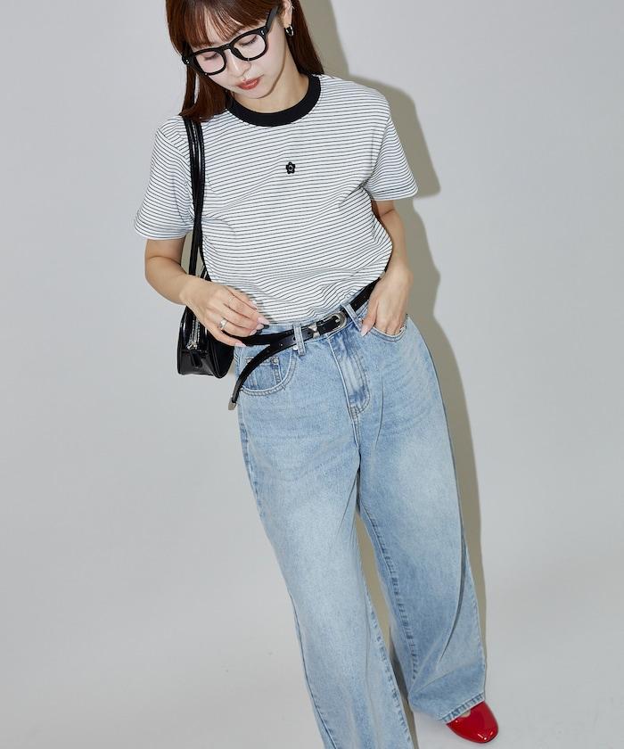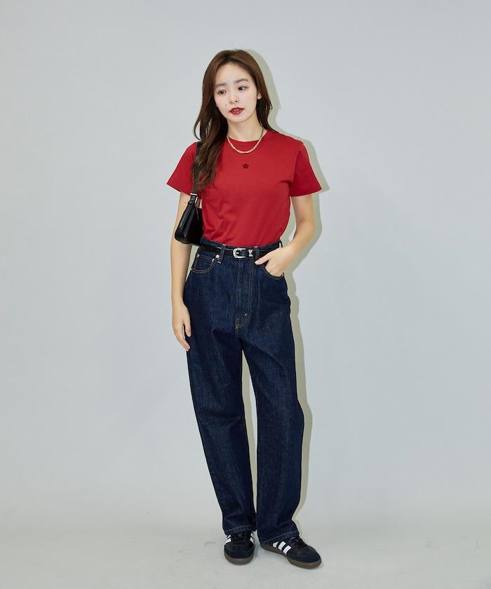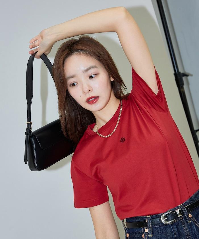 帶有品牌標誌性花朵刺繡圖案的 T 恤。