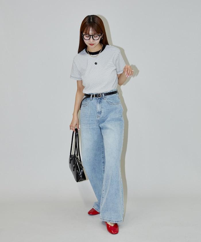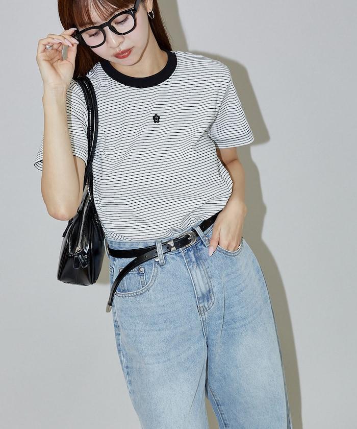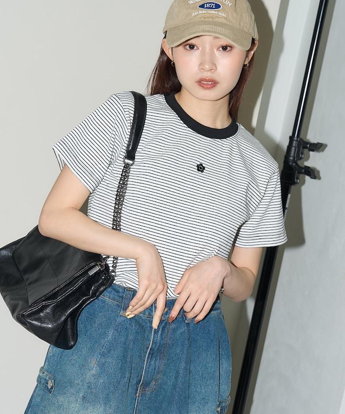 極簡設計,胸前繡有可愛圖案的 T 恤