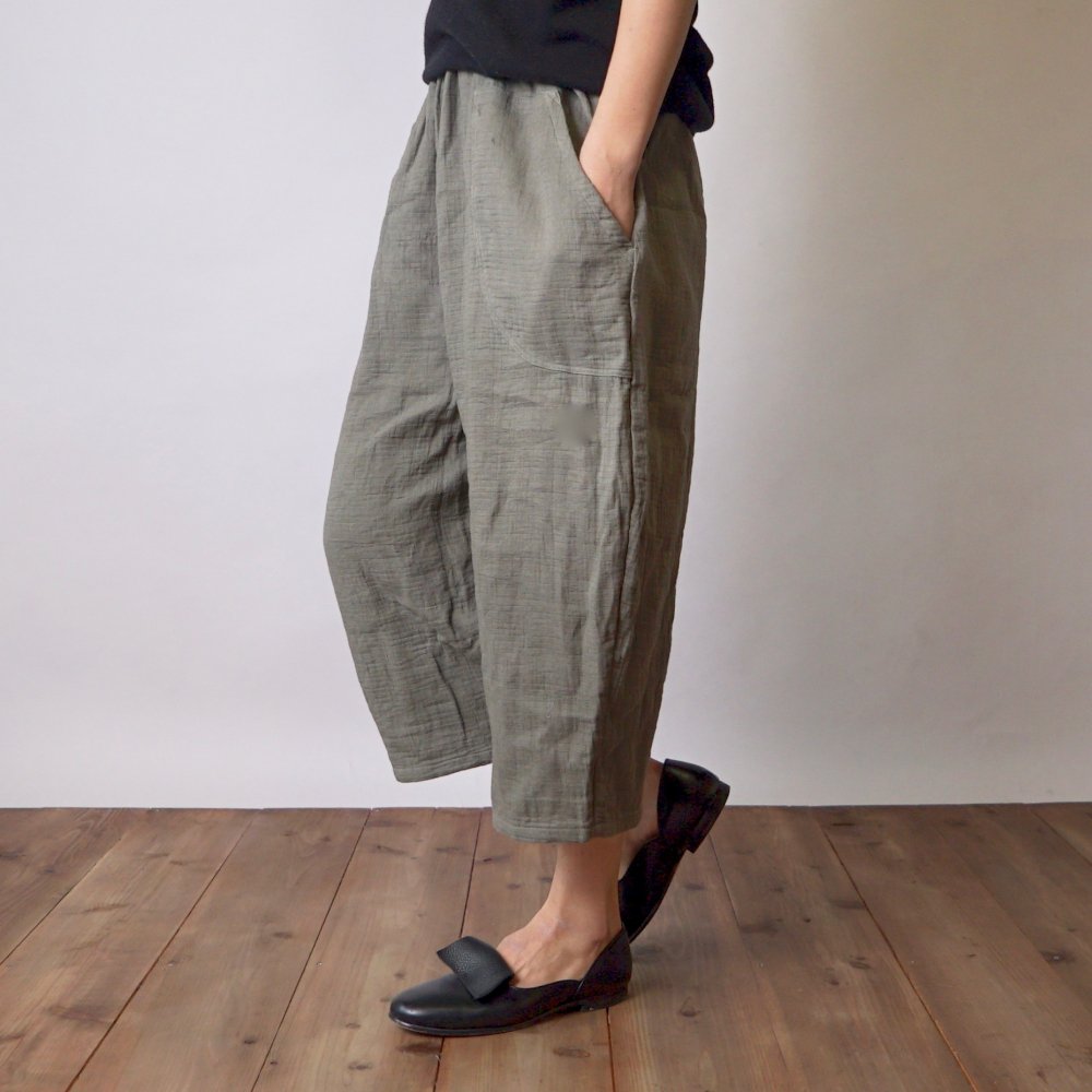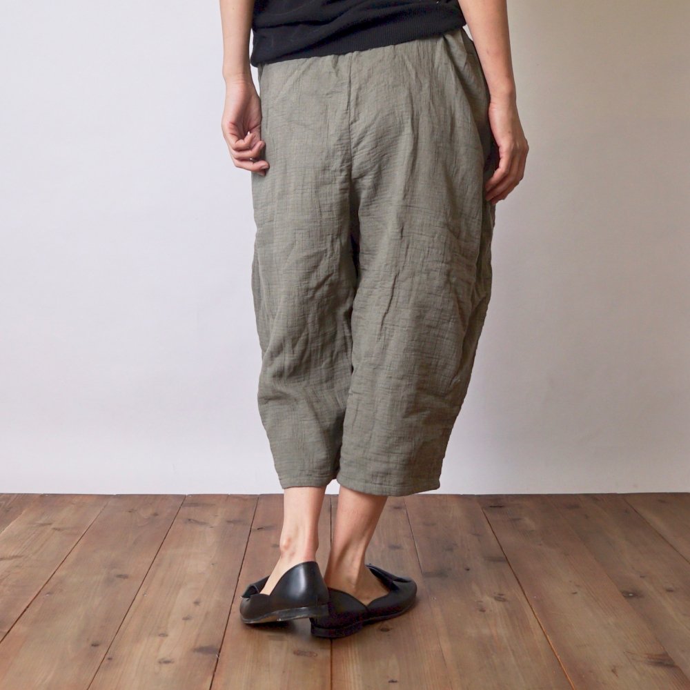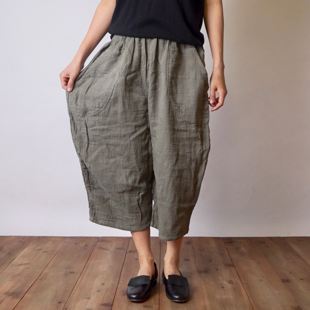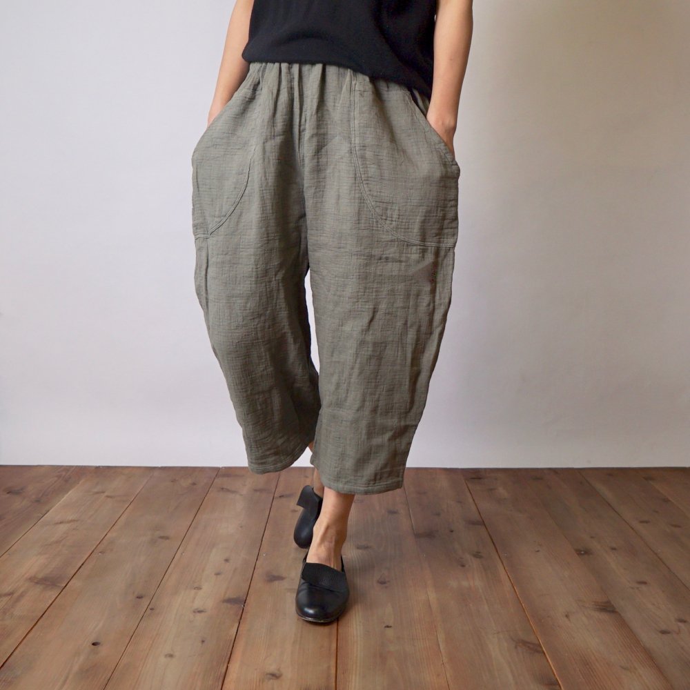 七分褲紗布氣球褲/卡其色/知多棉 格子圖案紗布