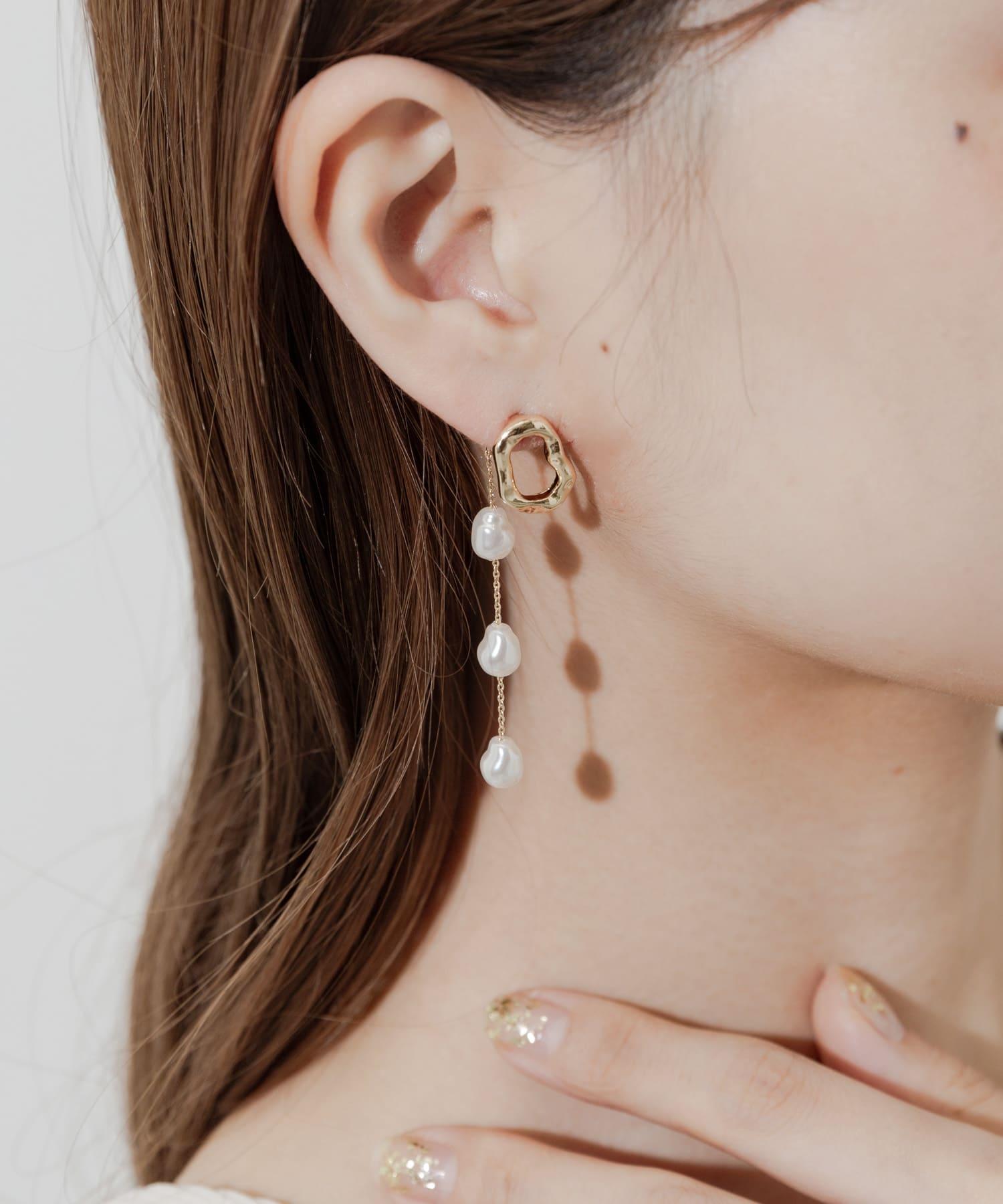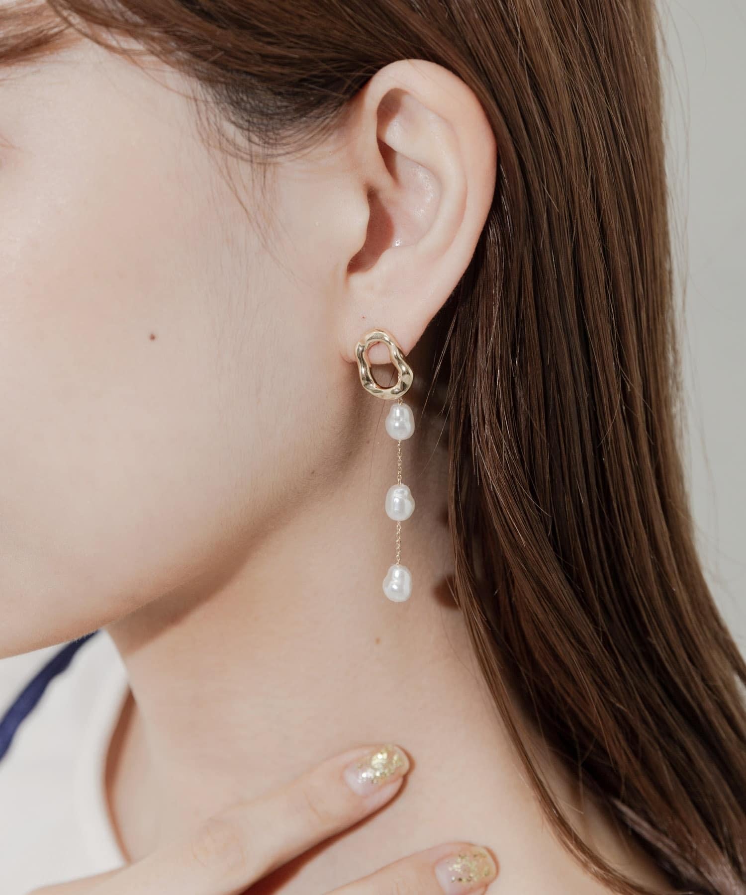 三層珍珠鏈條耳環