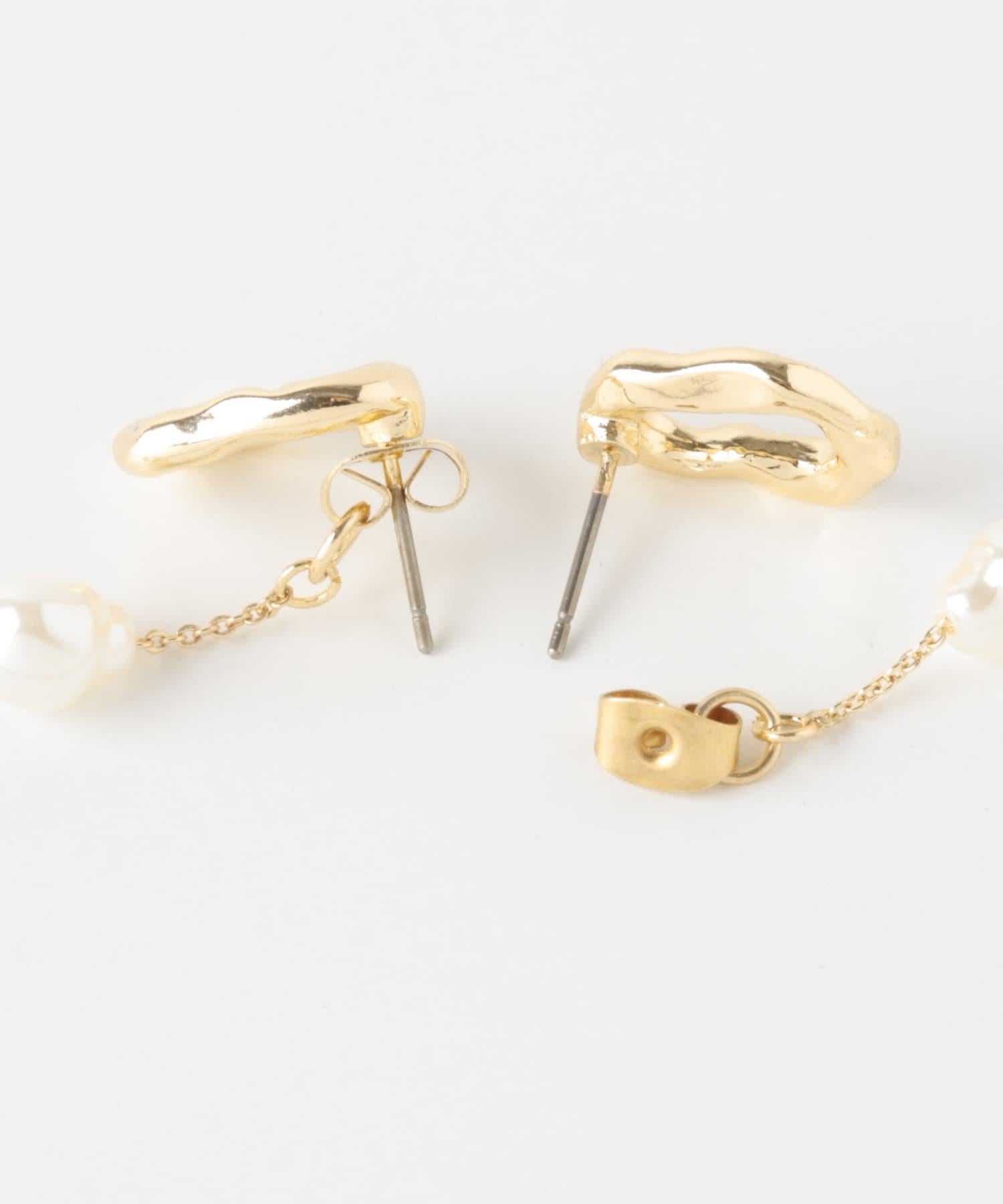 這對垂墜耳環有著細膩的金屬圖案和優雅的珍珠鏈。