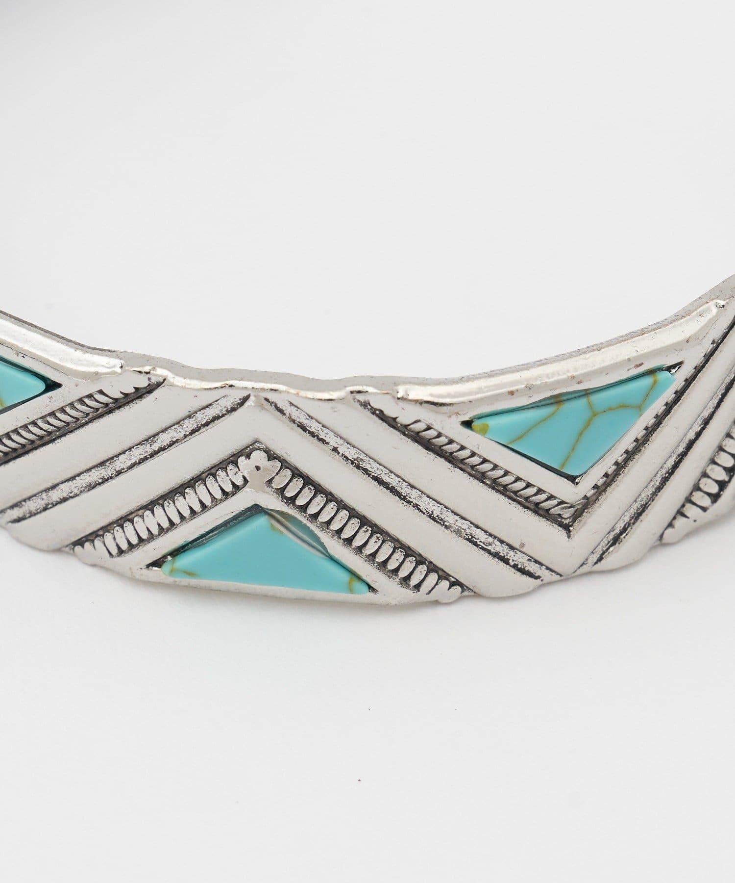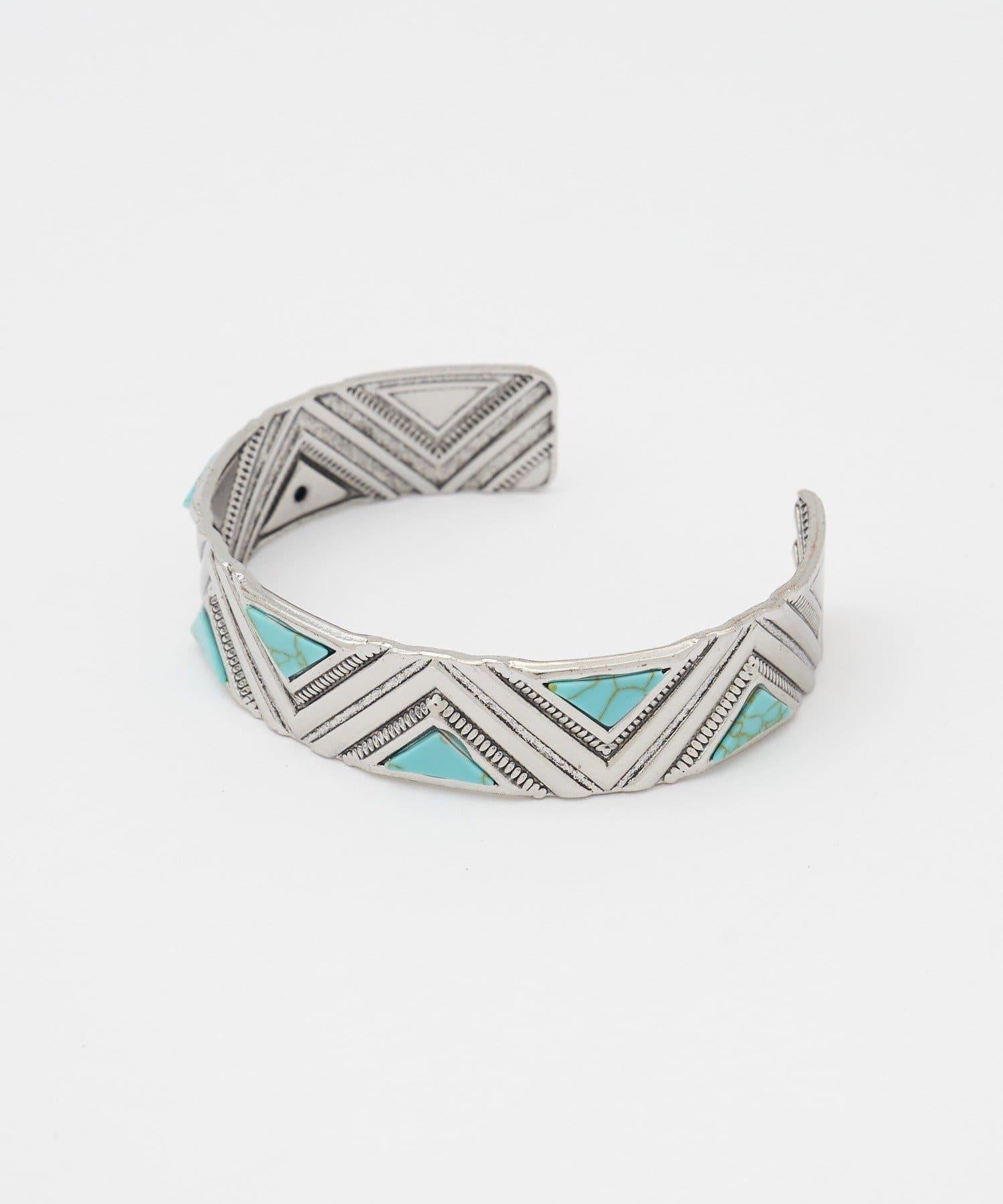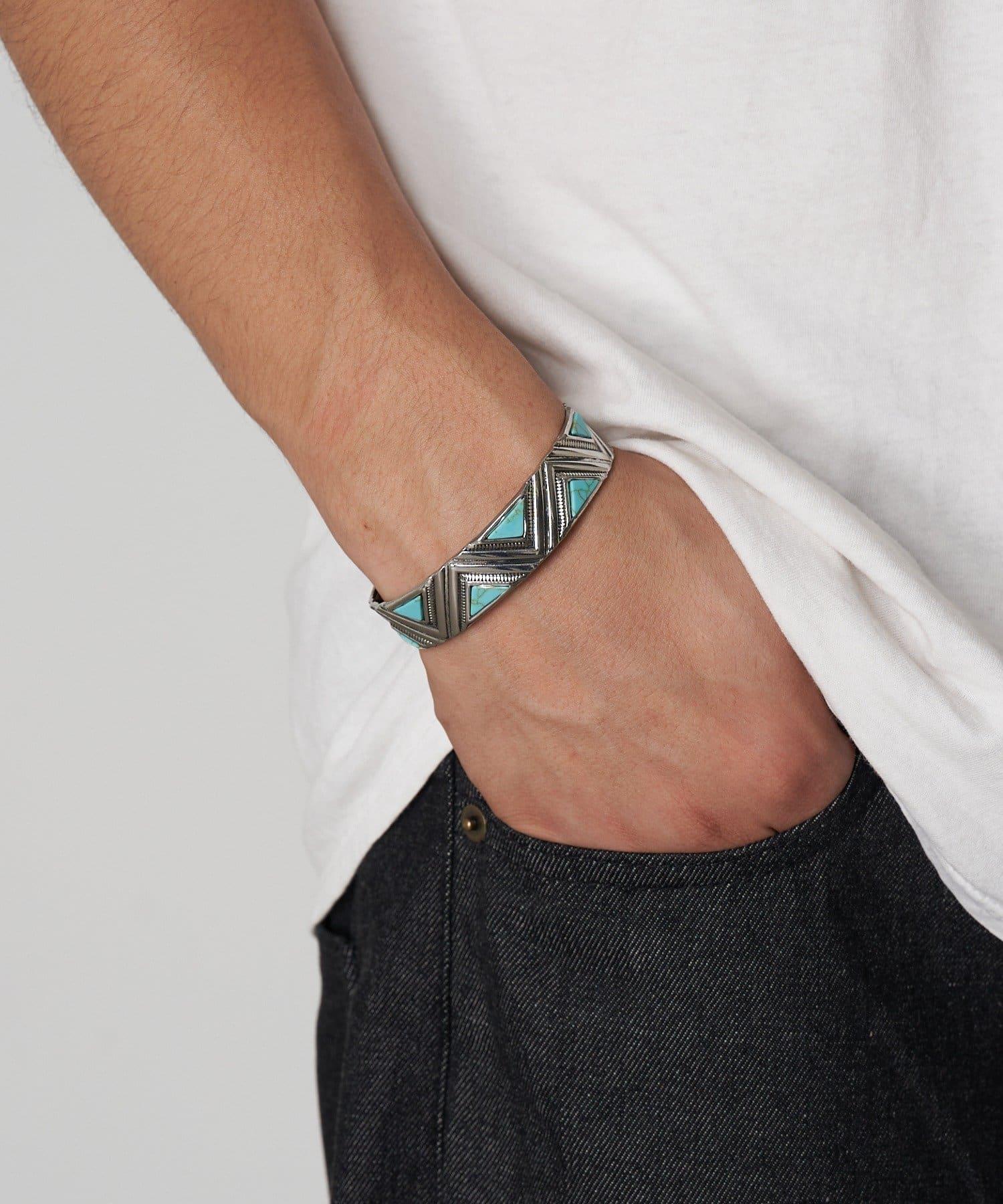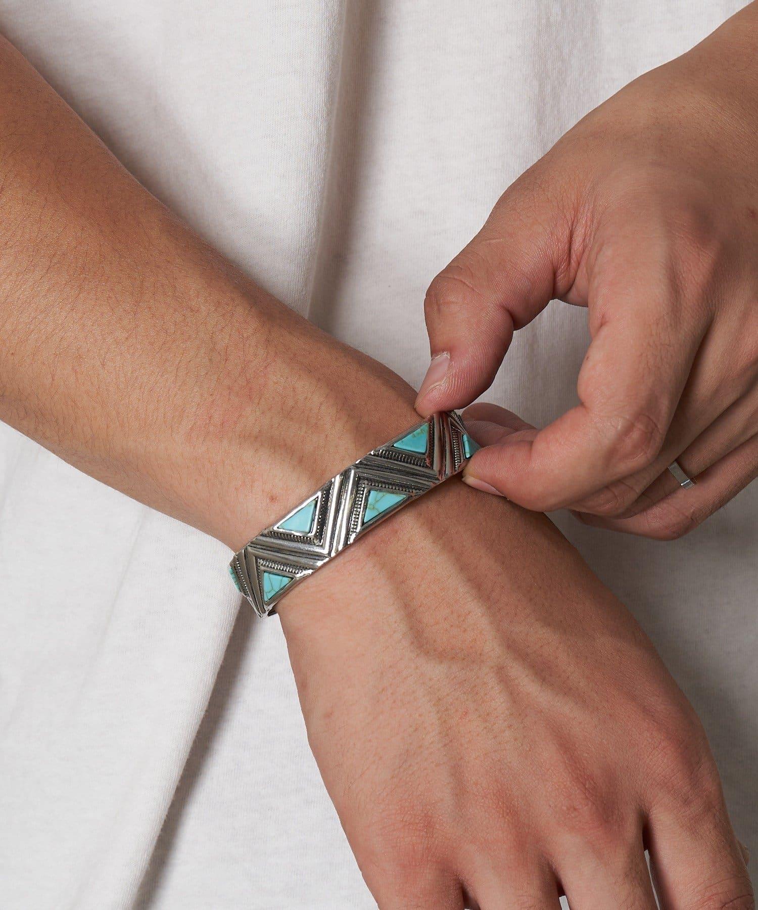 一款三角形手鐲,蘊含綠松石的活力和銀的堅固。