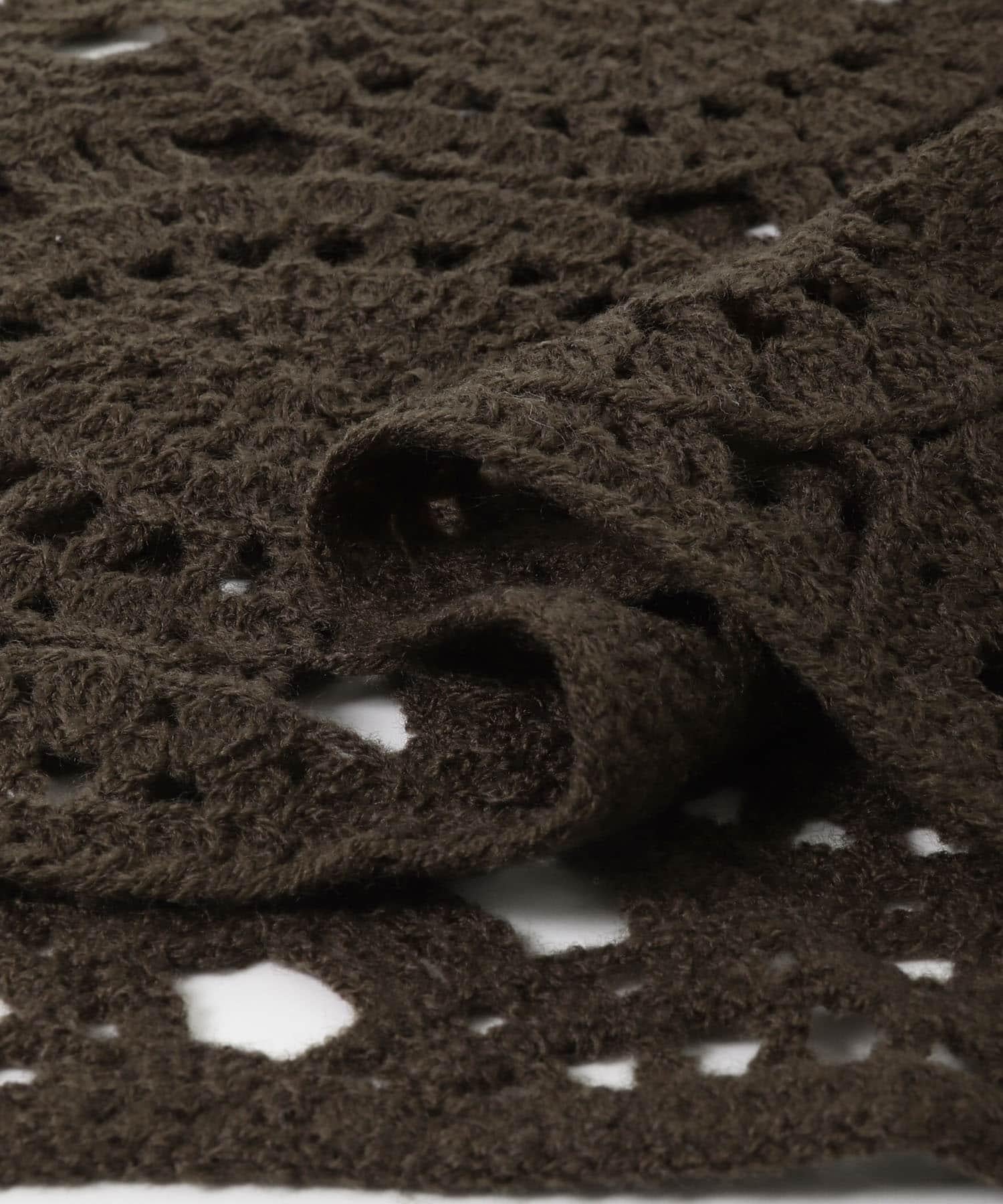 三角形鉤針編織圍巾現已上市。它既可作為頭飾,也可纏繞在腰間或作為半身裙佩戴。