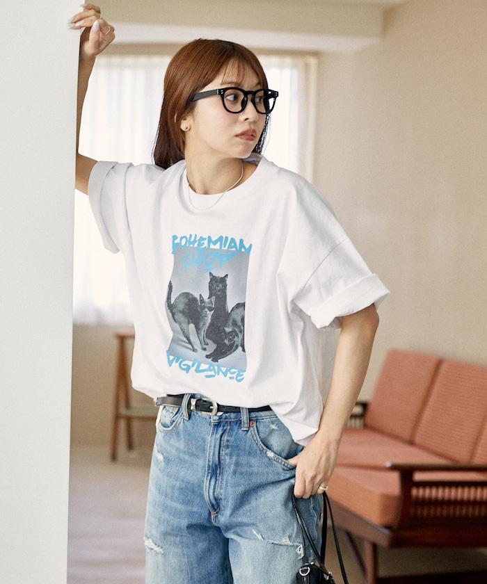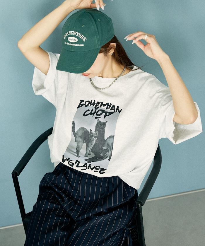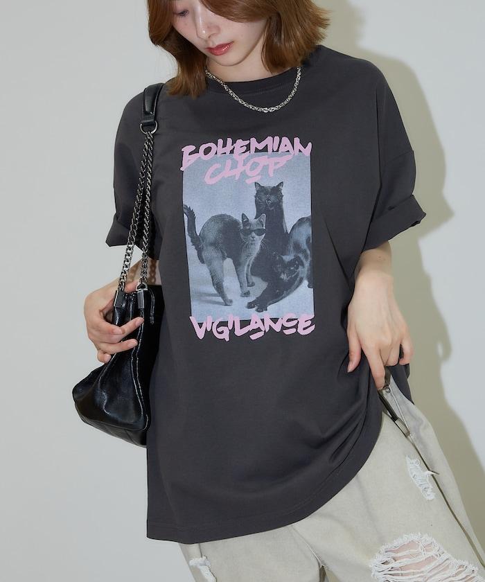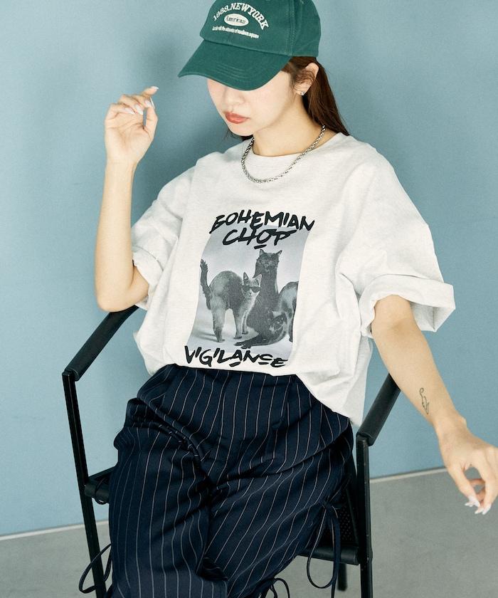圓領 T 恤,貓咪圖案設計,氣場十足。