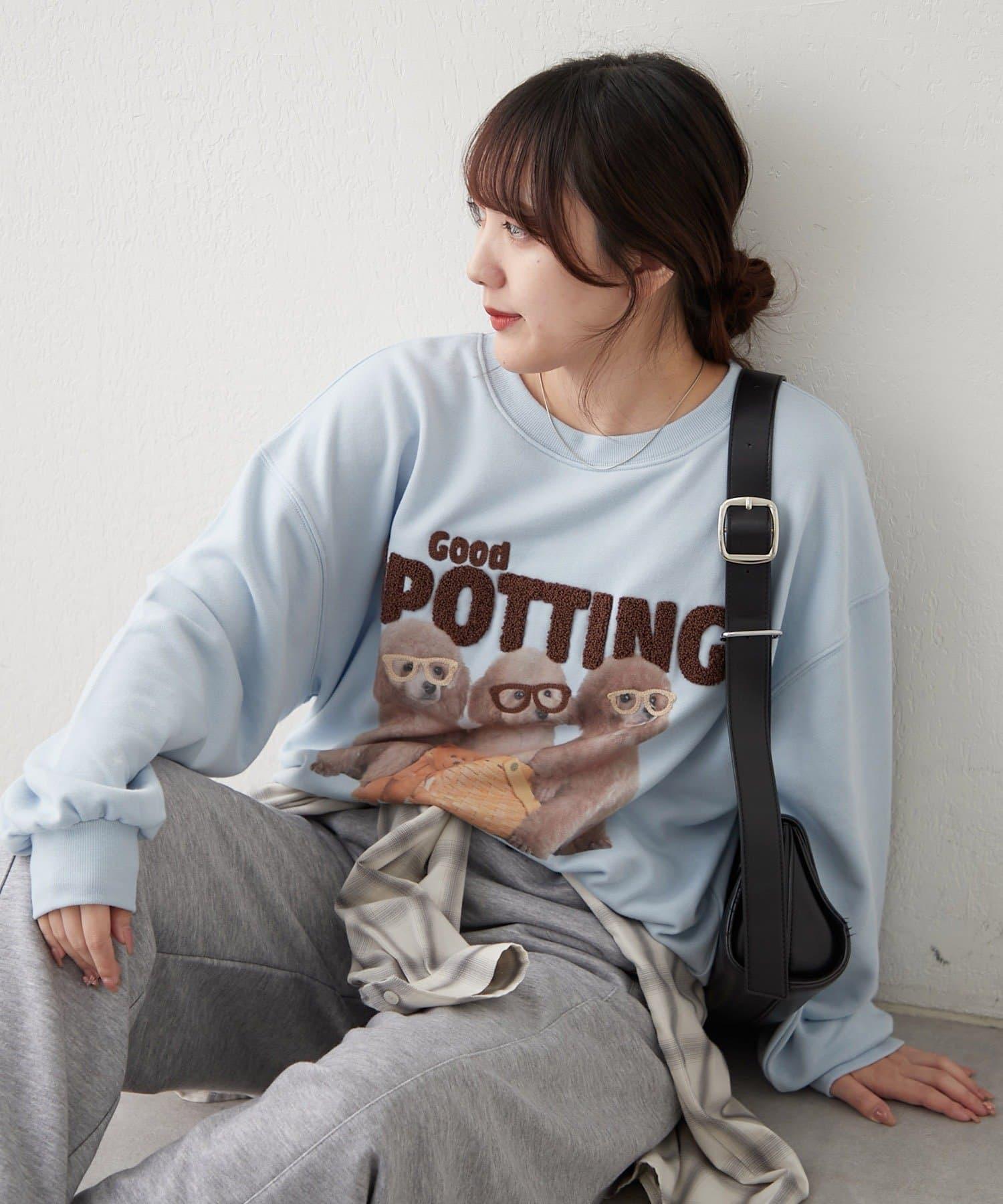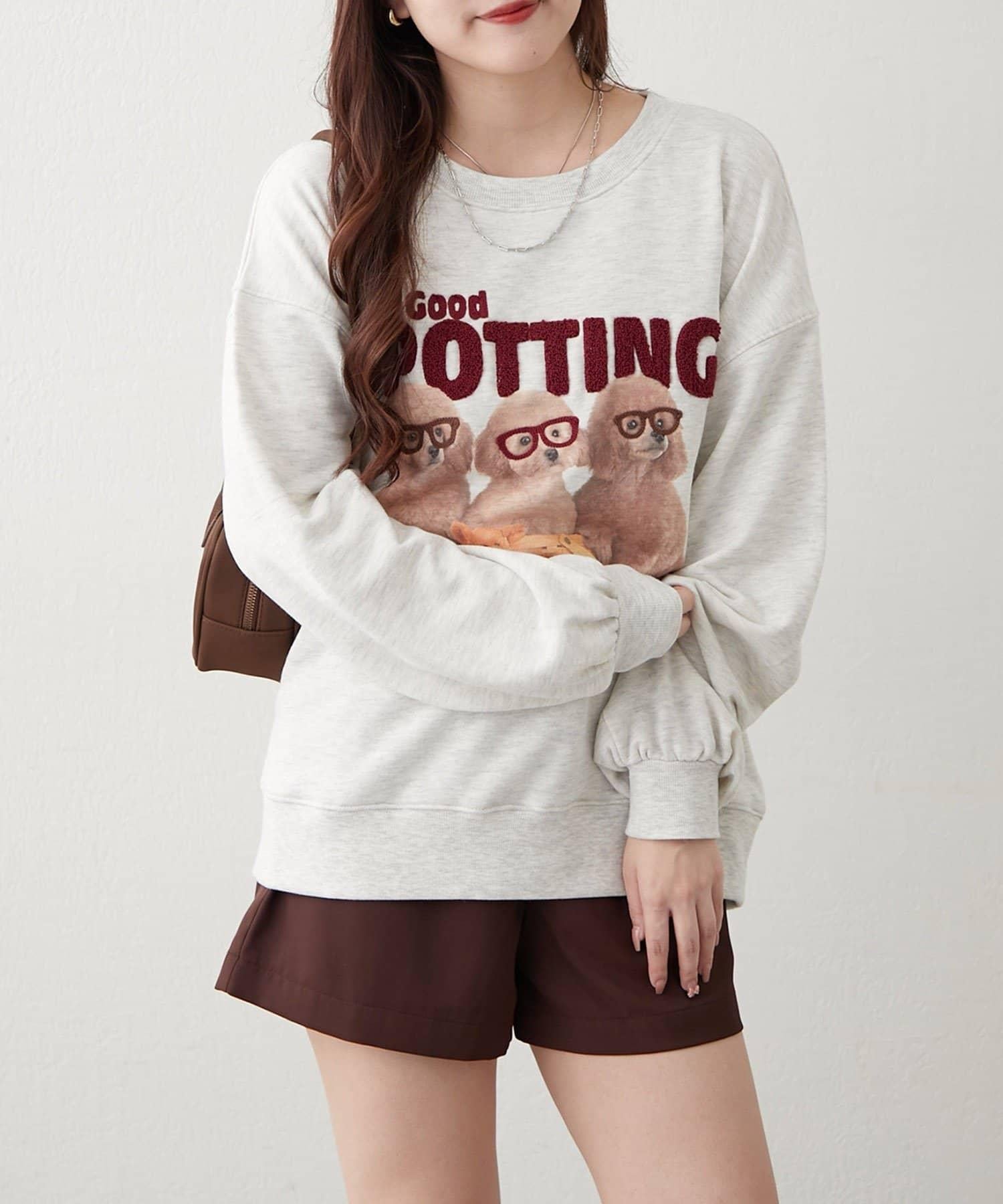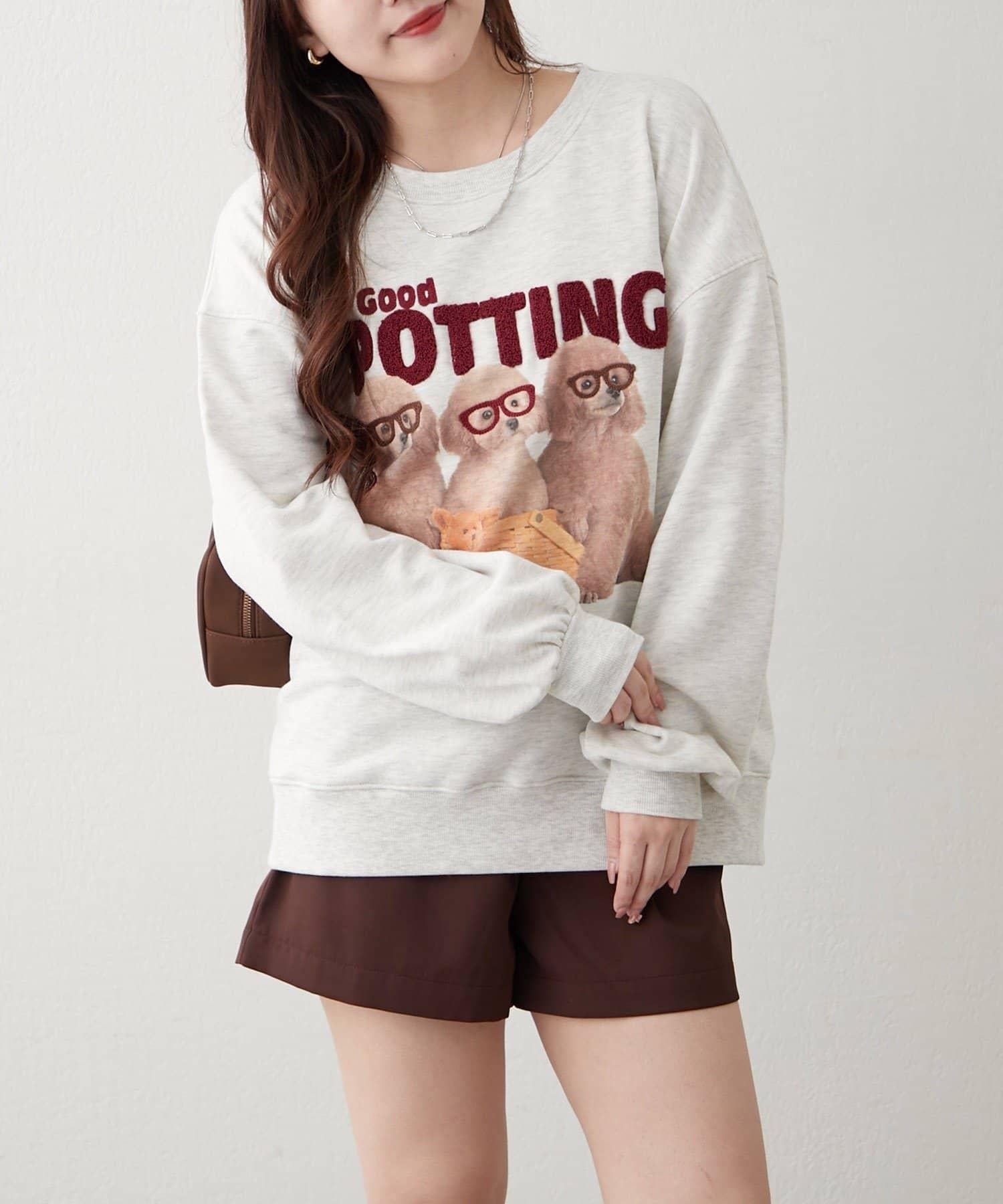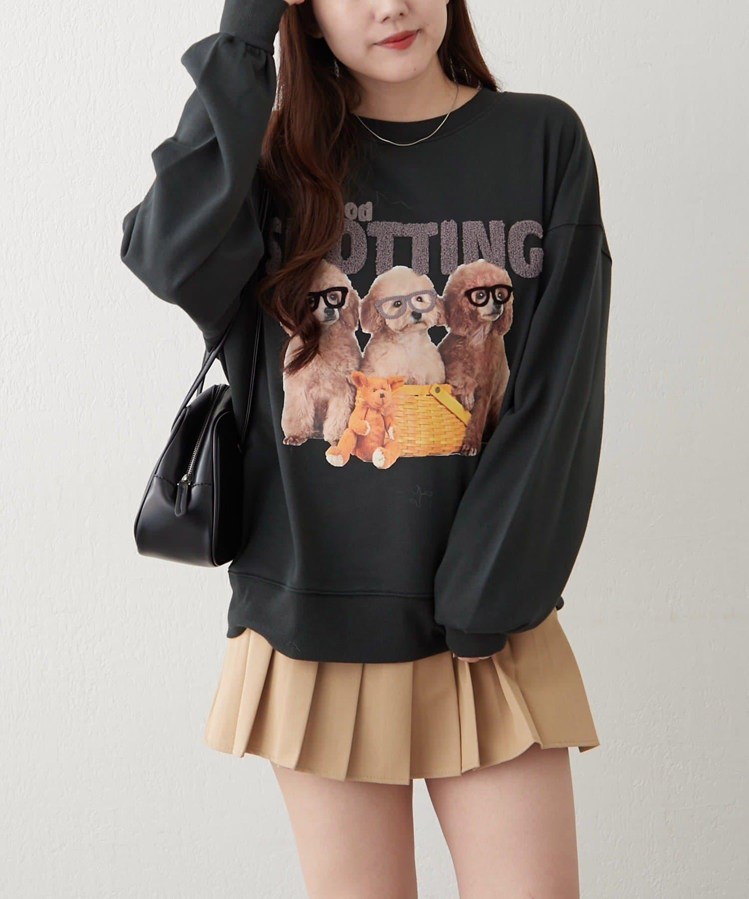 可愛的小狗印花運動衫,徽標部分繡有 SAGARA 刺繡。