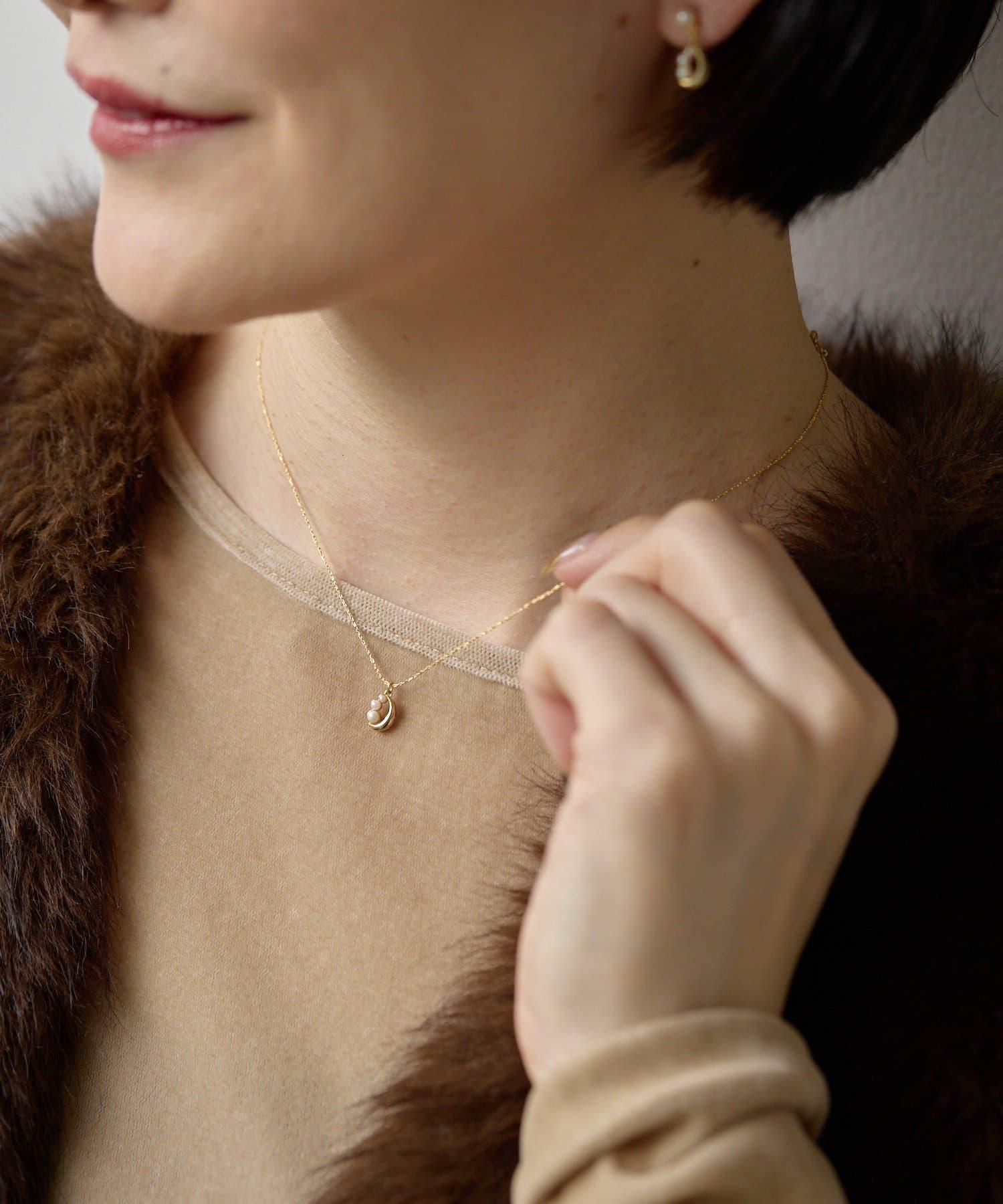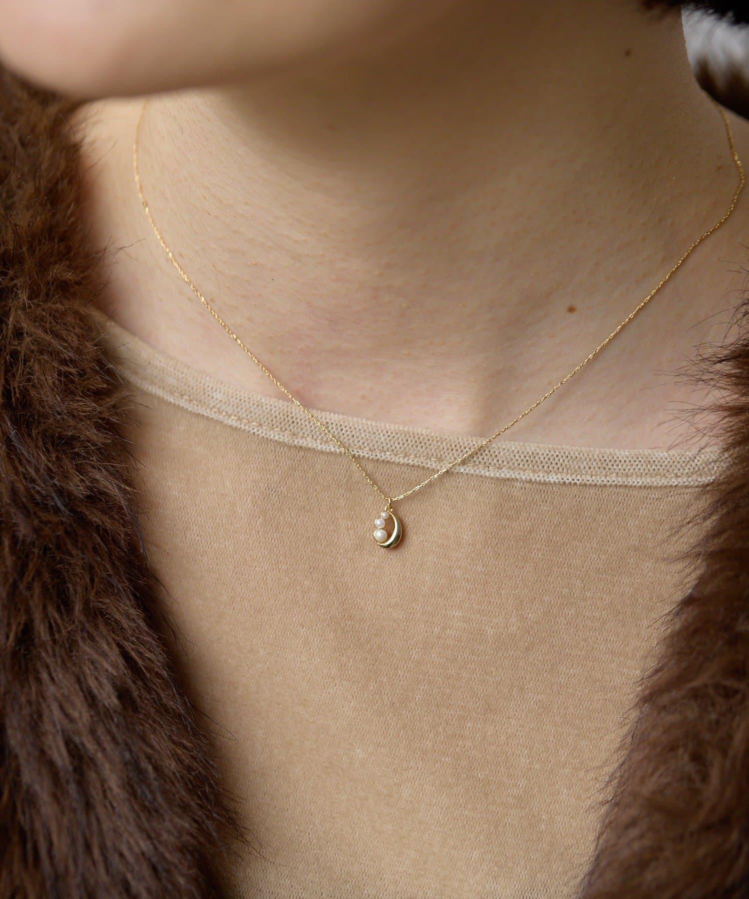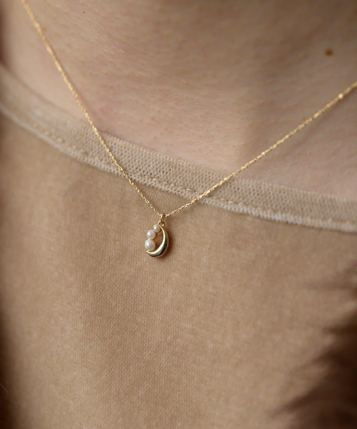小巧的珍珠頂端和精緻的鏈條組合成一條可愛的項鍊。