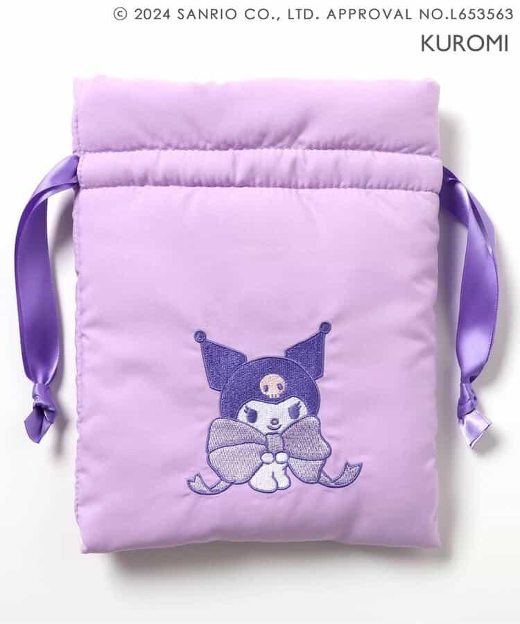 抽繩袋中裝有 Hello Kitty、Kuromi、Cinnamoroll 和 Pom Pom Pring。