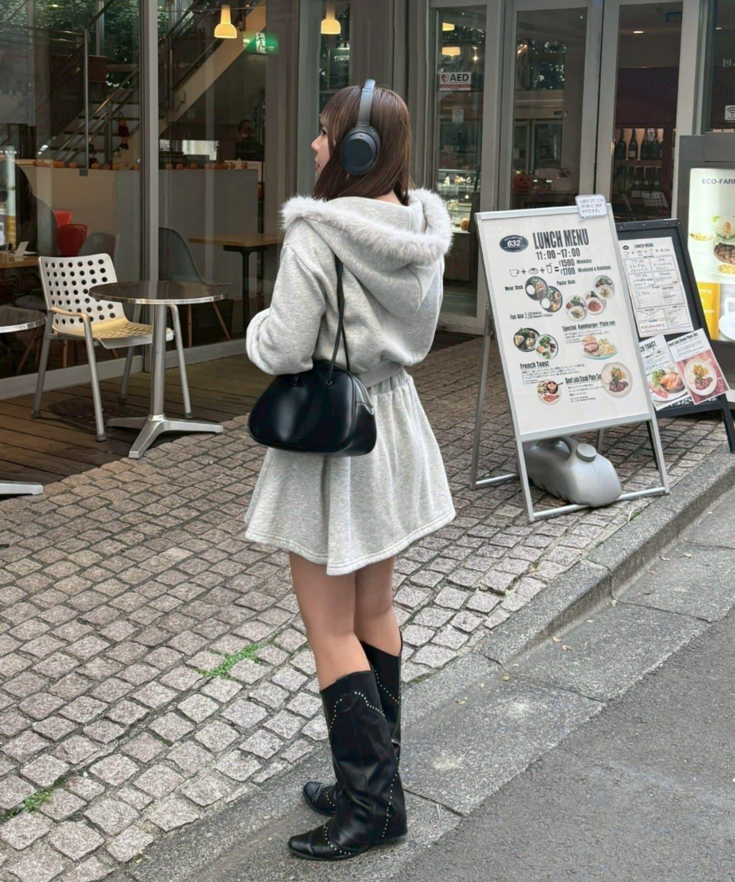 將派克大衣與喇叭牛仔褲搭配,盡享季節風情。