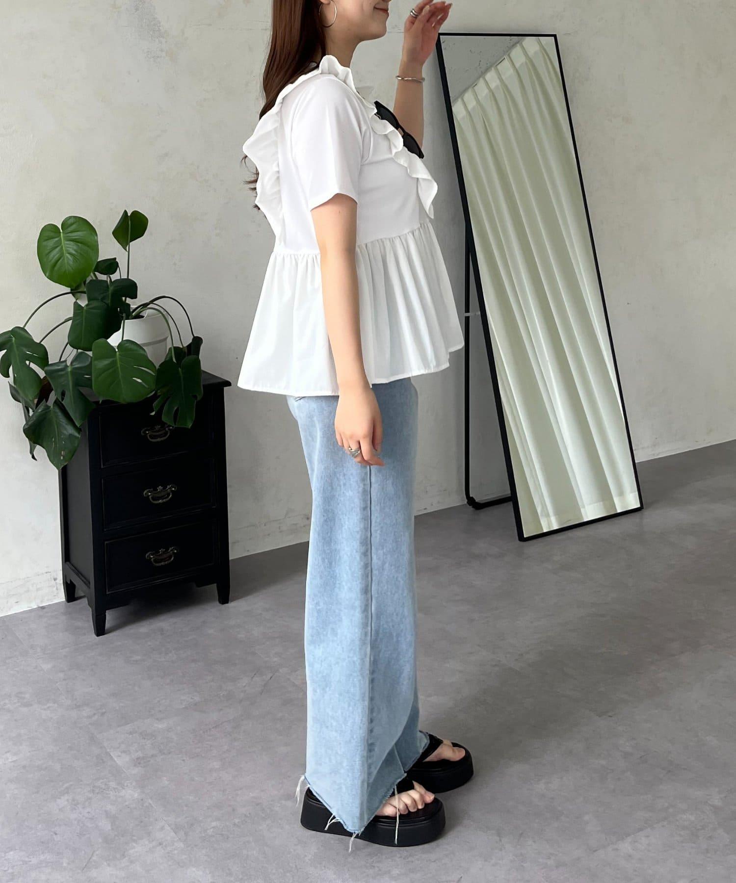 下襬不對稱荷葉邊T恤