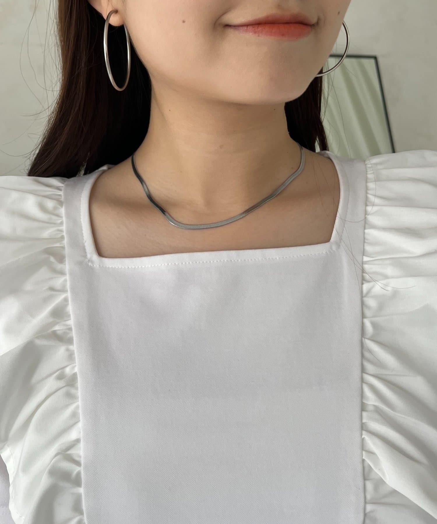 方形領口,讓臉部線條更簡潔。