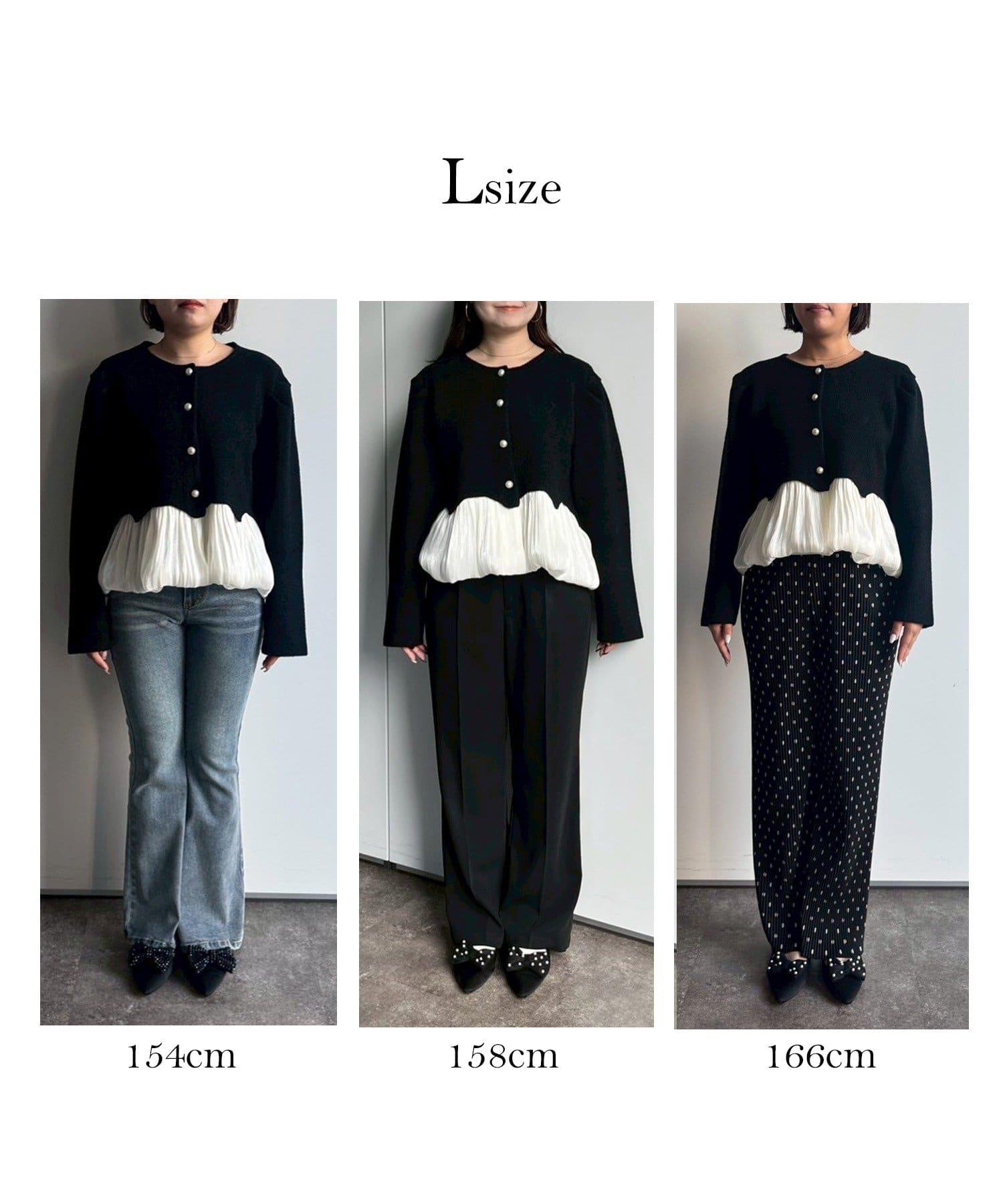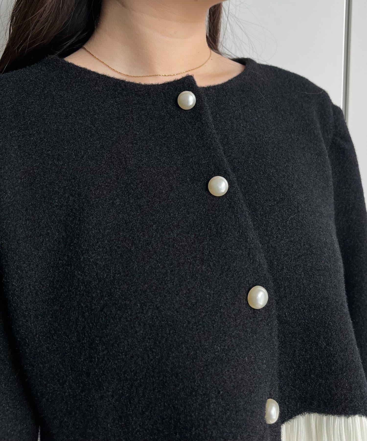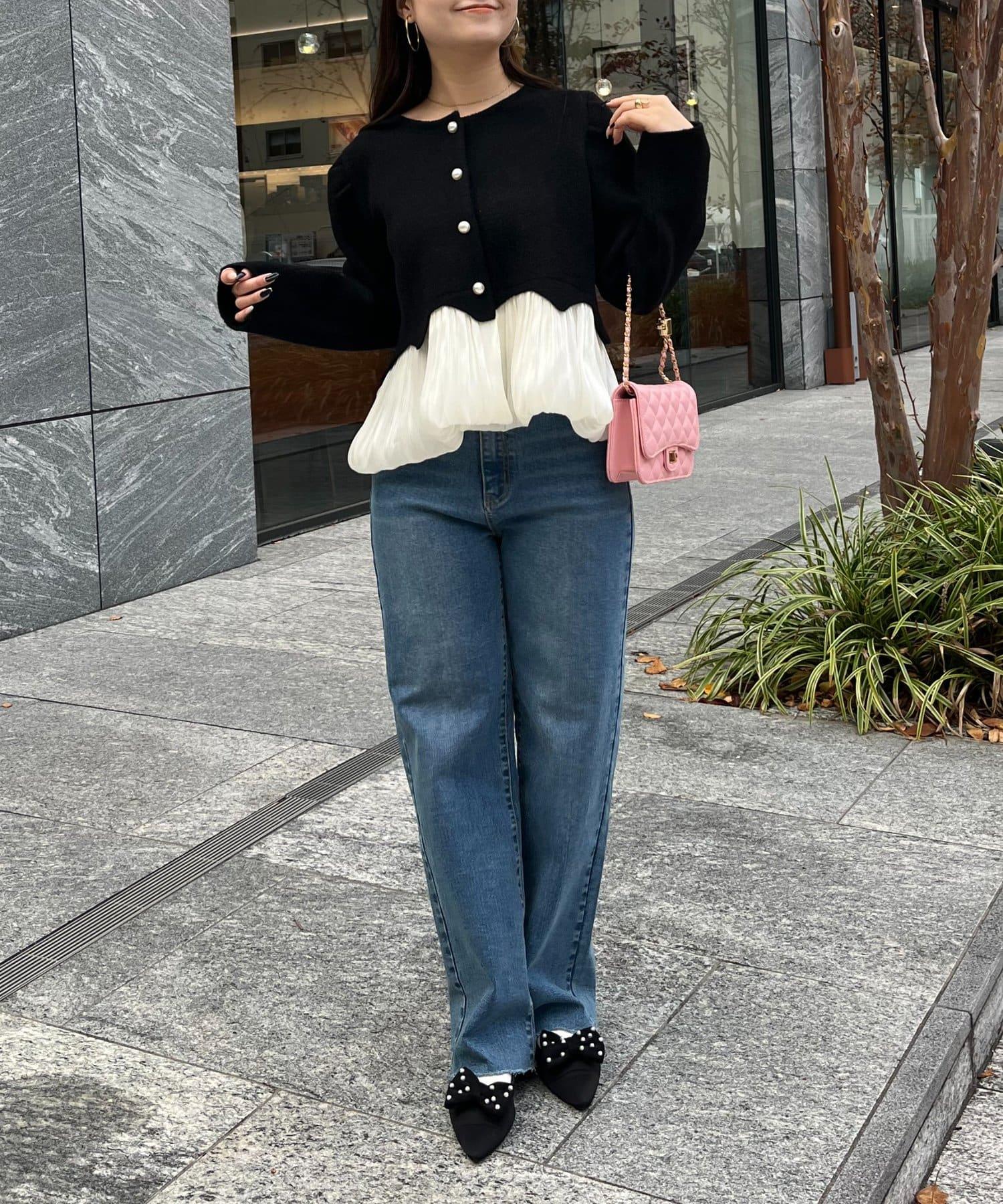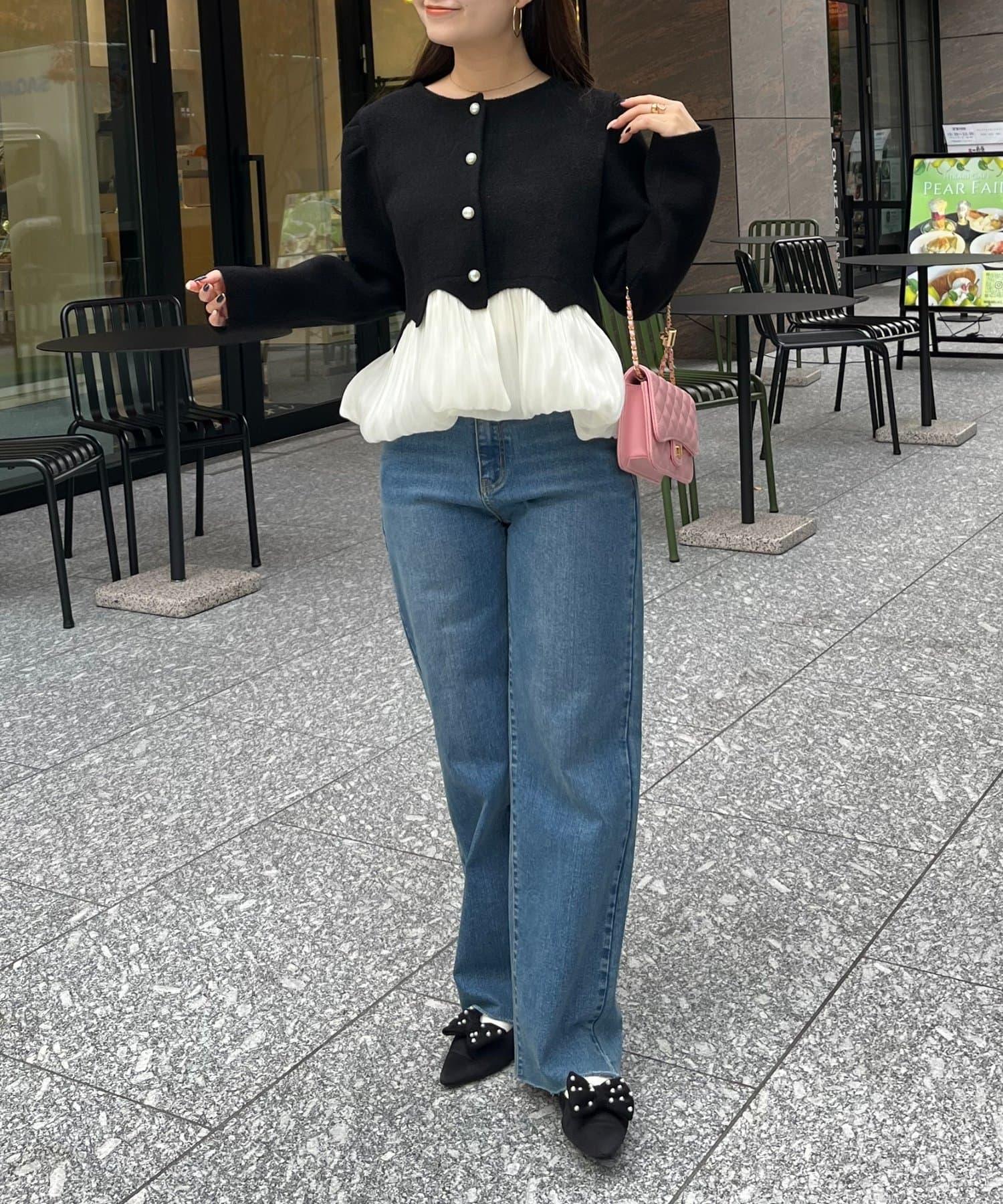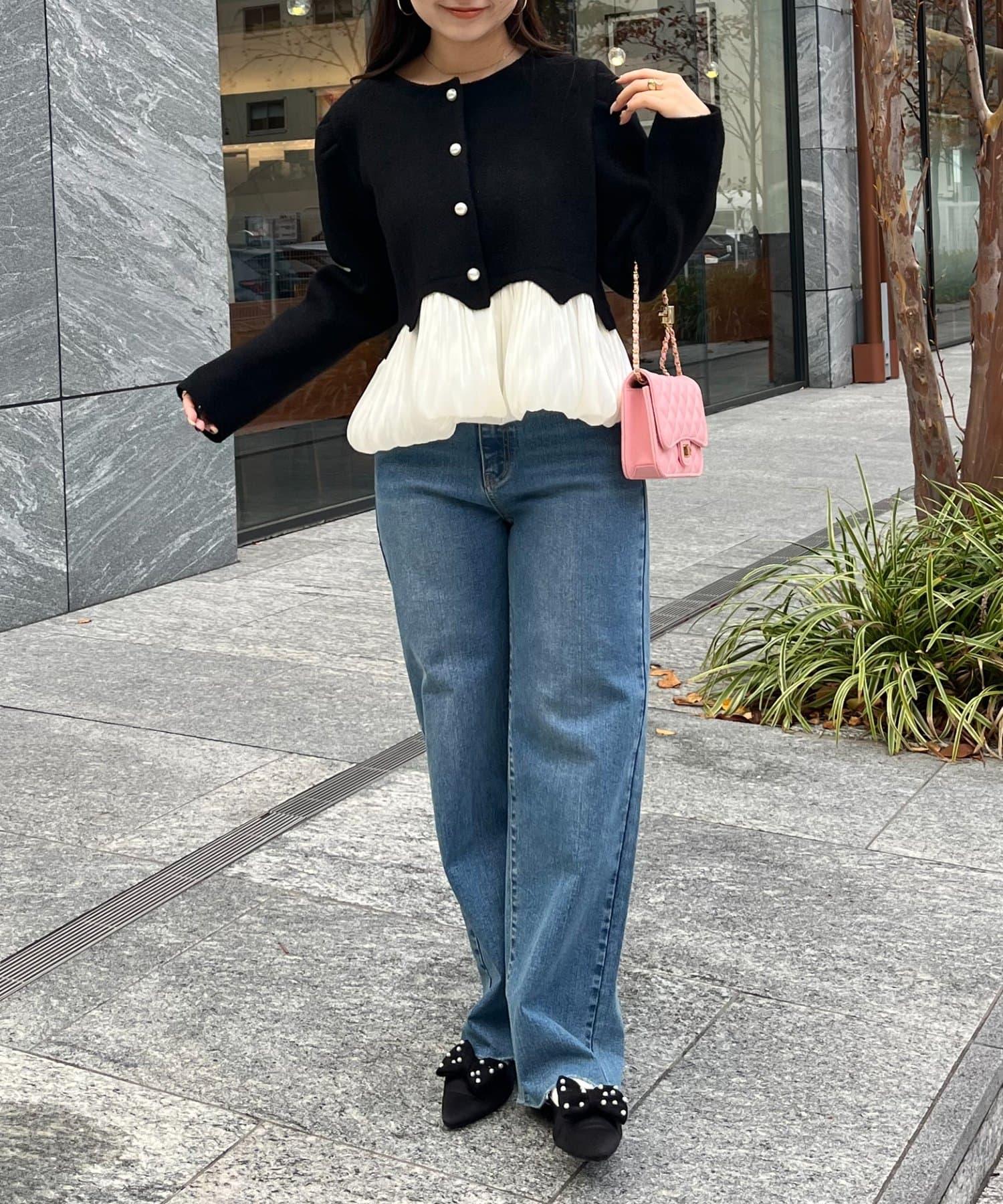下襬氣球珍珠紐扣拼接荷葉邊針織衫