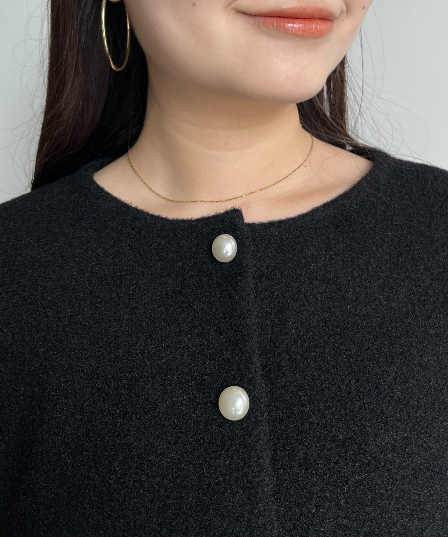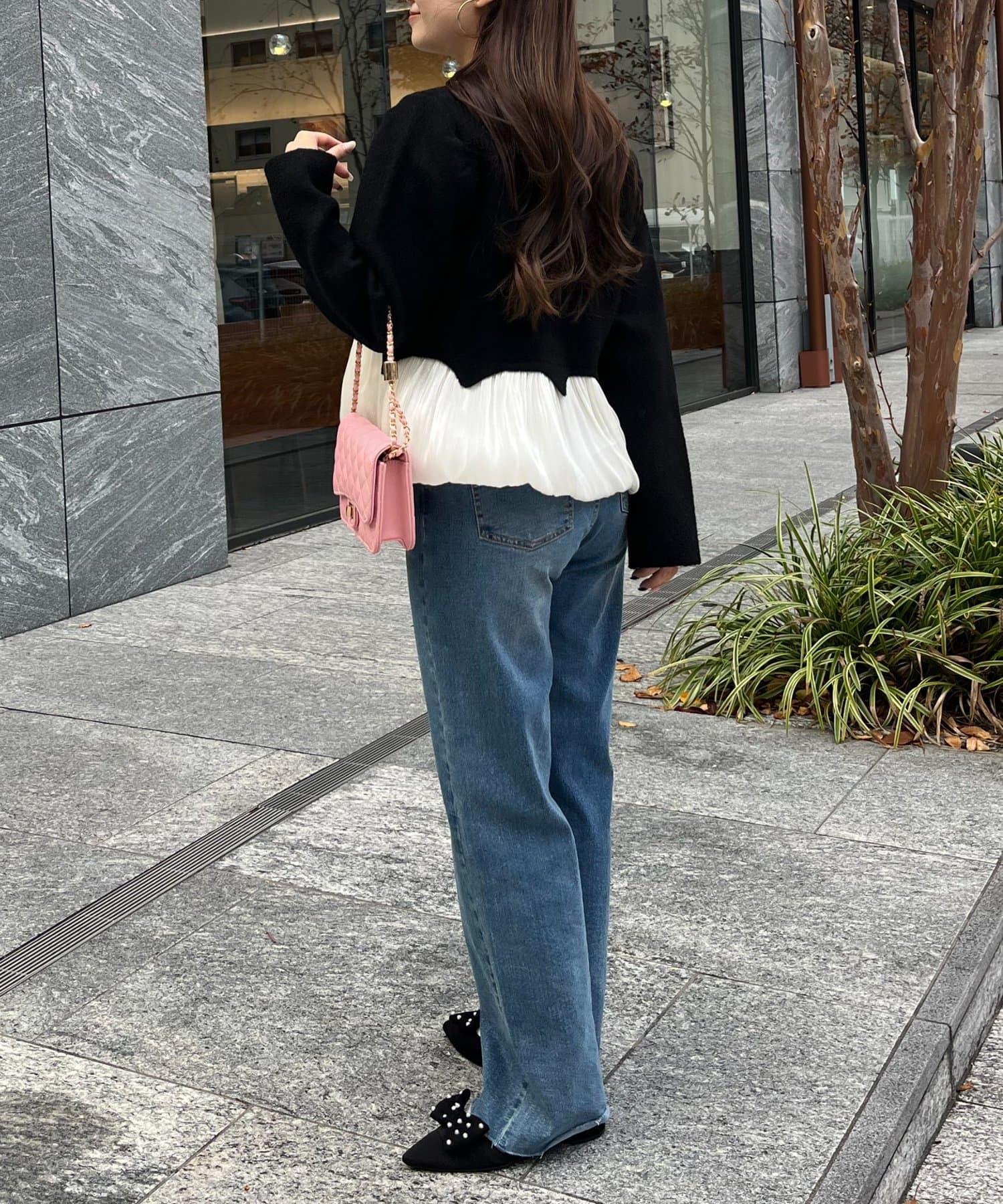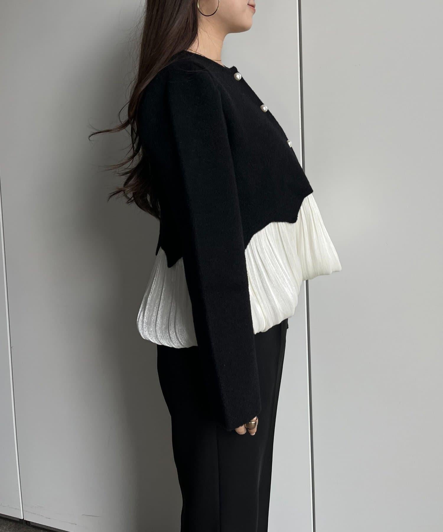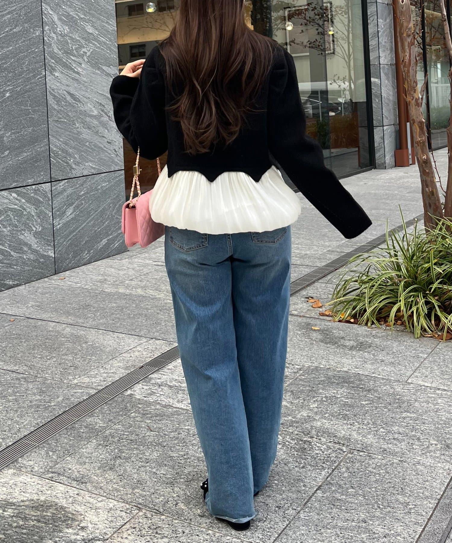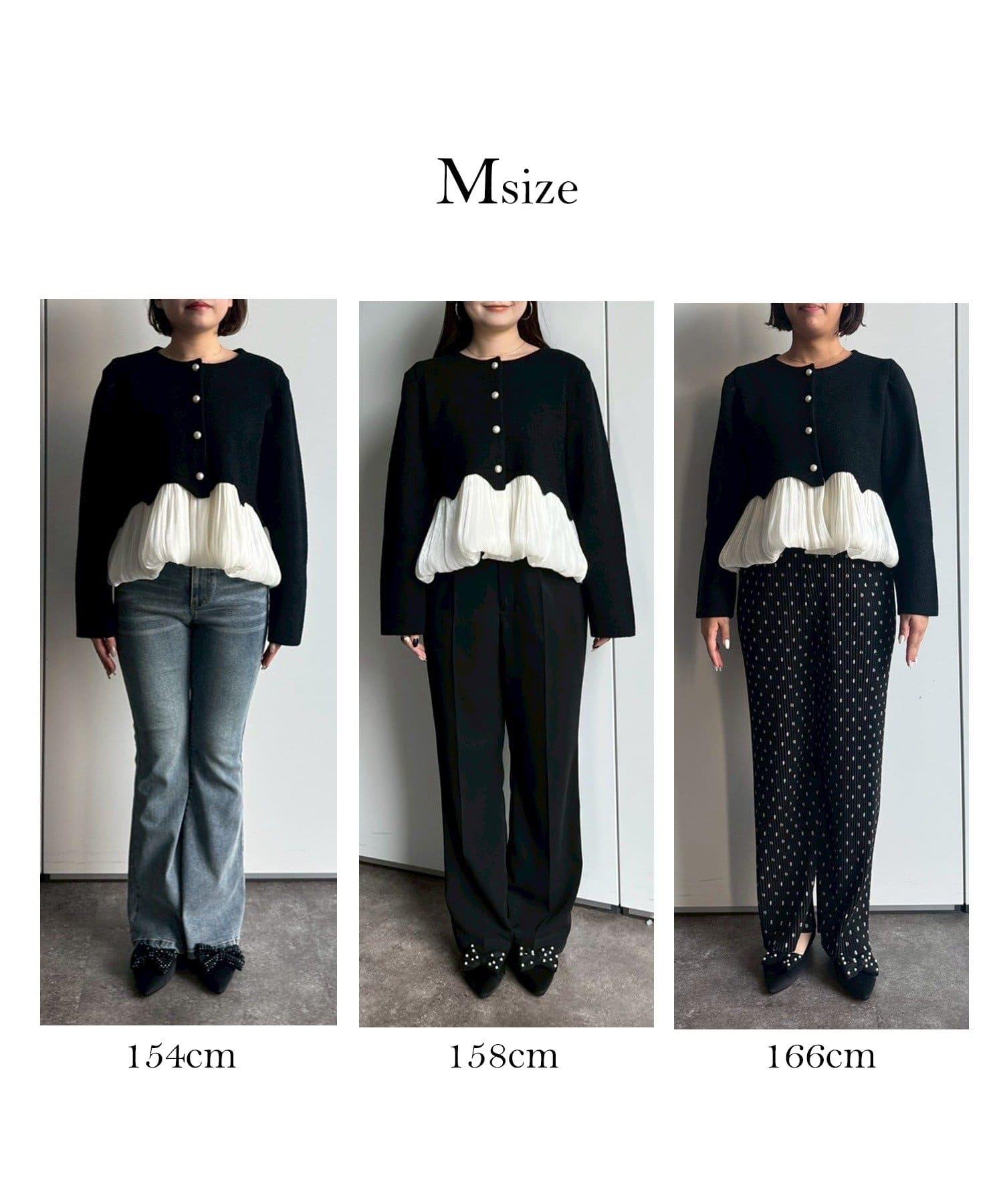 下襬氣球珍珠紐扣拼接荷葉邊針織衫
