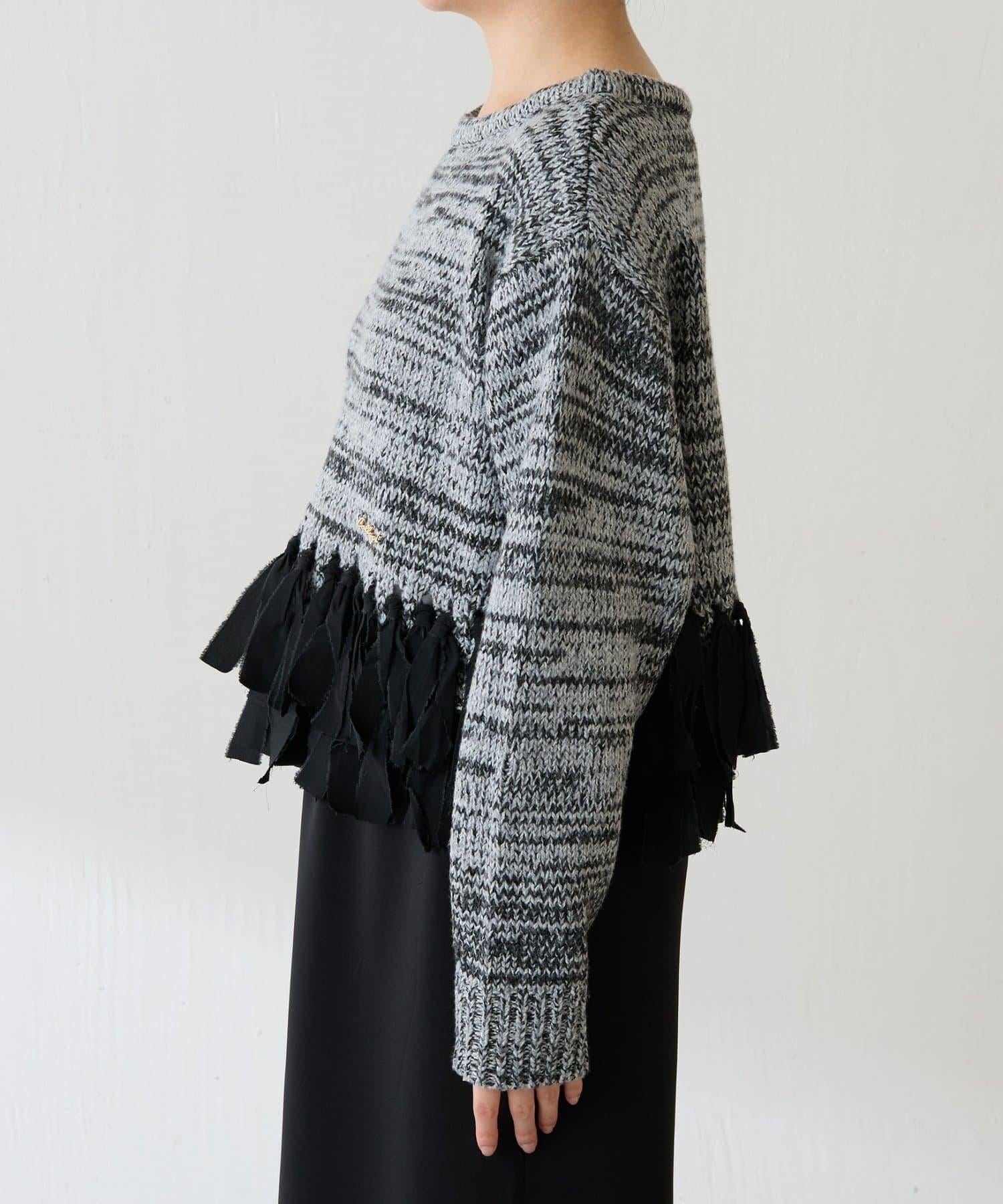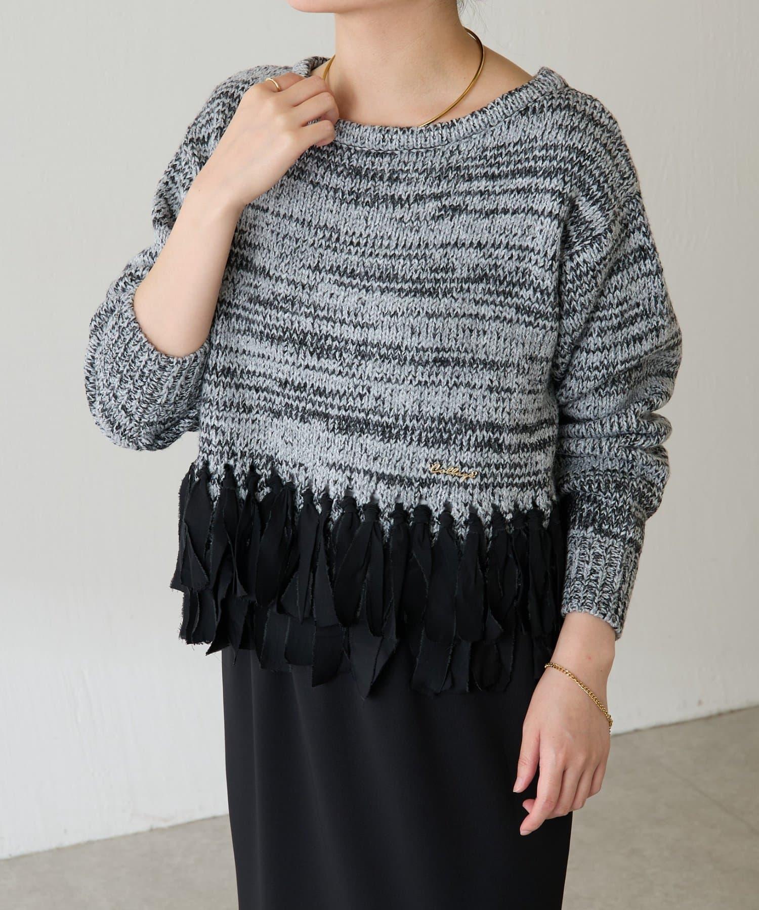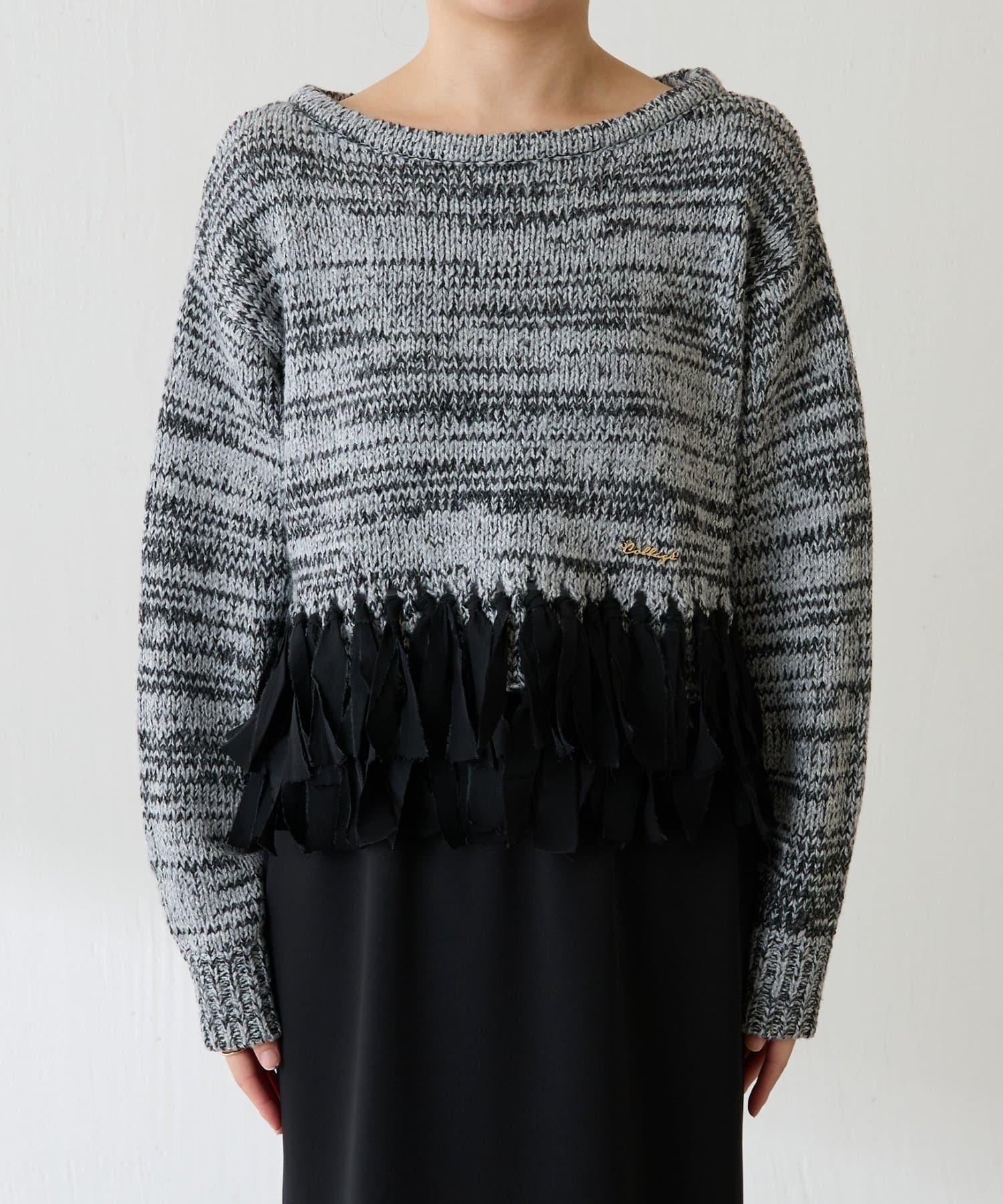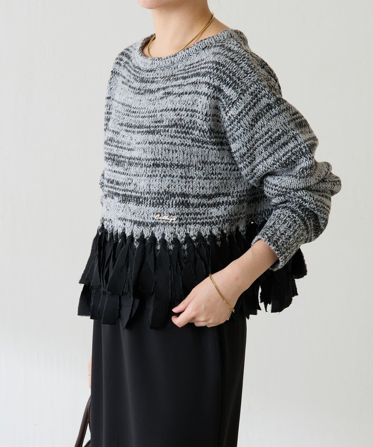 這款針織衫的下襬繫有絲帶,並有不同材質的流蘇。