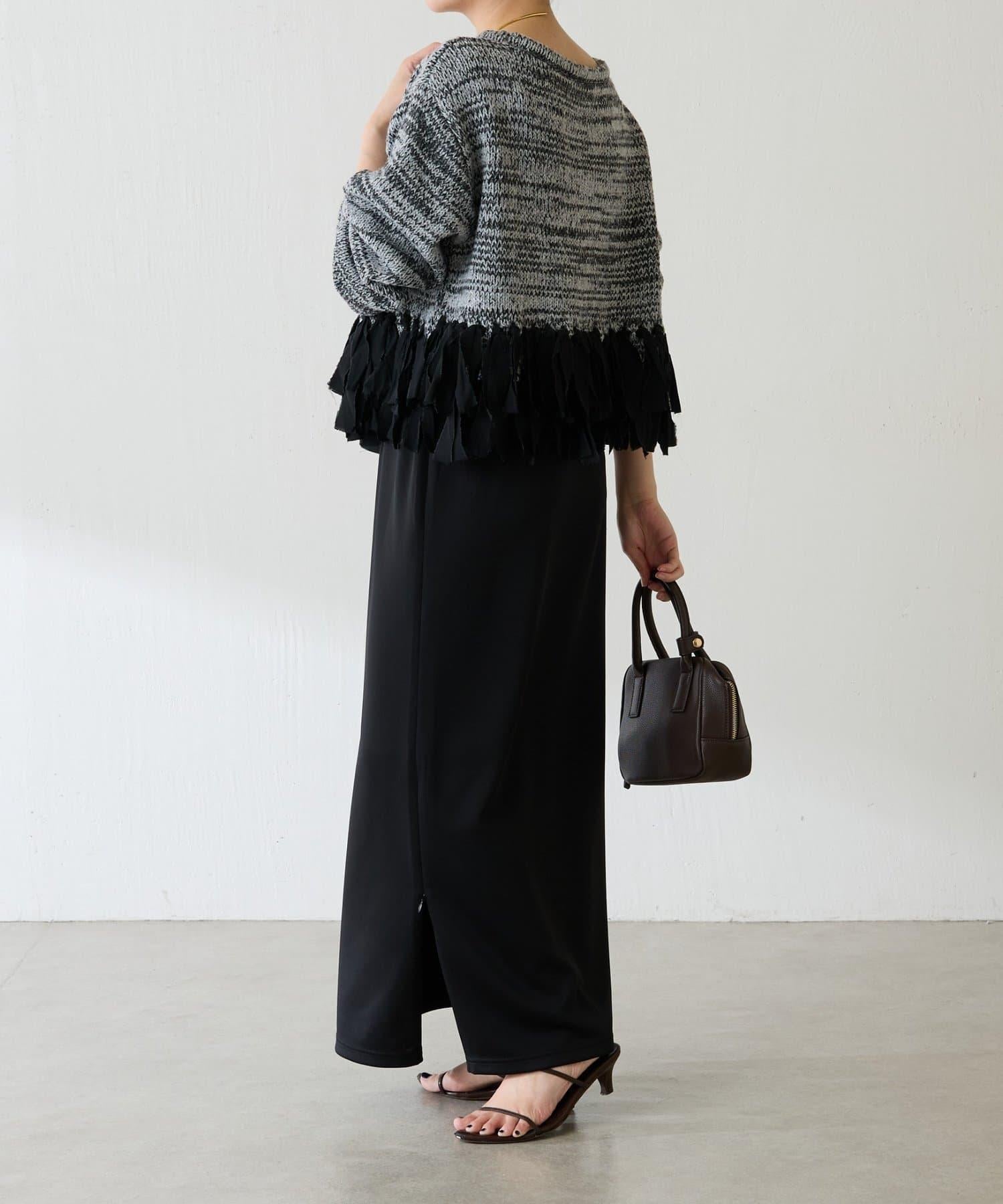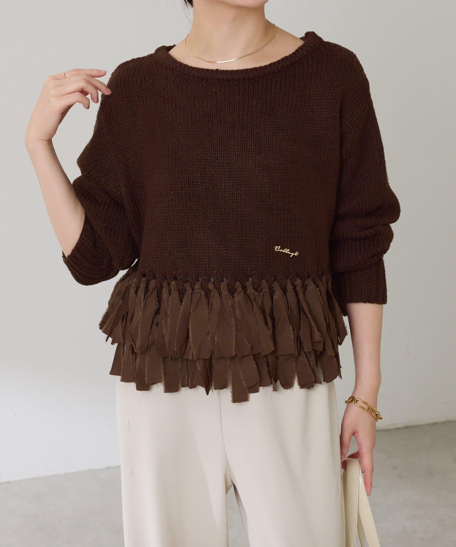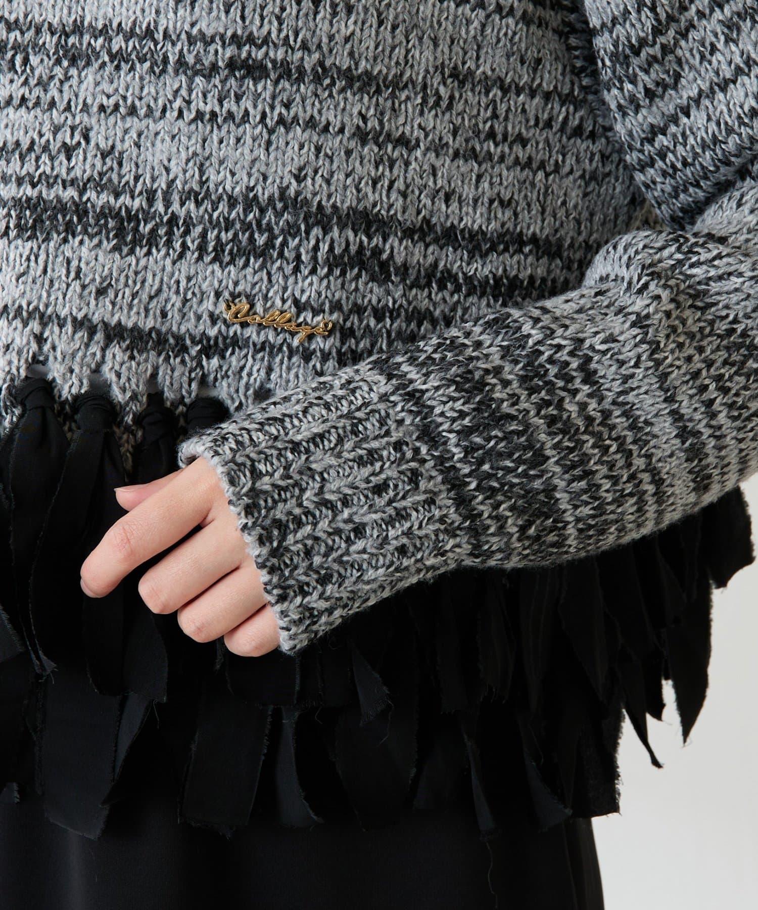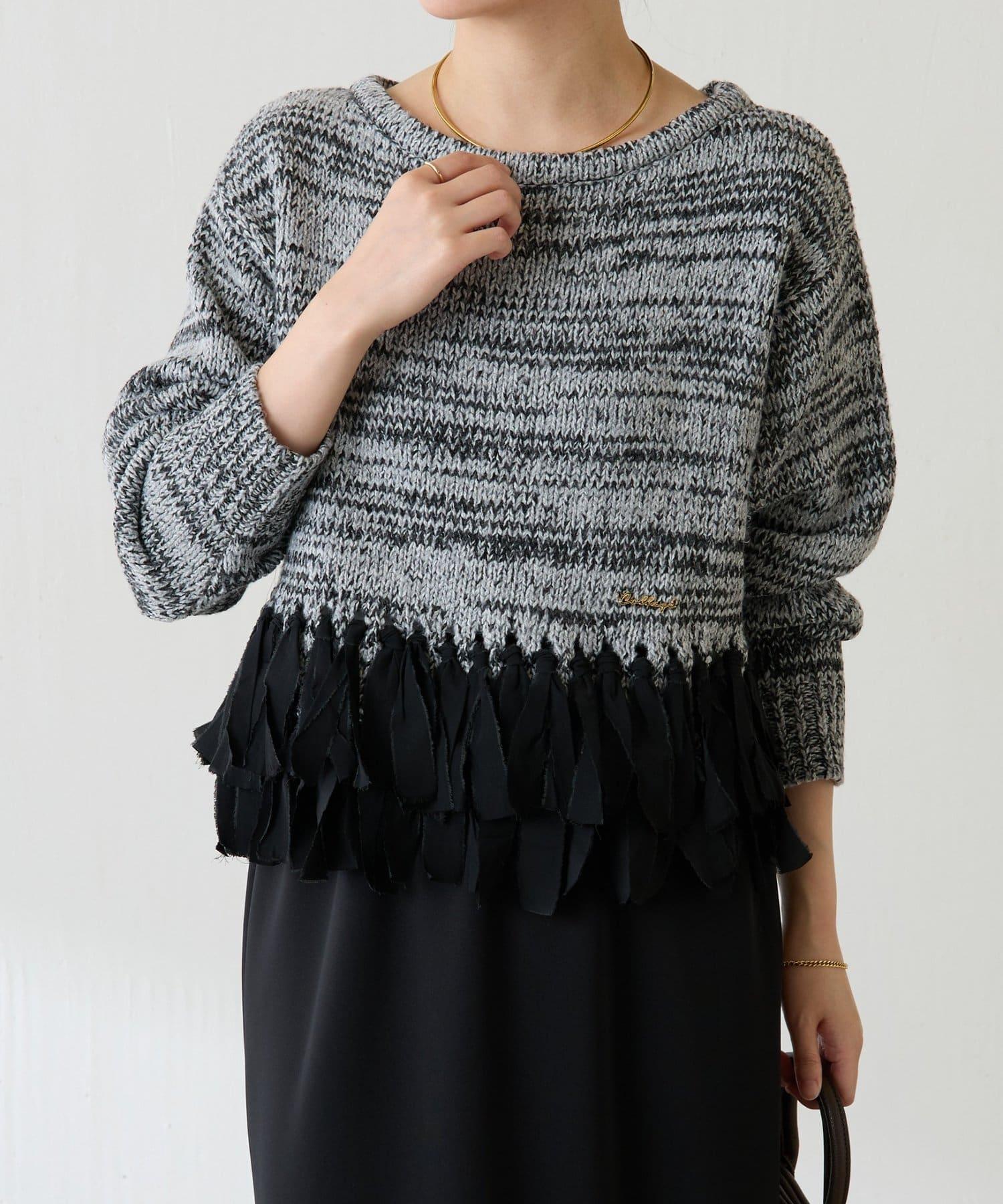 這款針織衫的下襬繫有絲帶,並有不同材質的流蘇。