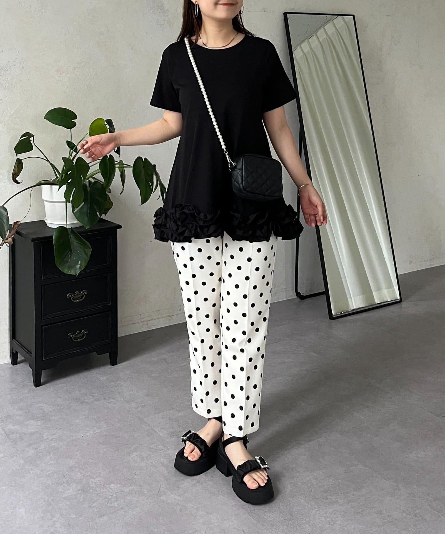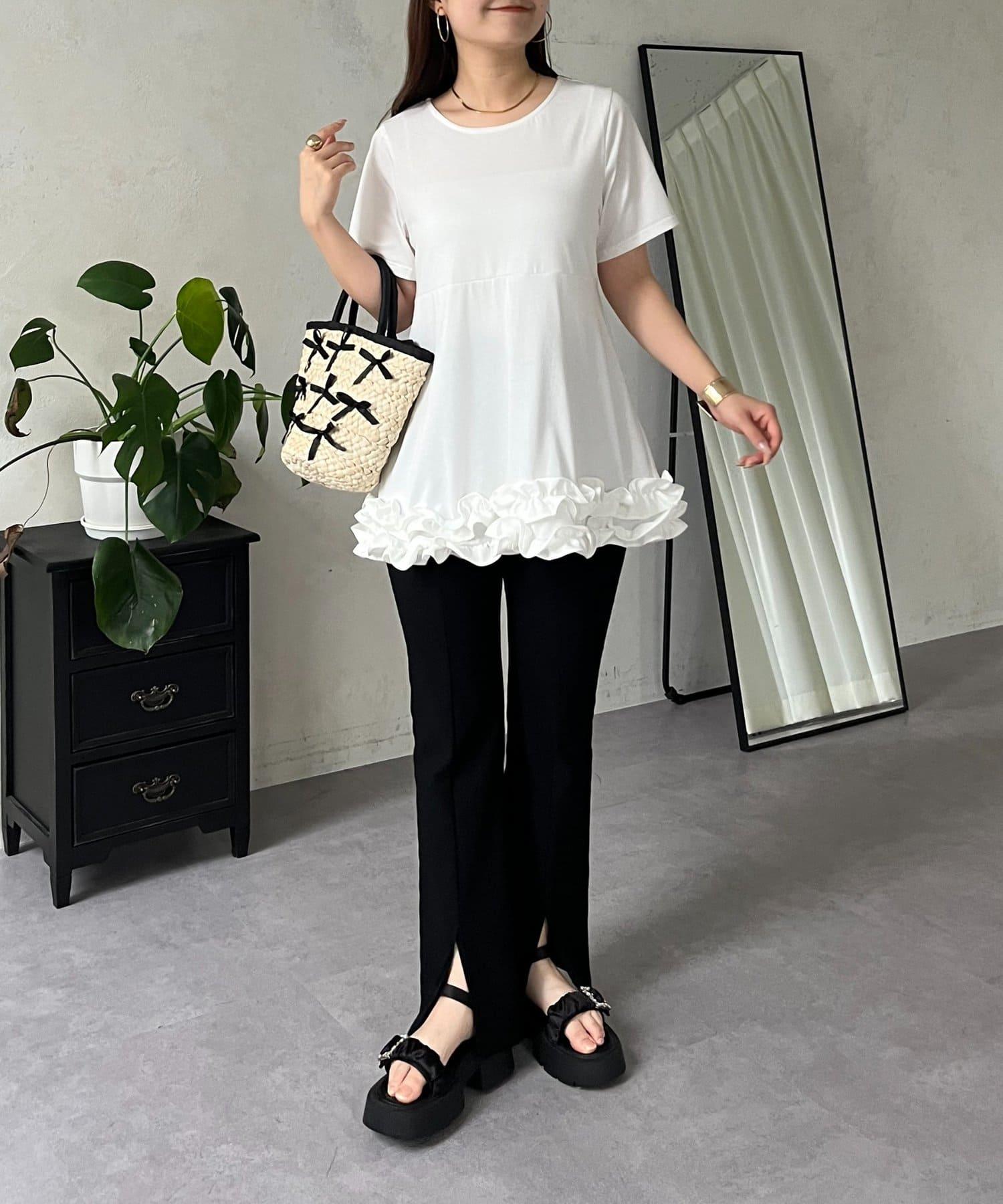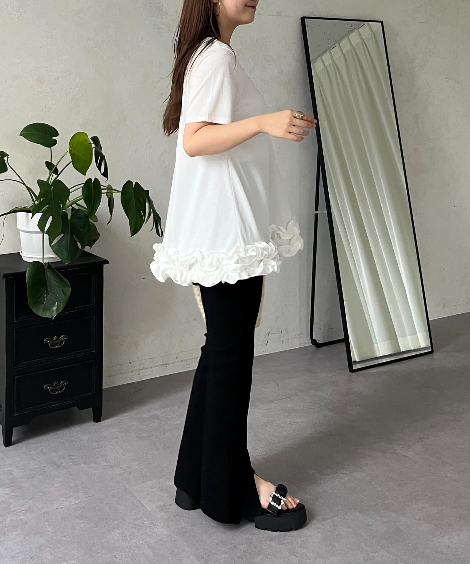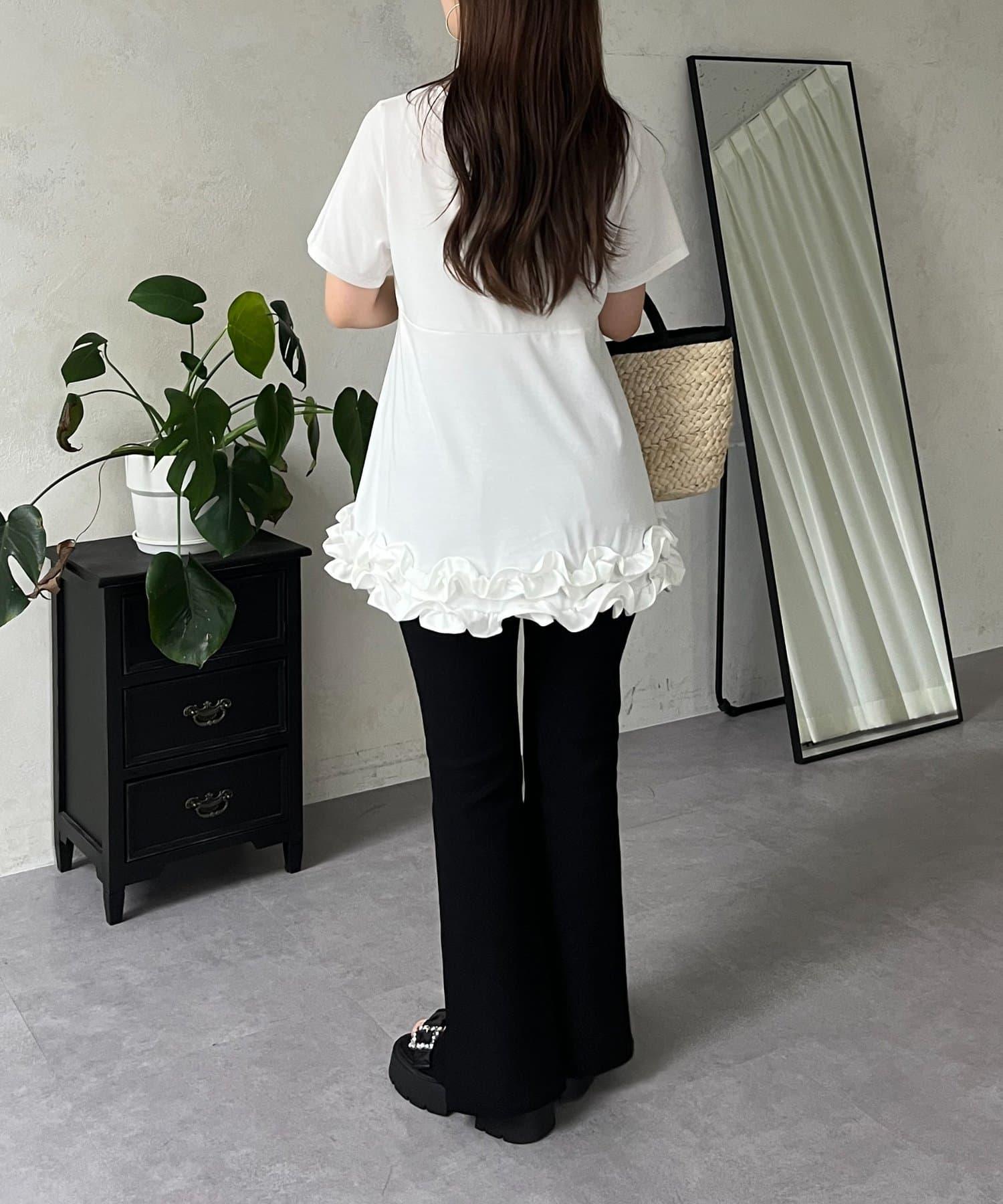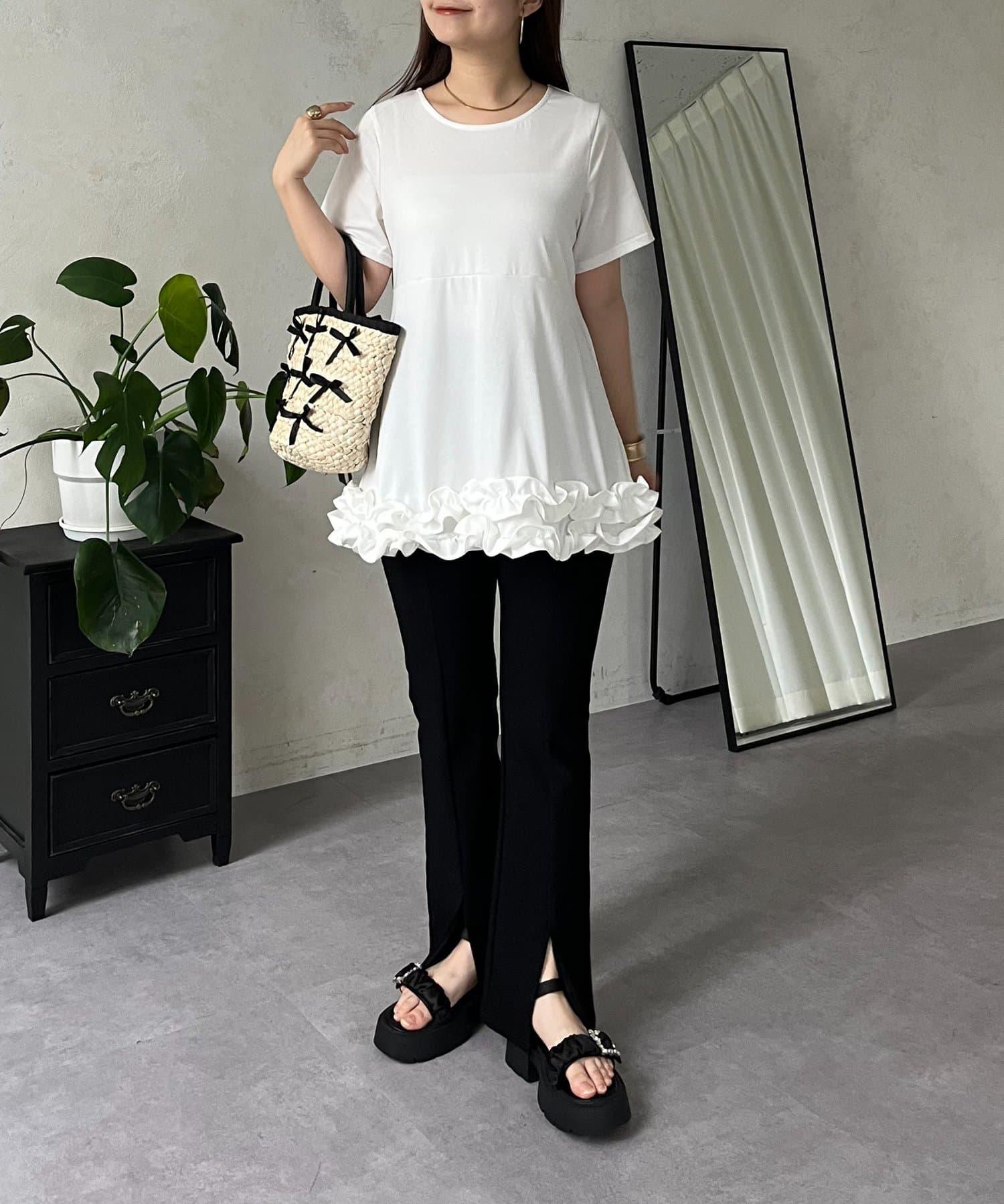 荷葉邊/遮蓋身材/T恤/蓬蓬裙/簡約