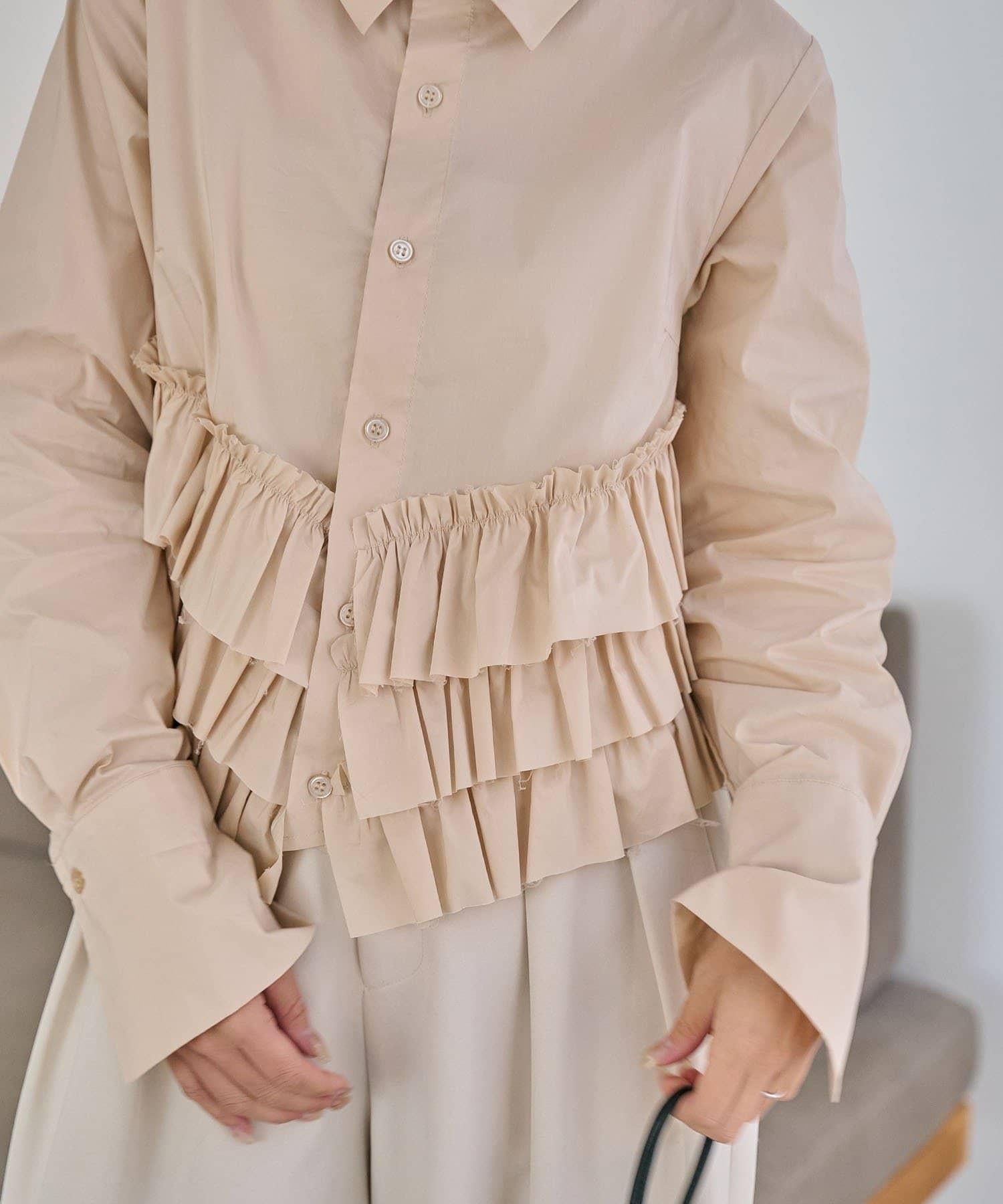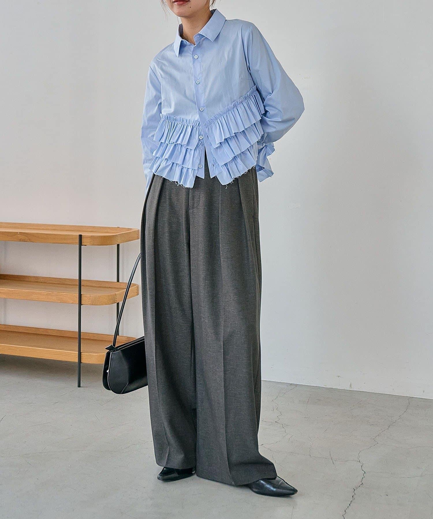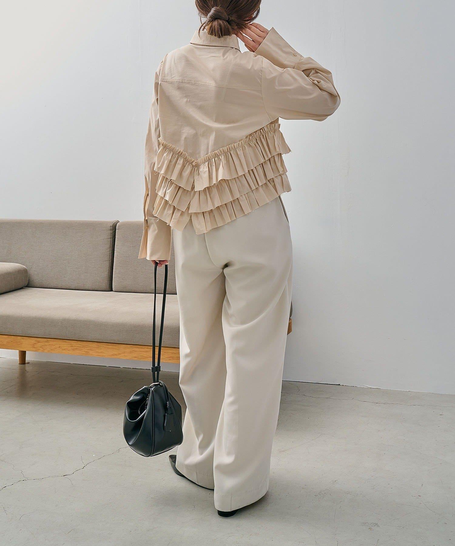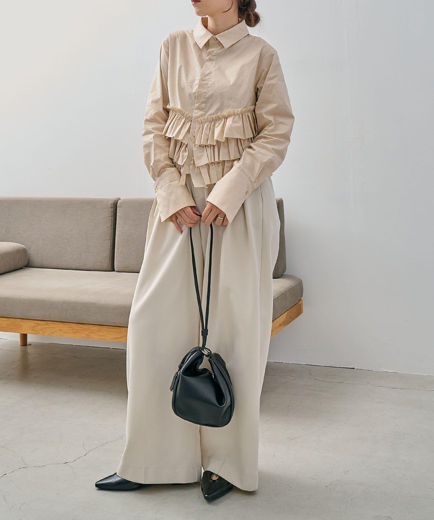 衣身的喇叭輪廓使袖子保持整齊,給人一種時髦的感覺。