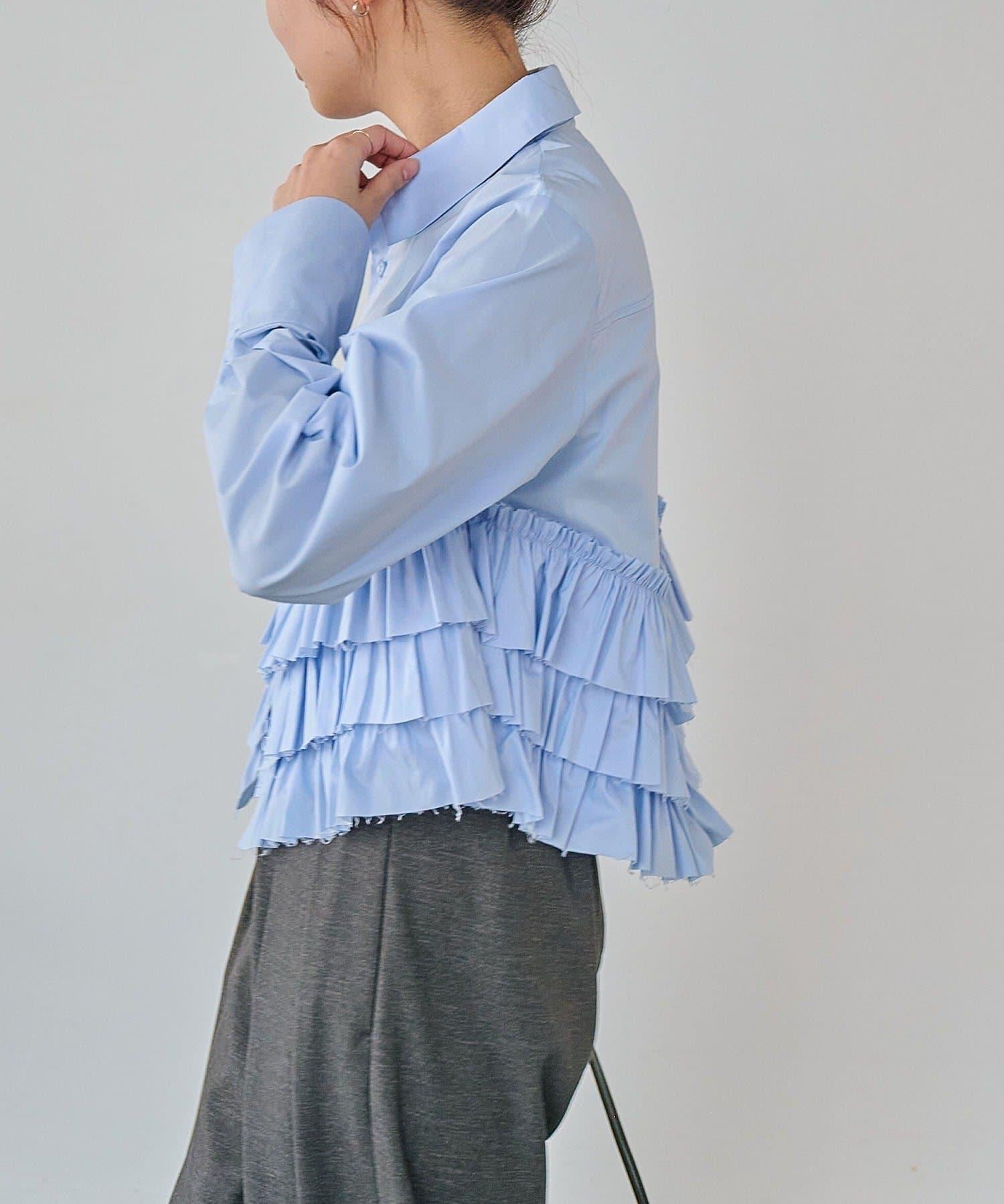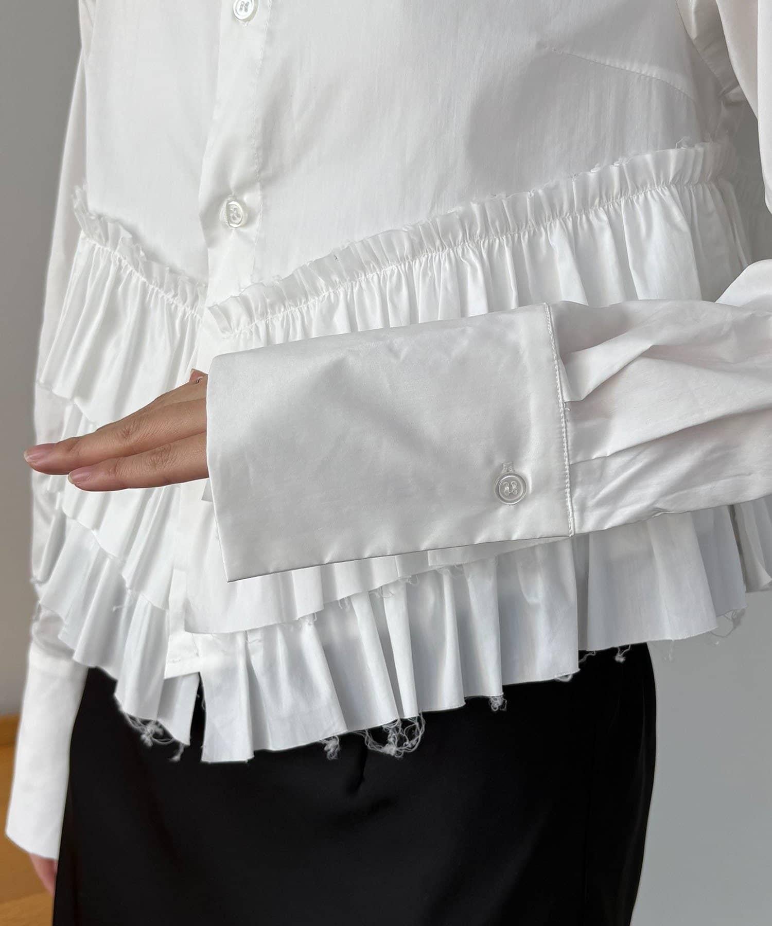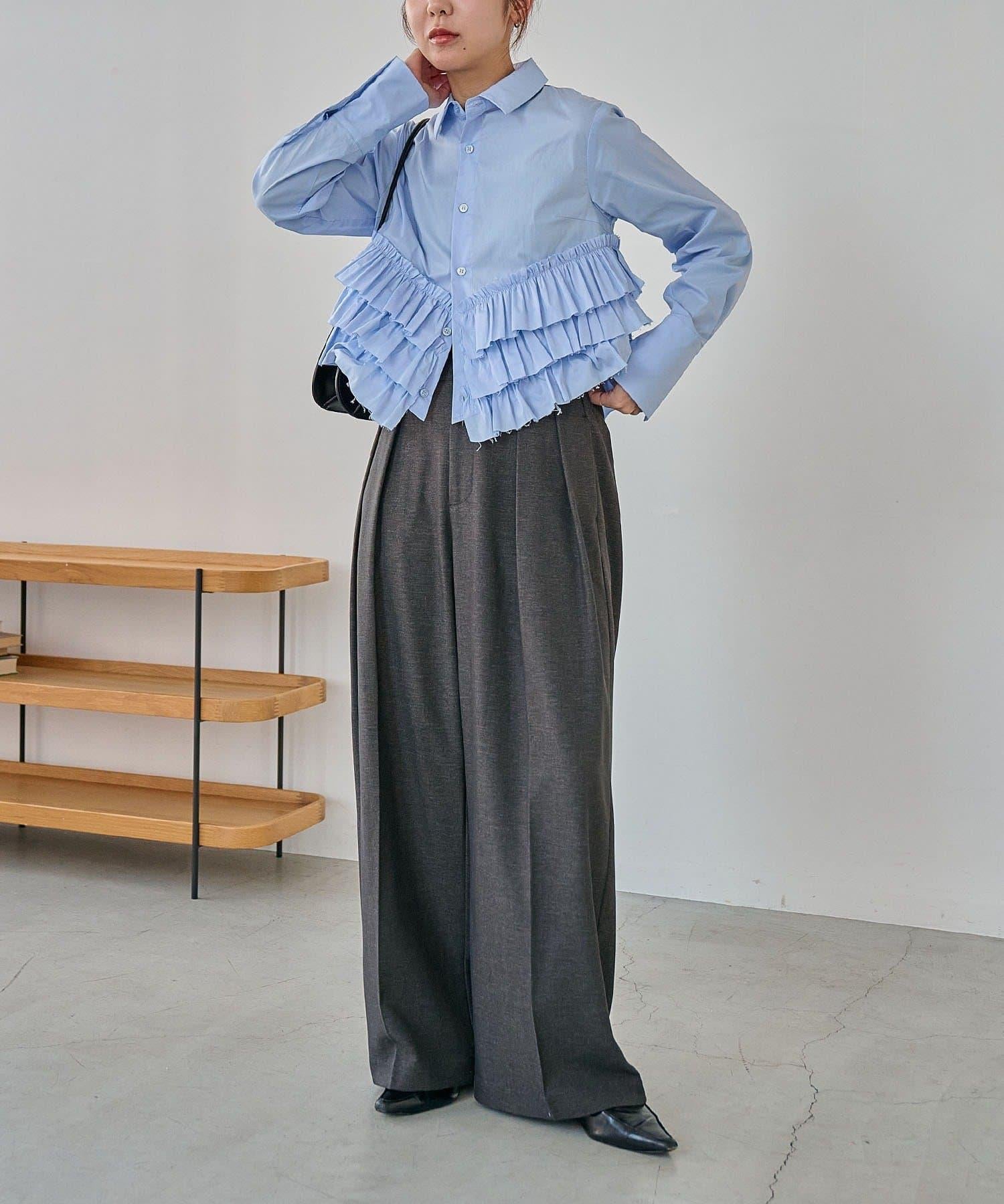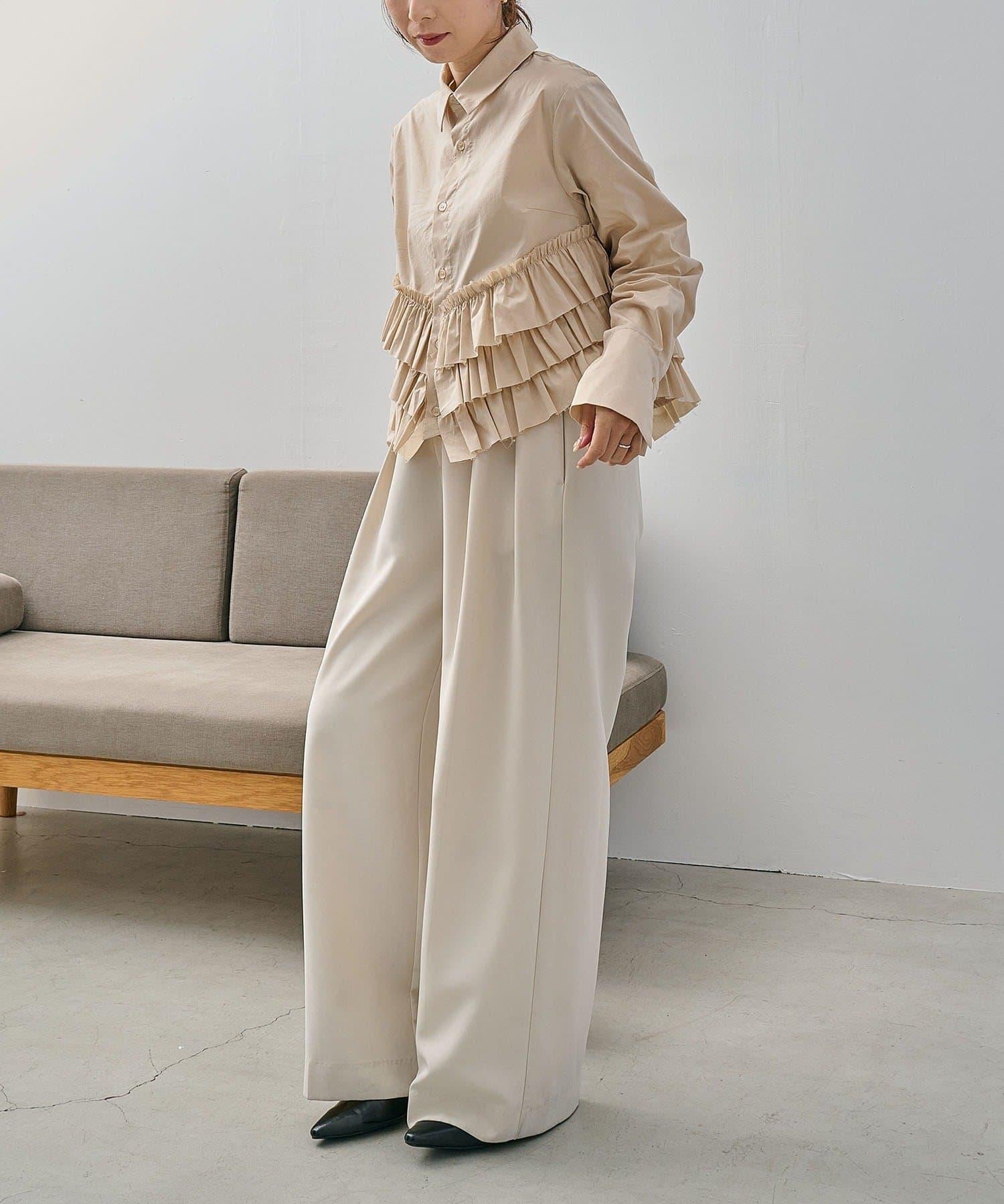 衣身的喇叭輪廓使袖子保持整齊,給人一種時髦的感覺。