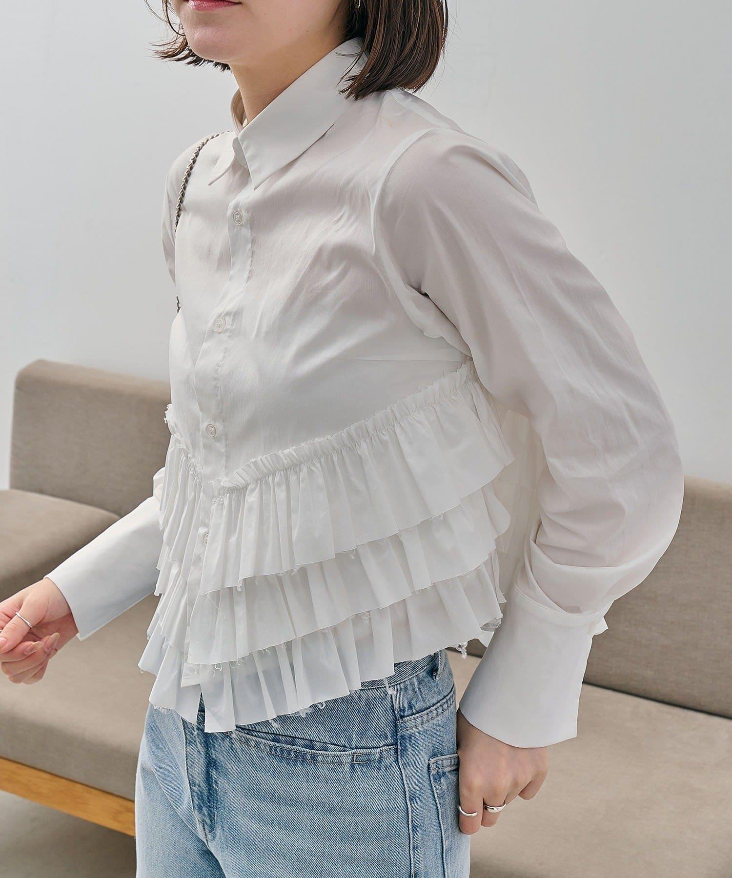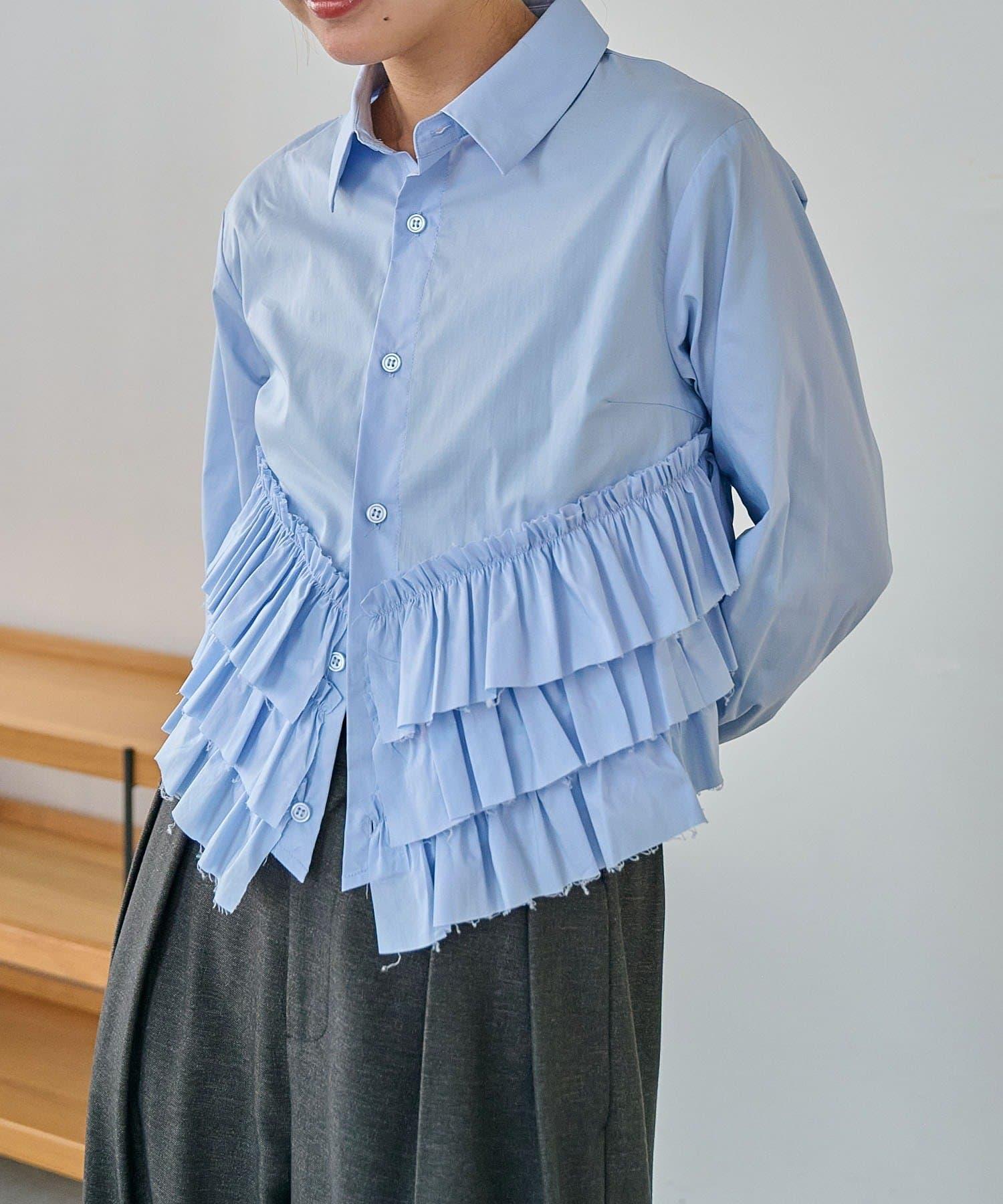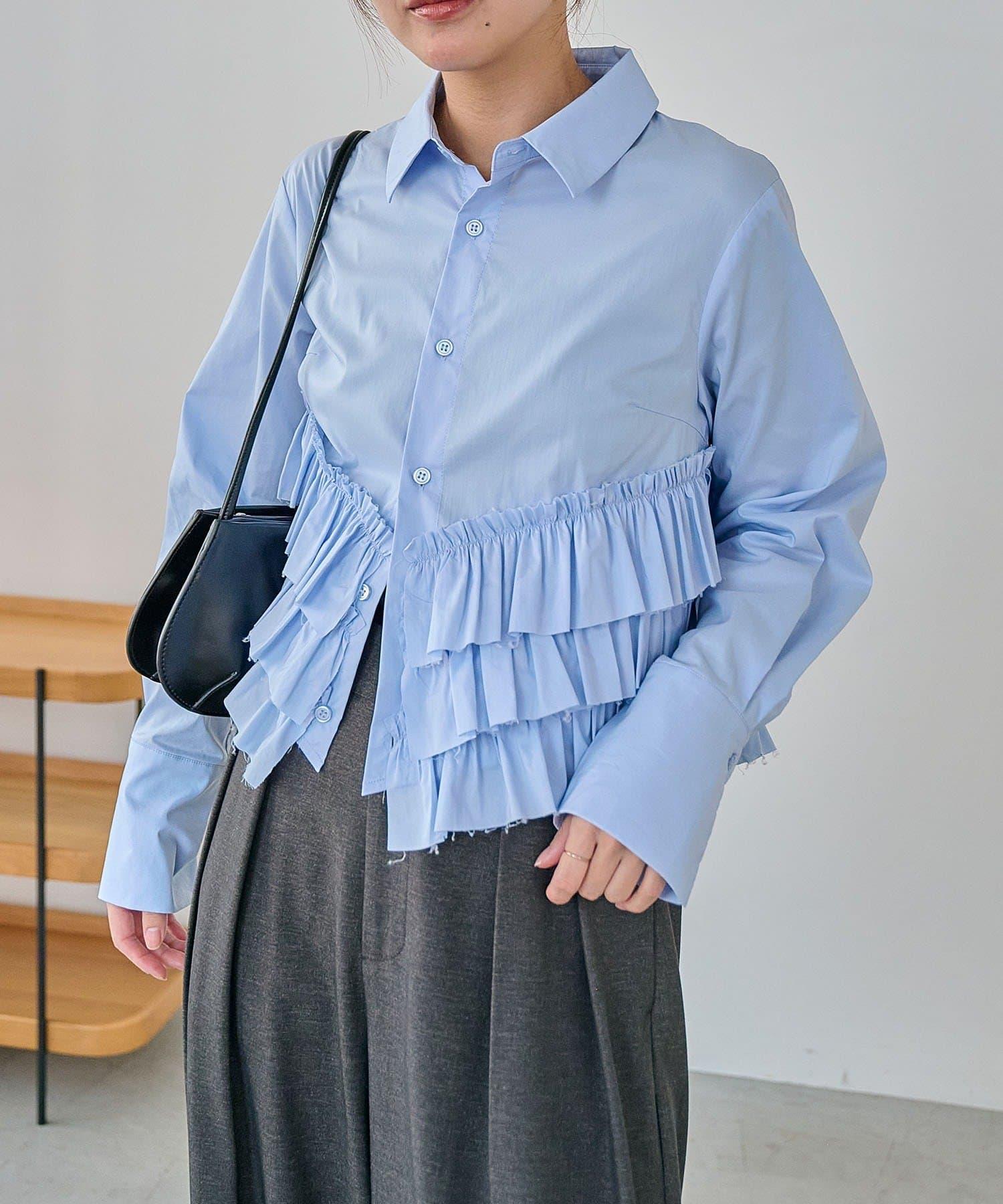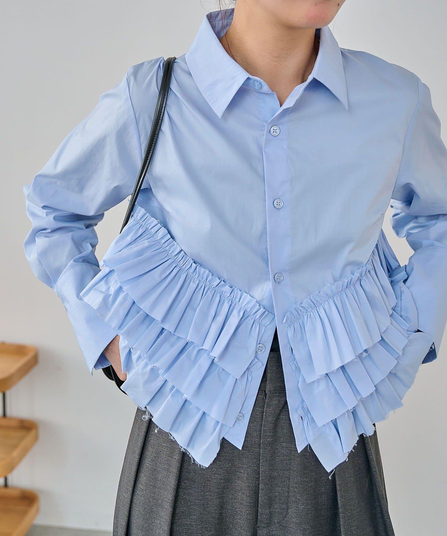 衣身的喇叭輪廓使袖子保持整齊,給人一種時髦的感覺。