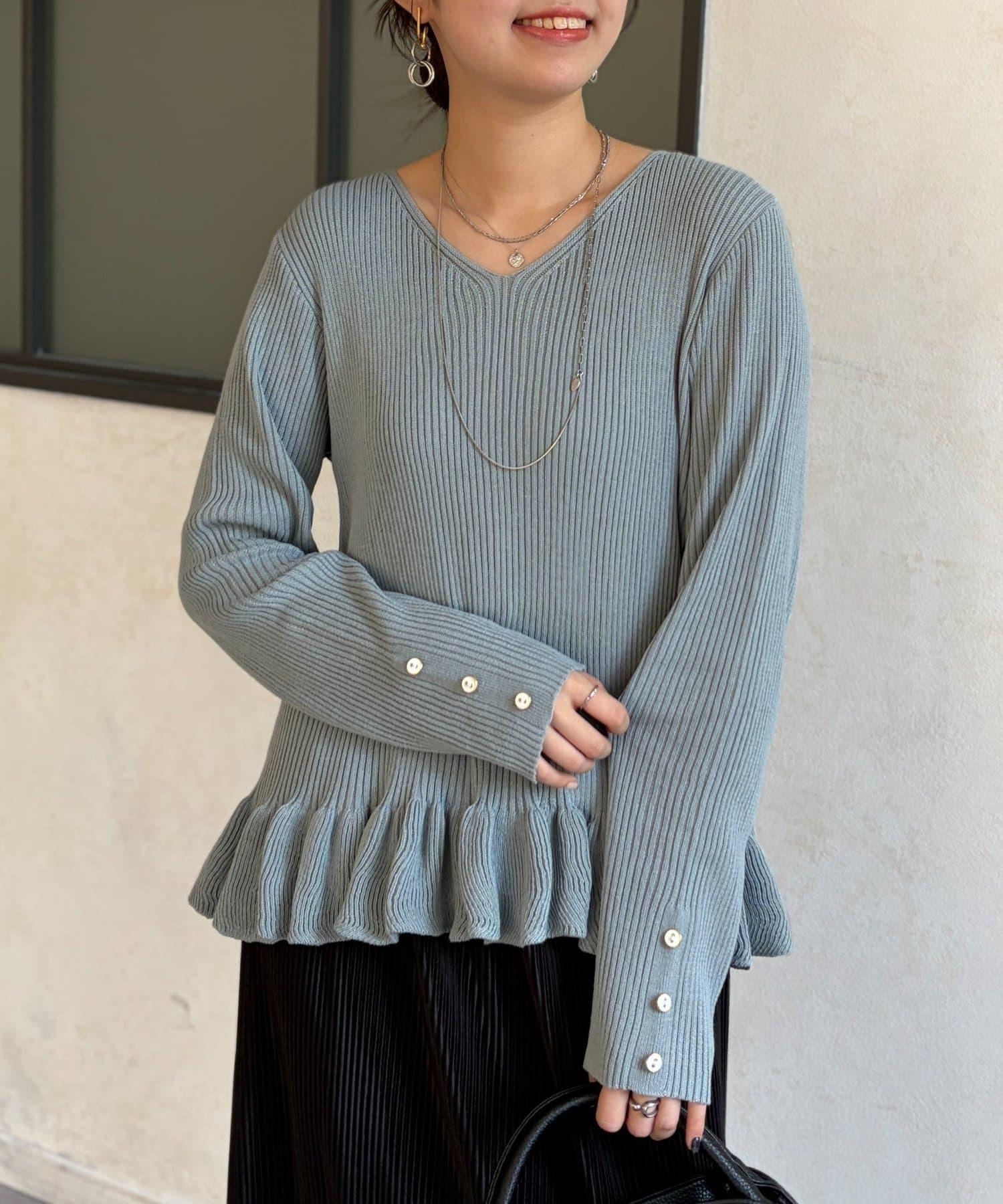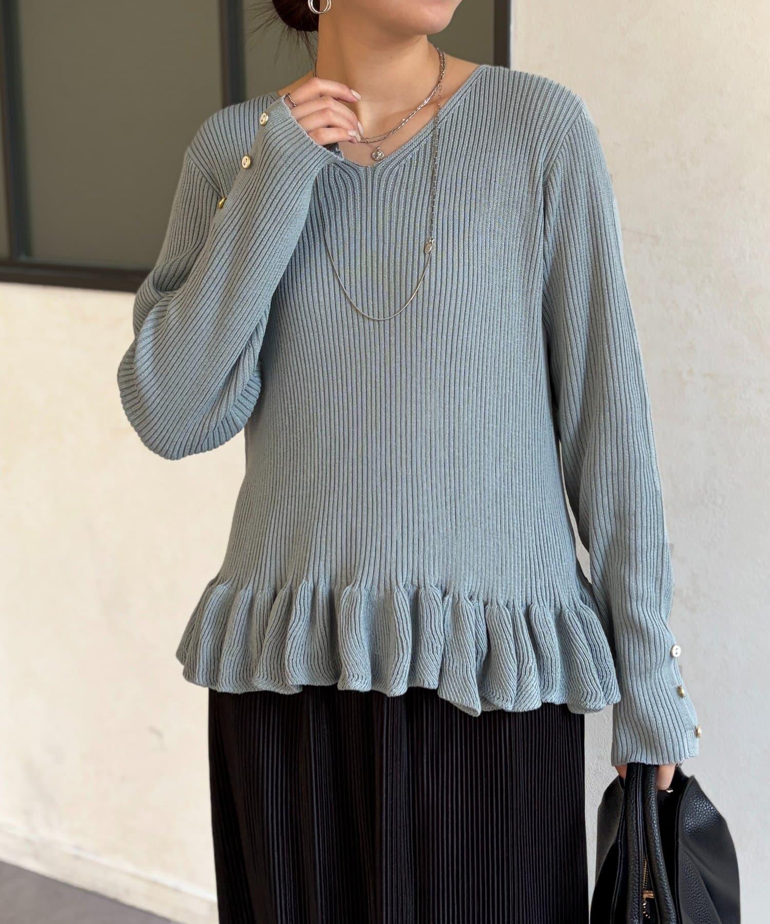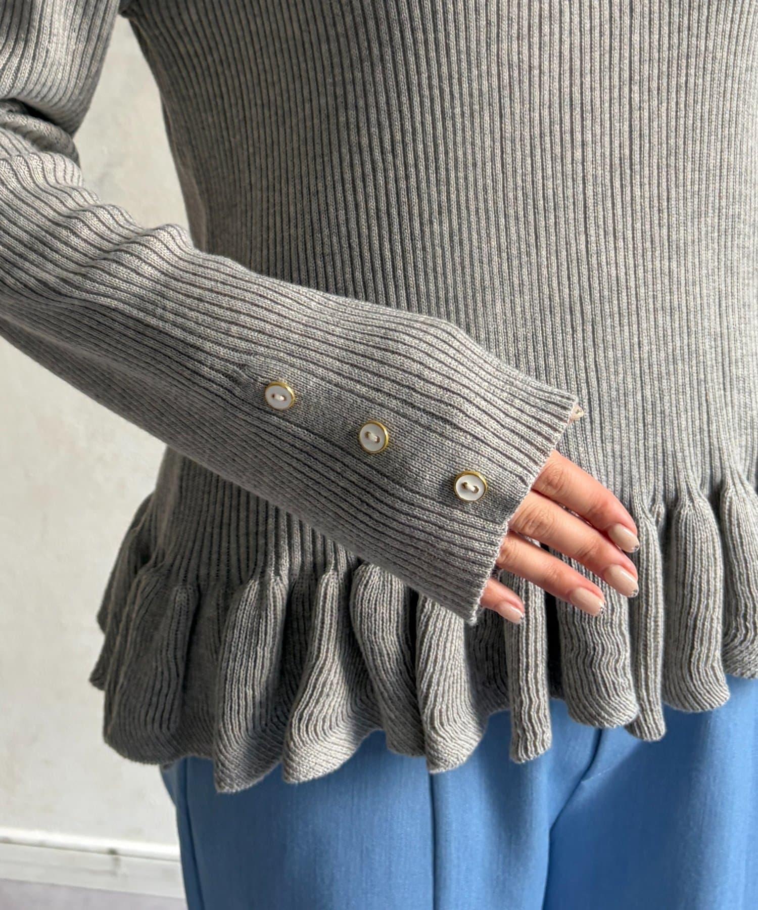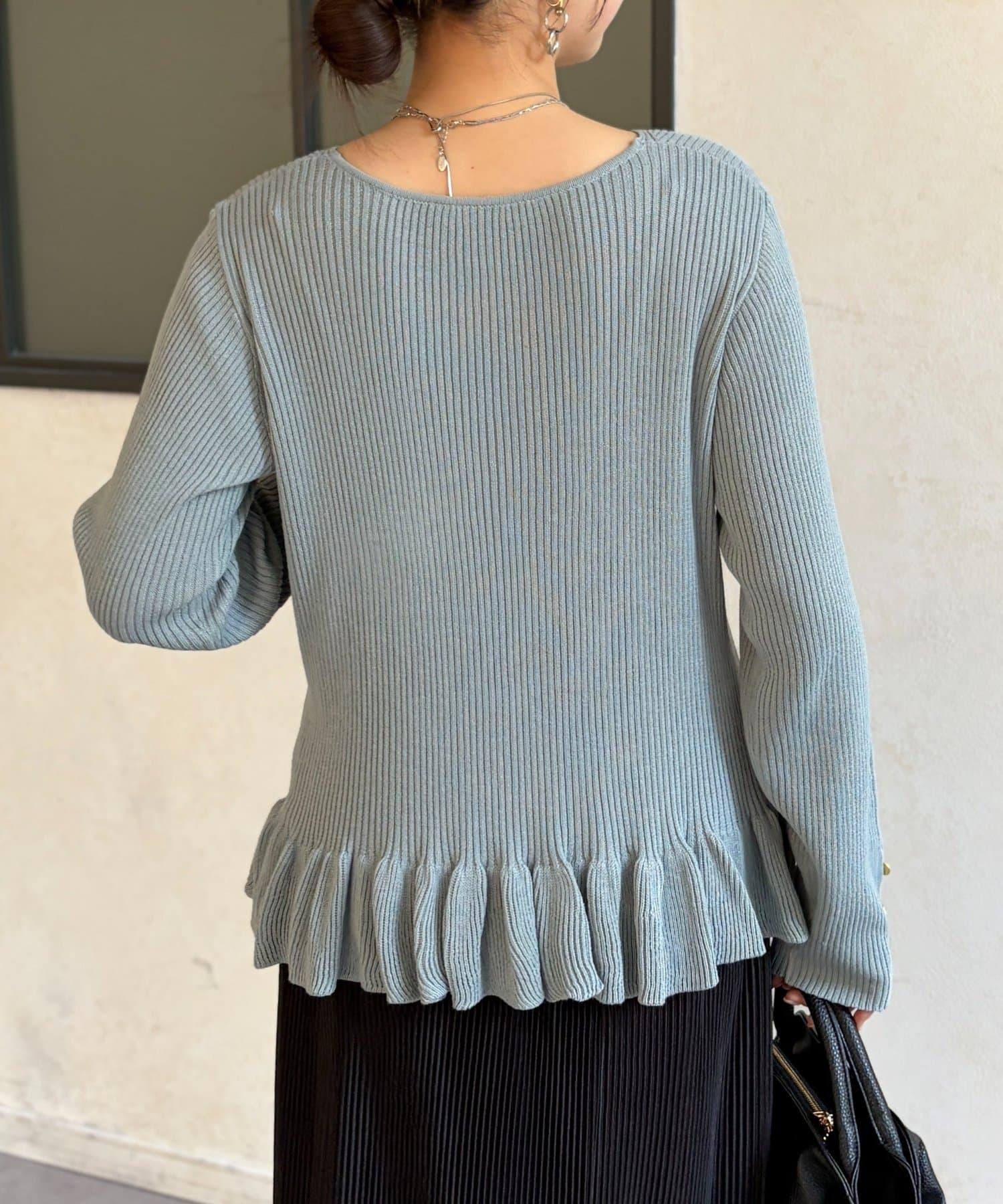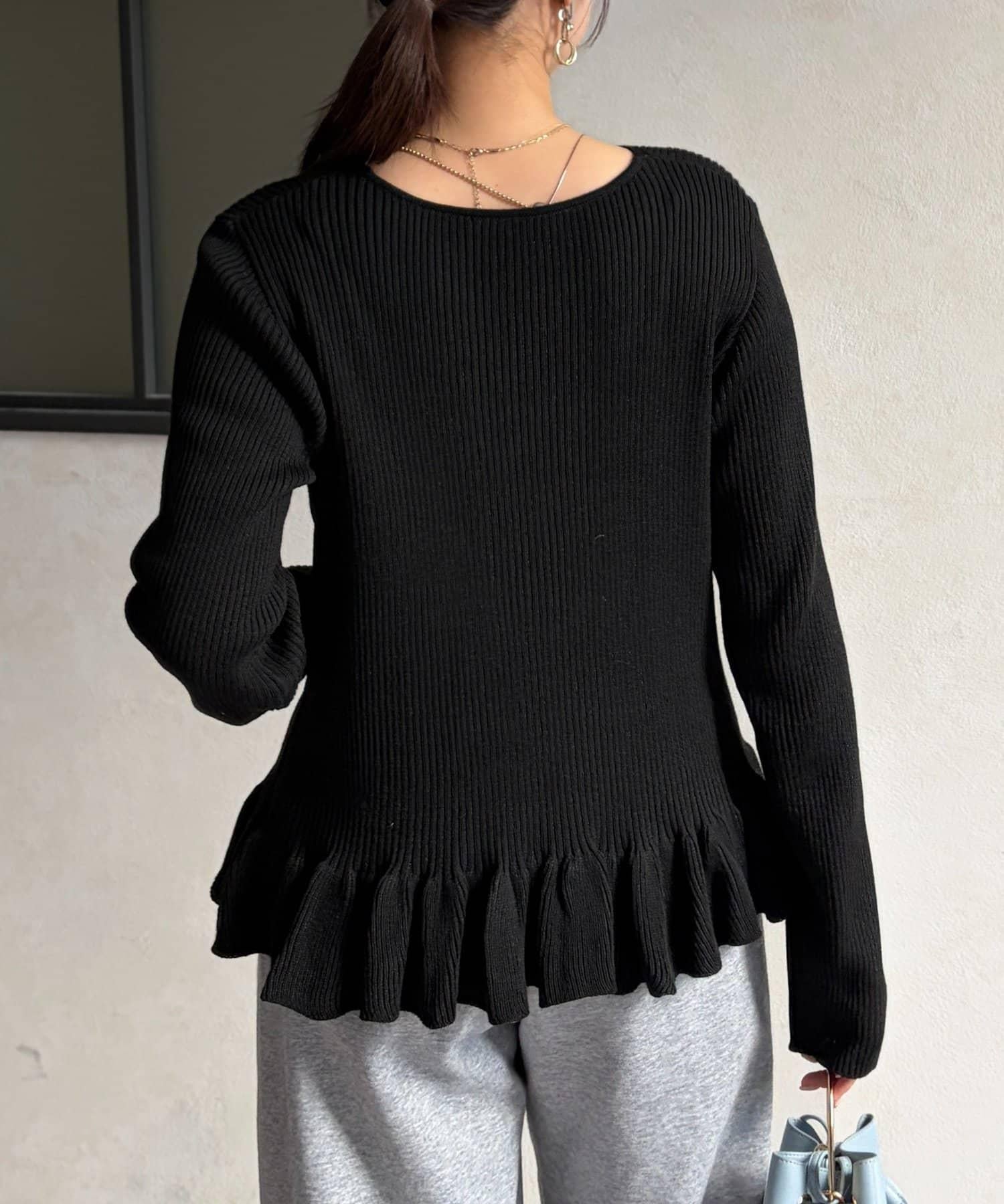 成人可愛針織衫,下襬有荷葉邊。