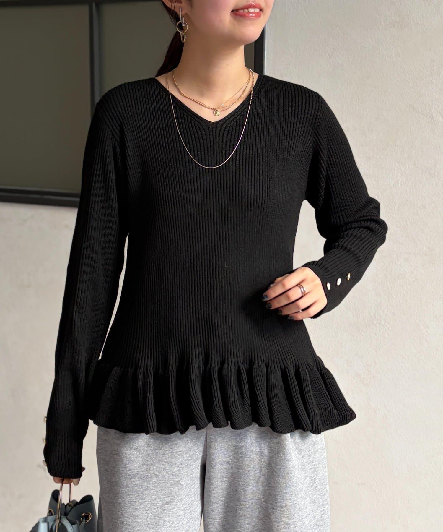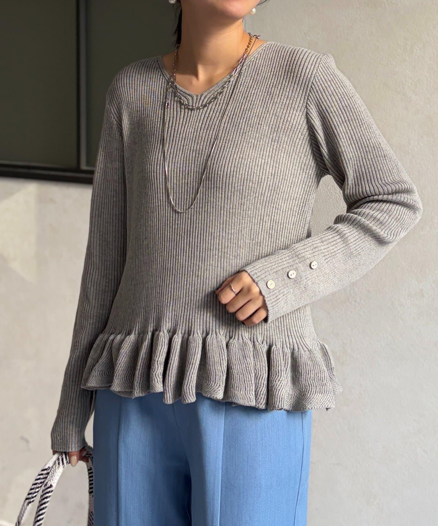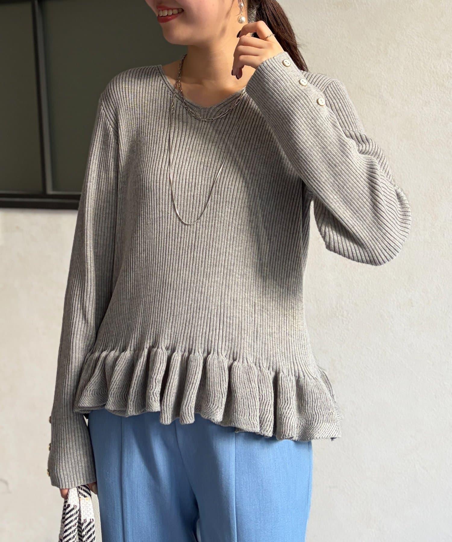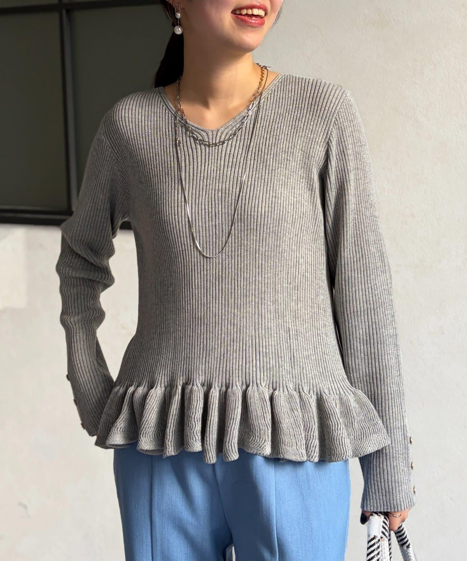 成人可愛針織衫,下襬有荷葉邊。