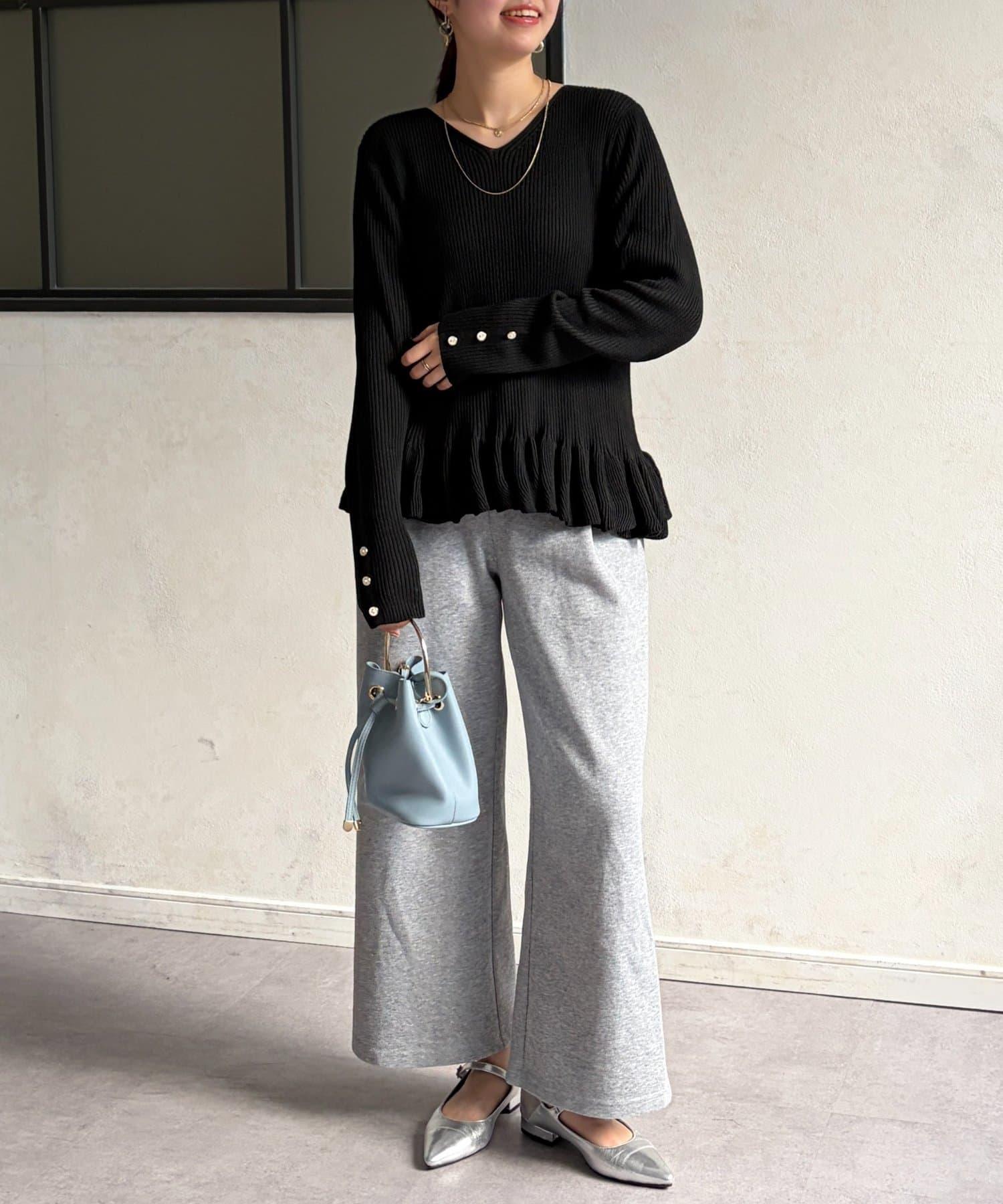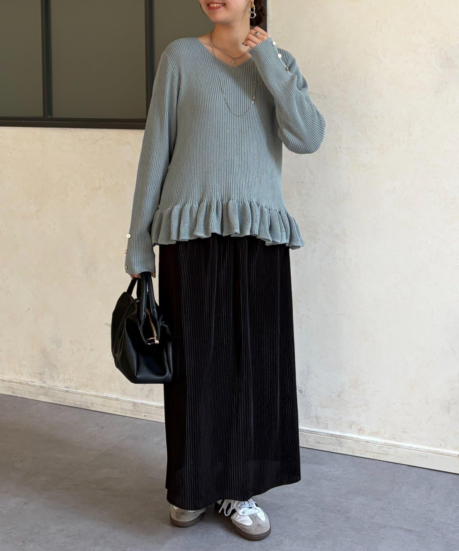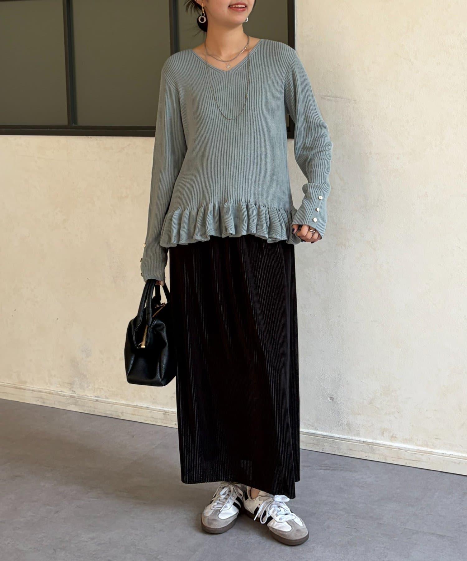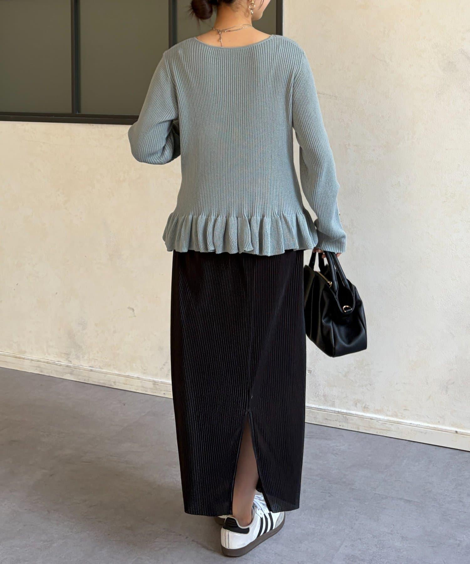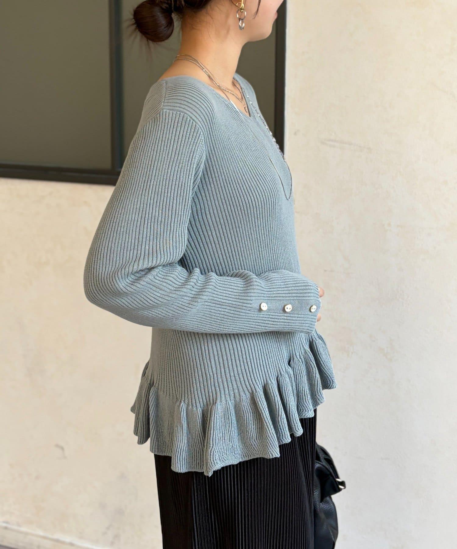 成人可愛針織衫,下襬有荷葉邊。
