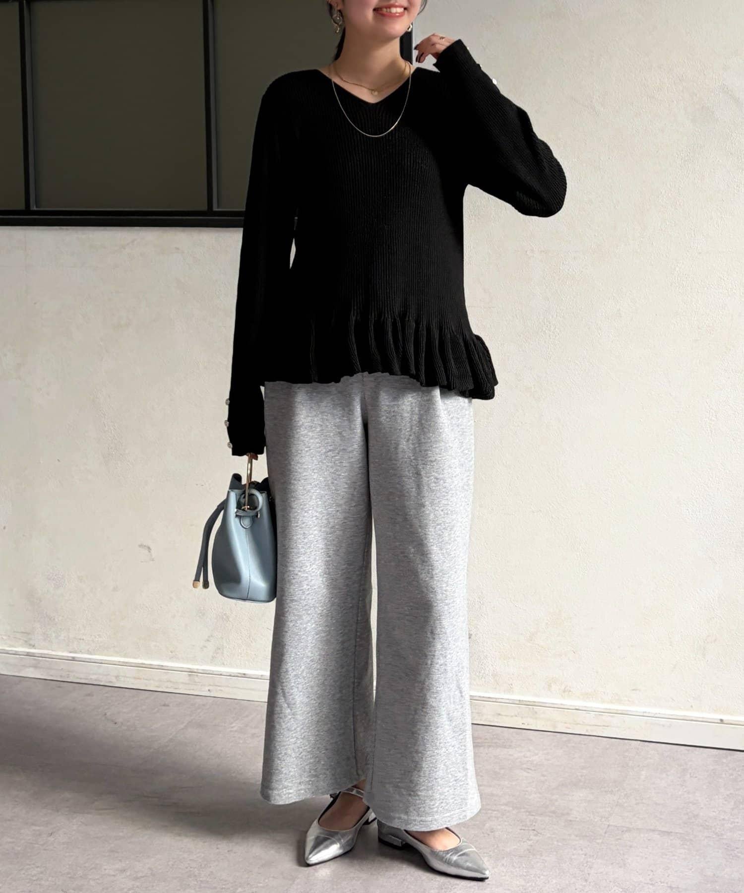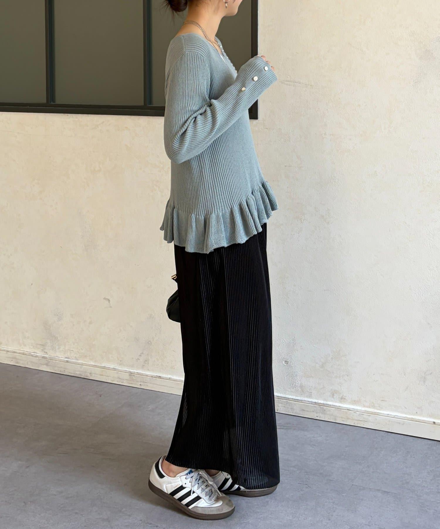下襬荷葉邊針織套頭上衣