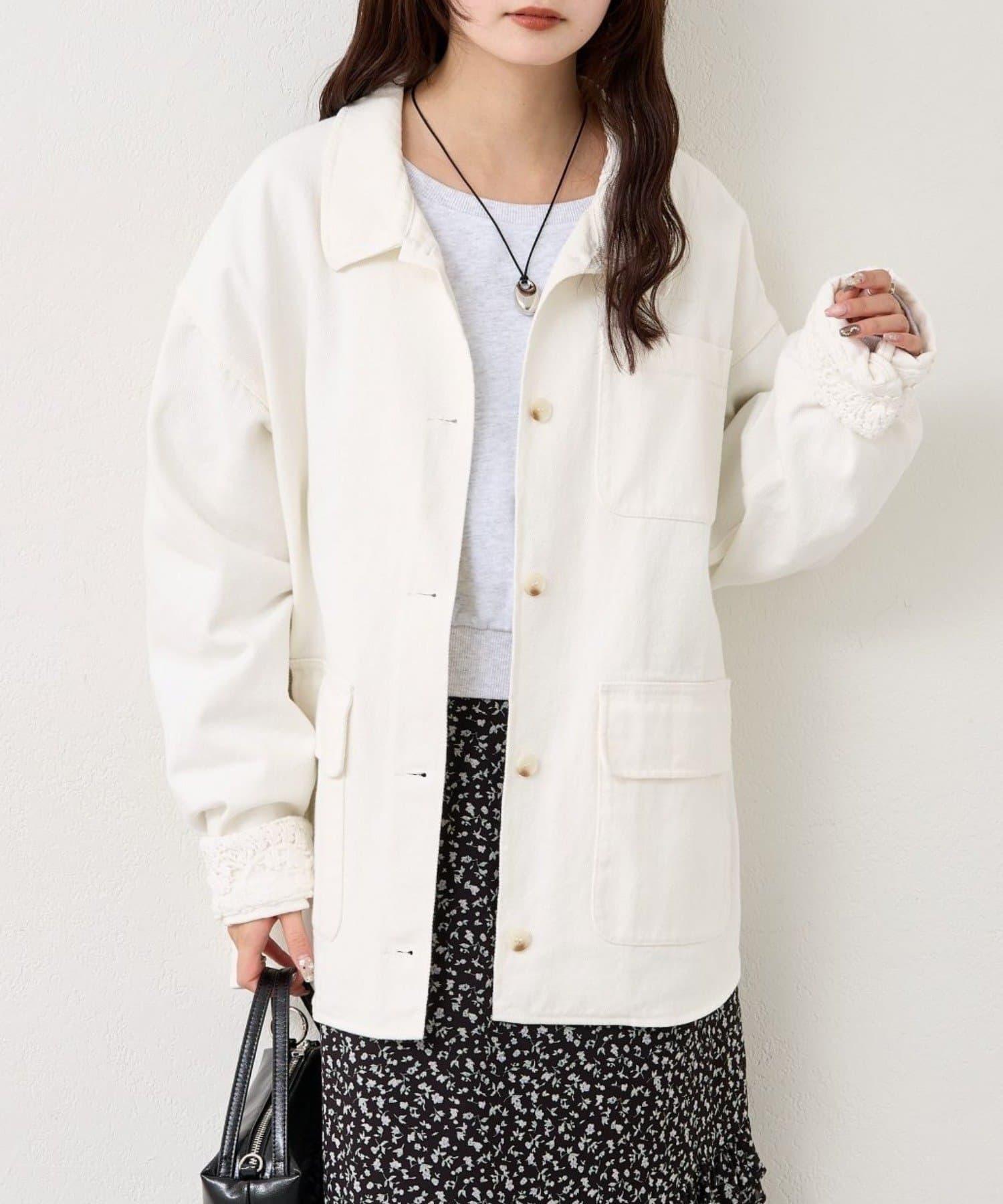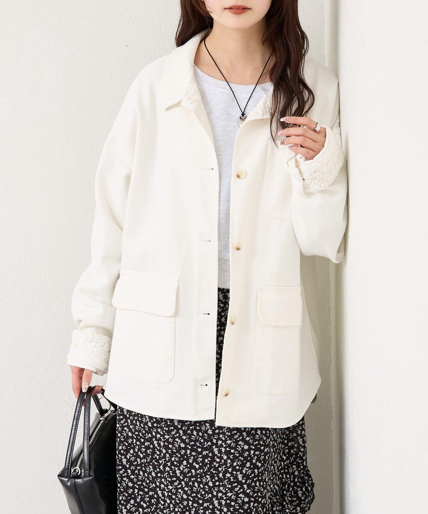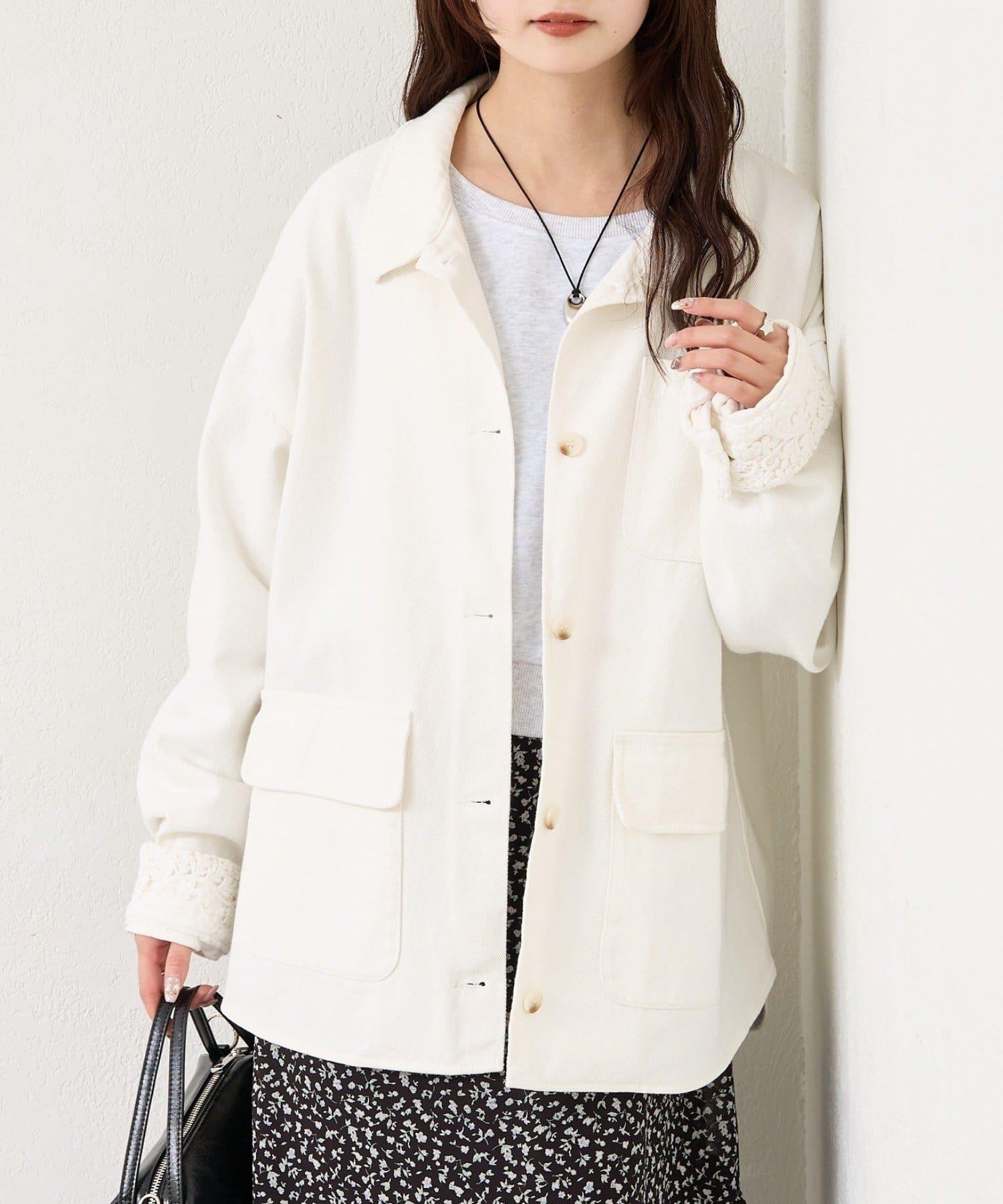 成人可愛斜紋布外套,袖口有蕾絲花邊。