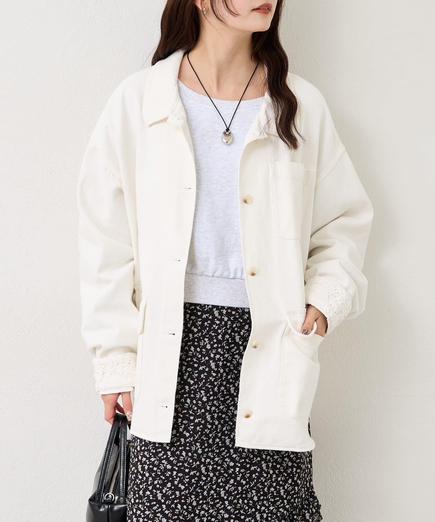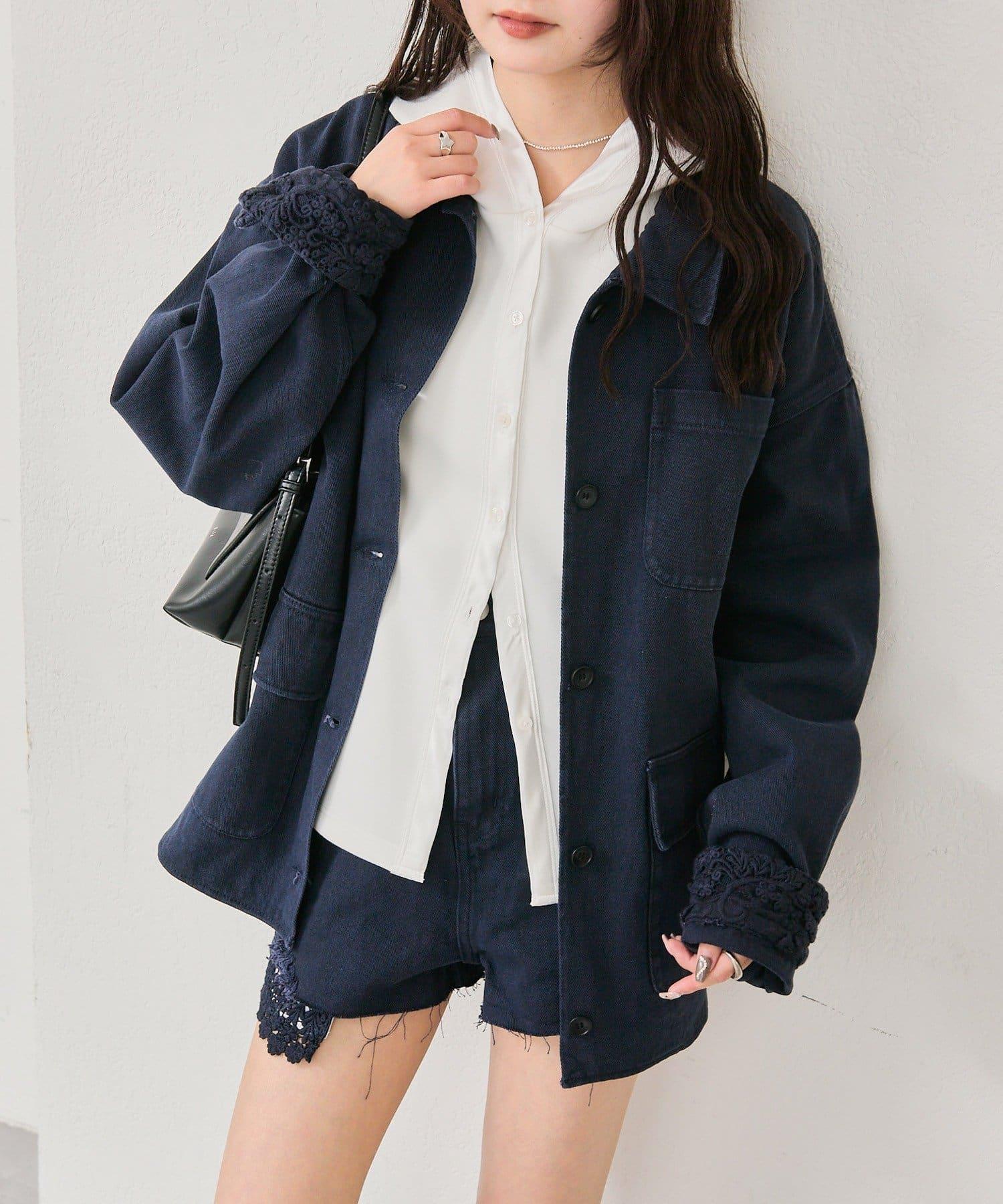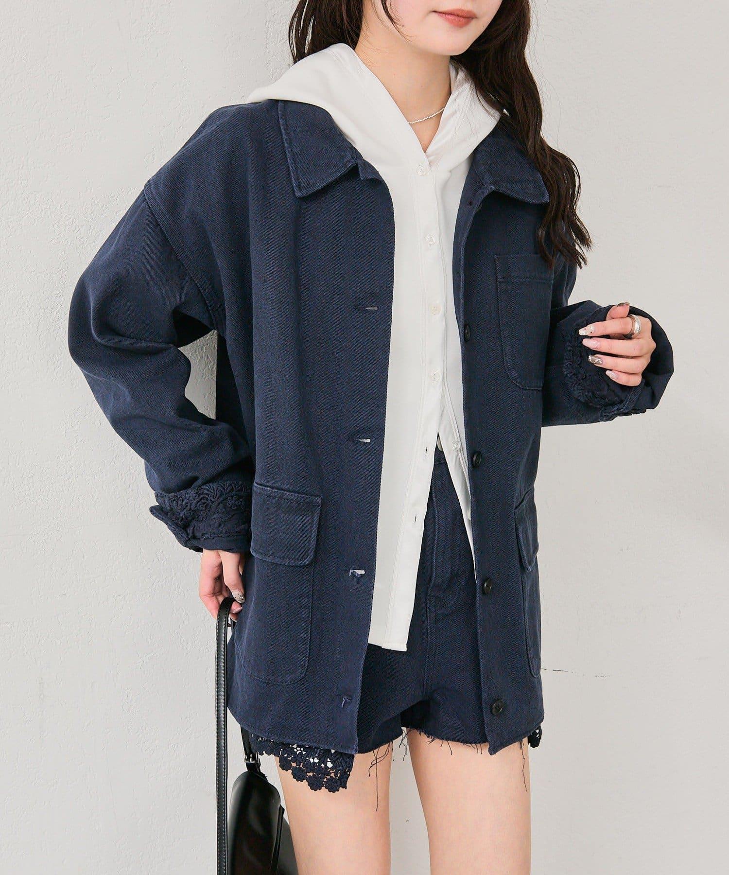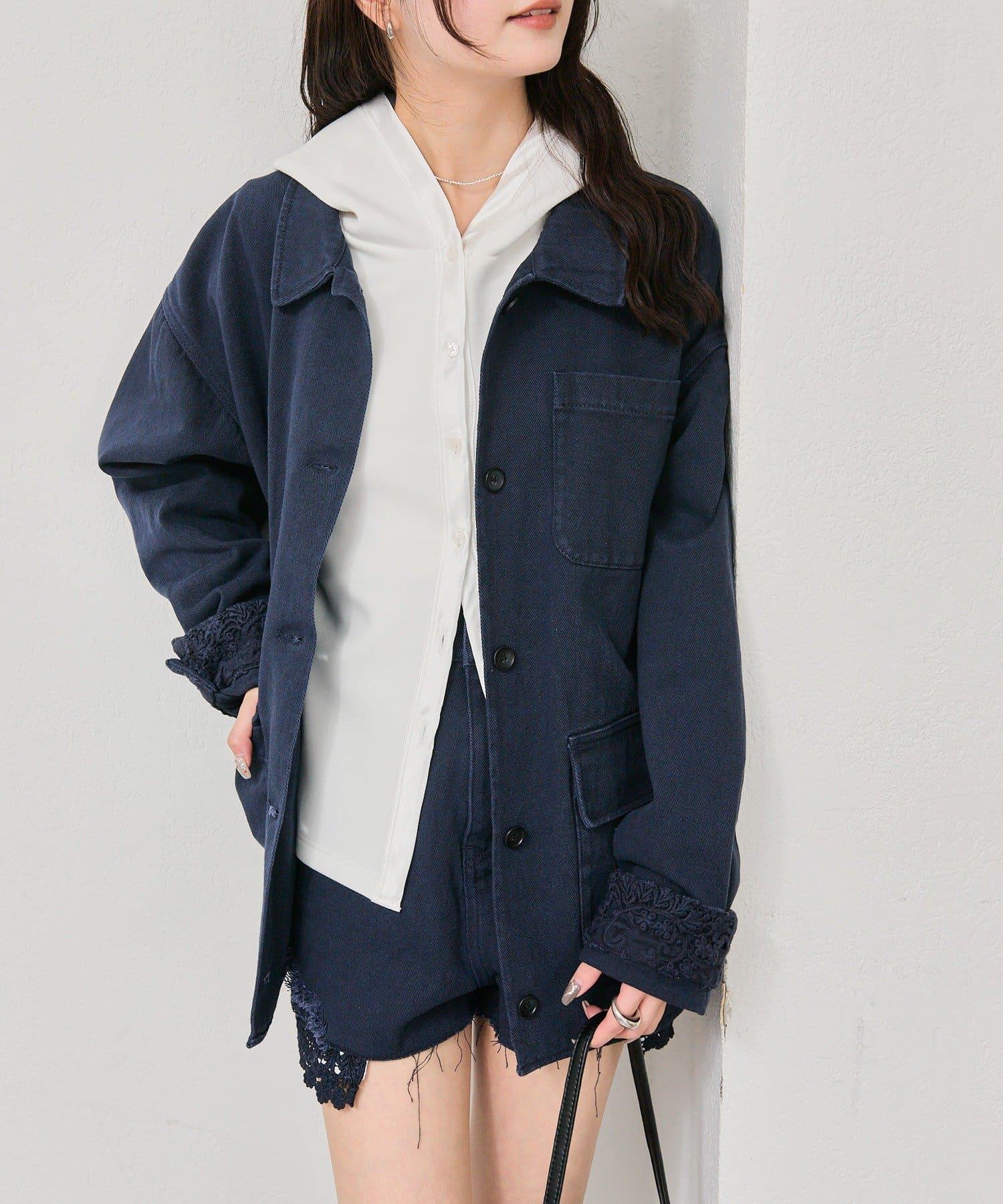 下襬蕾絲斜紋夾克