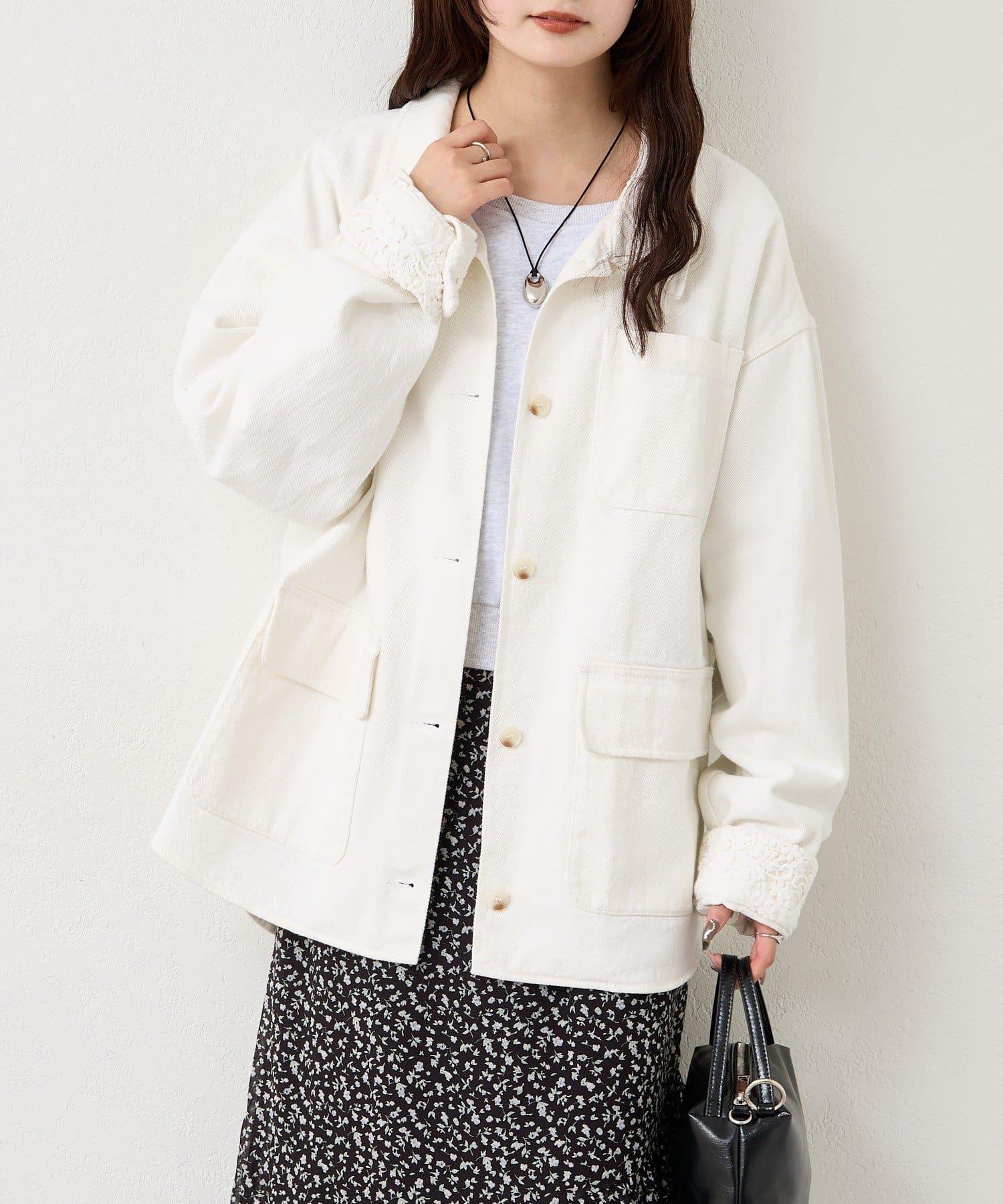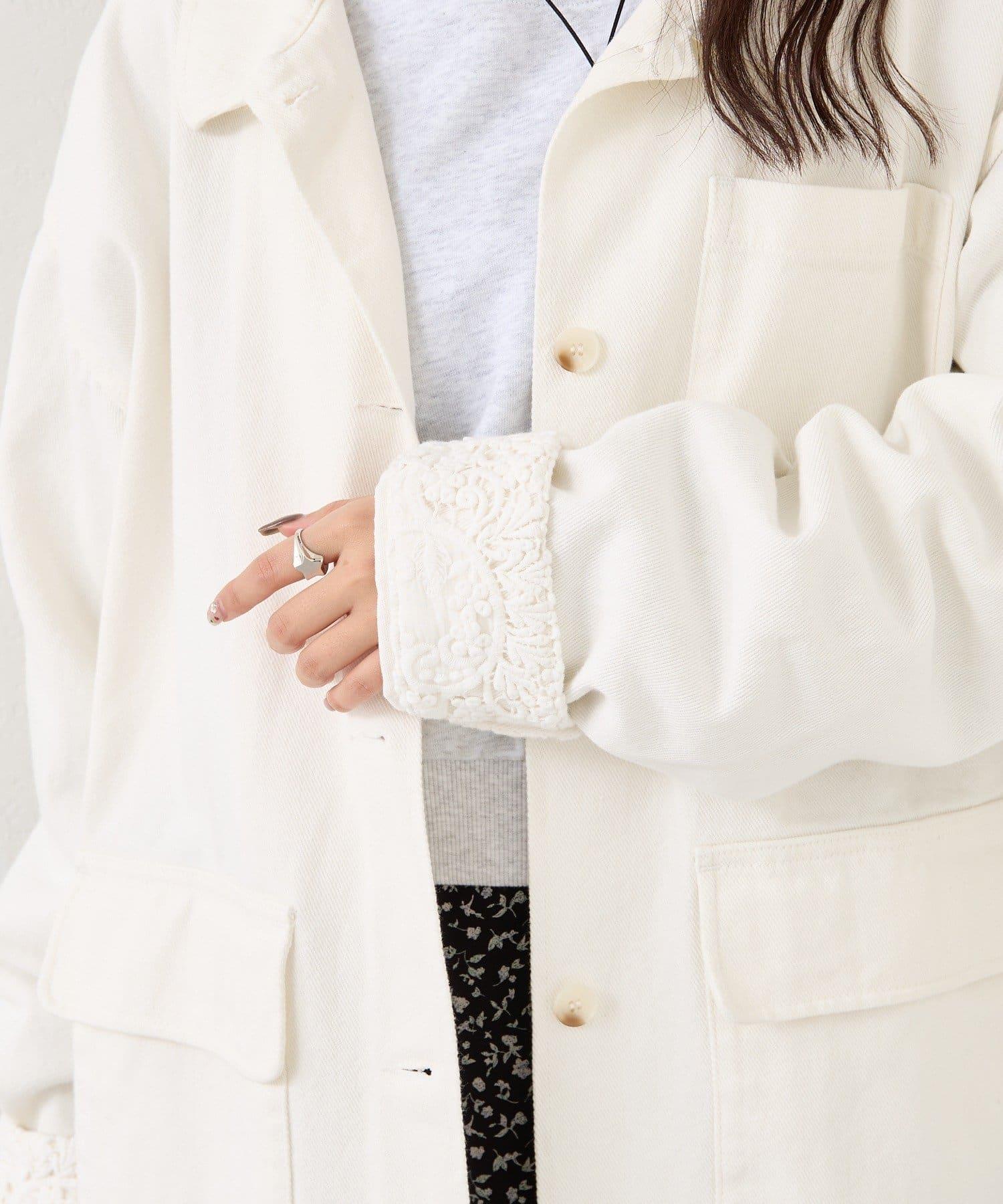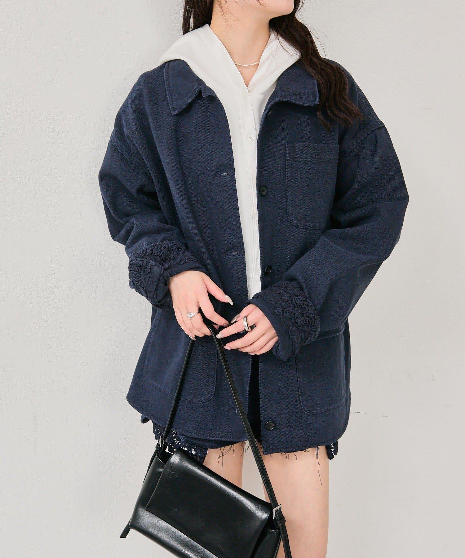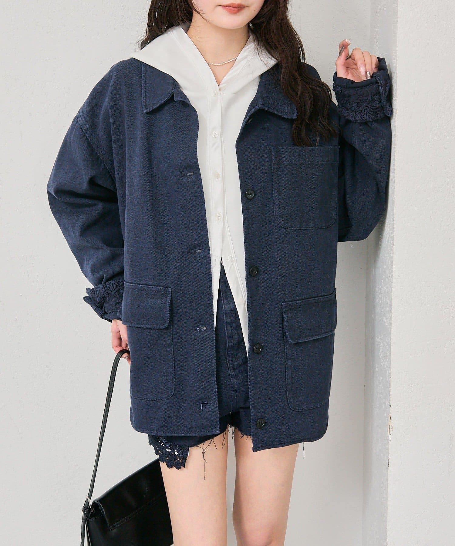 下襬蕾絲斜紋夾克