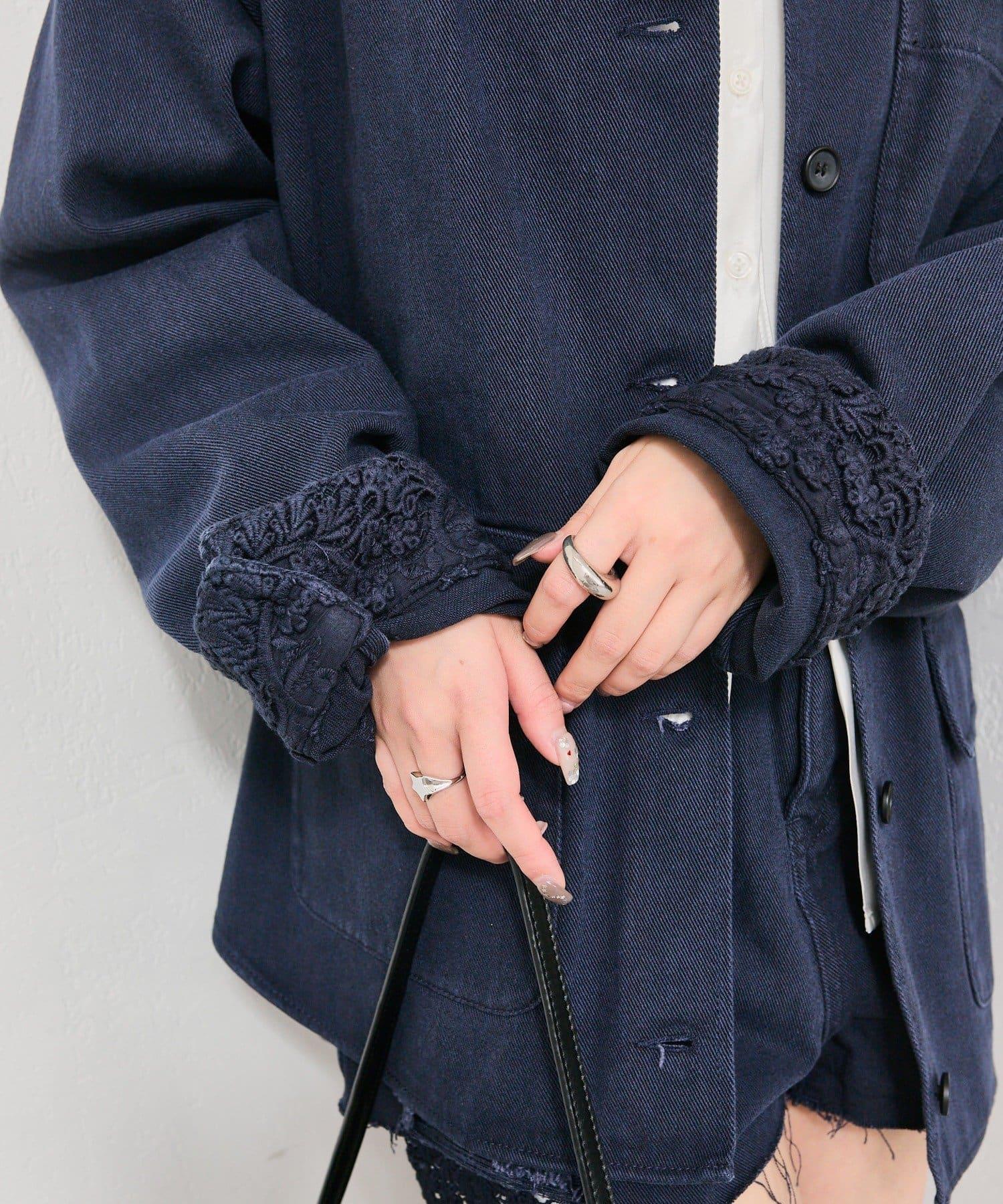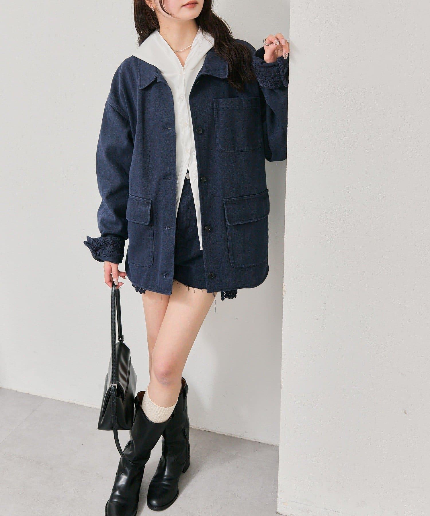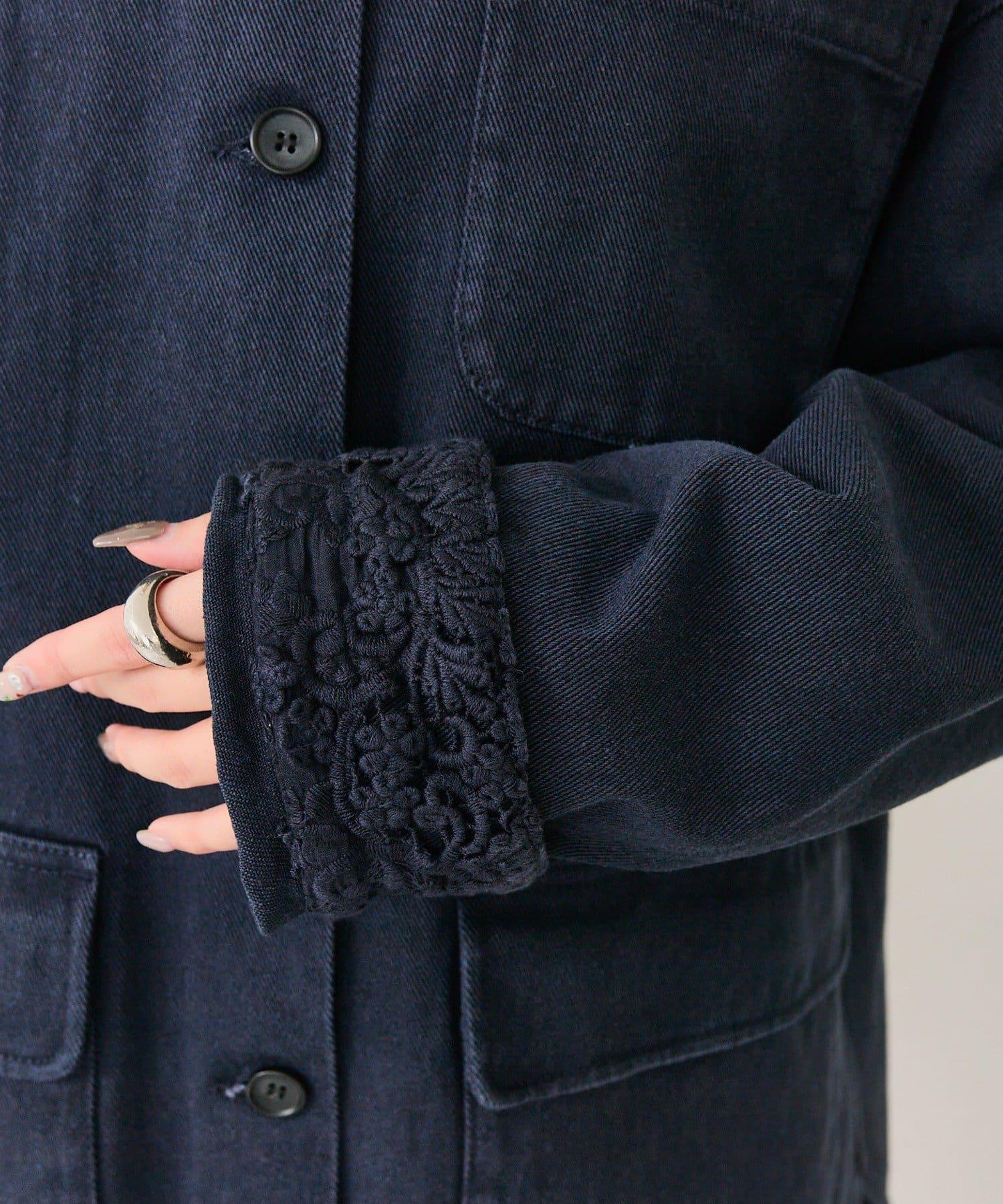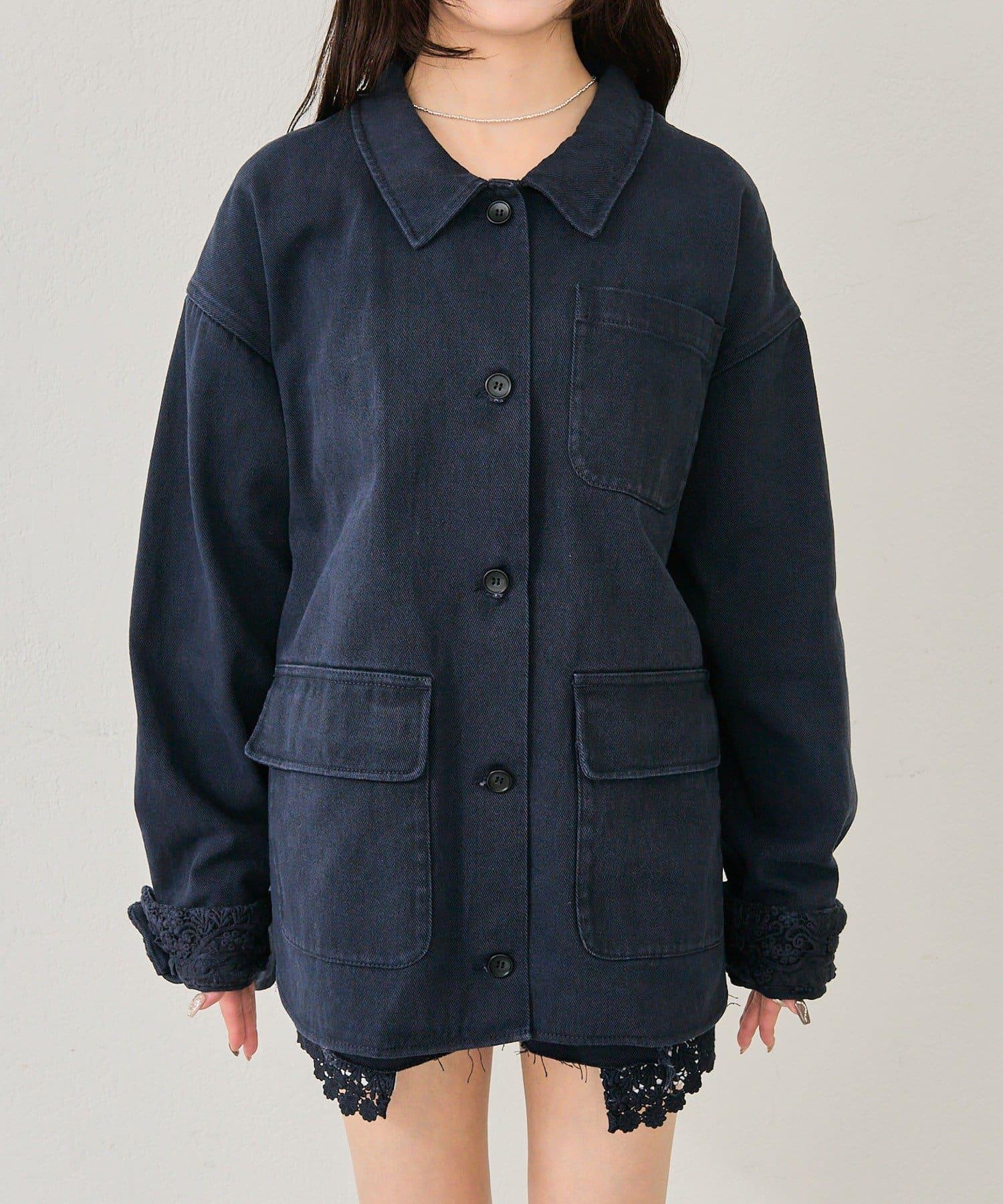 下襬蕾絲斜紋夾克