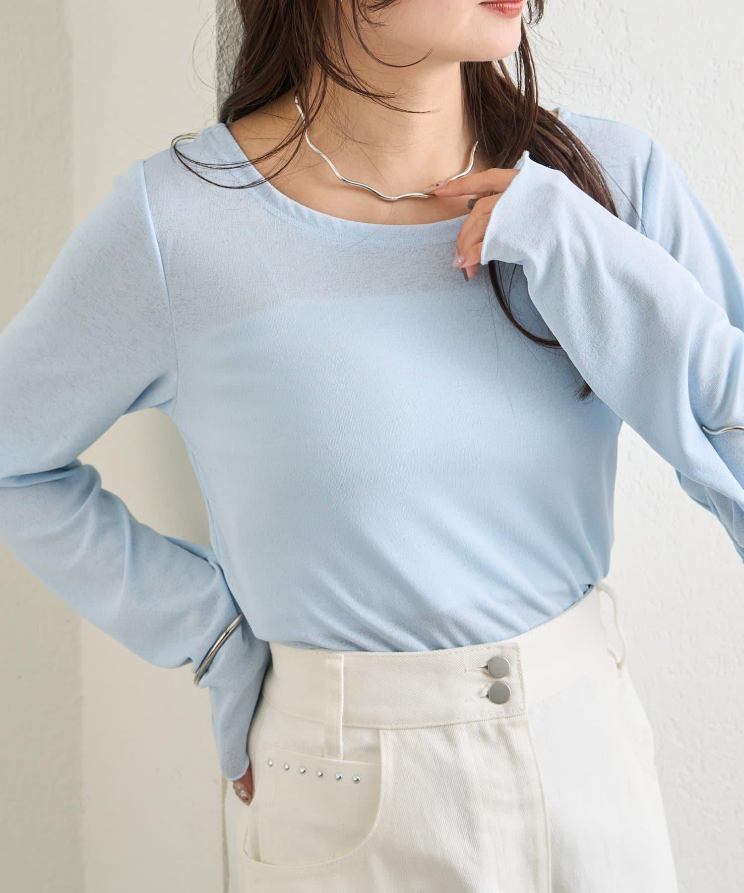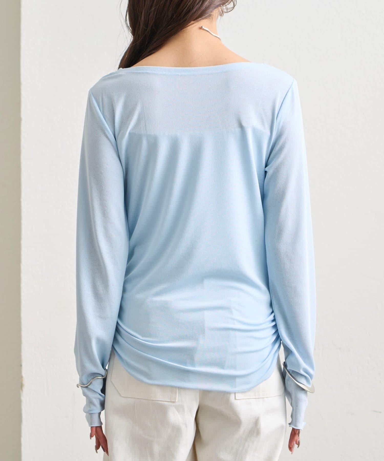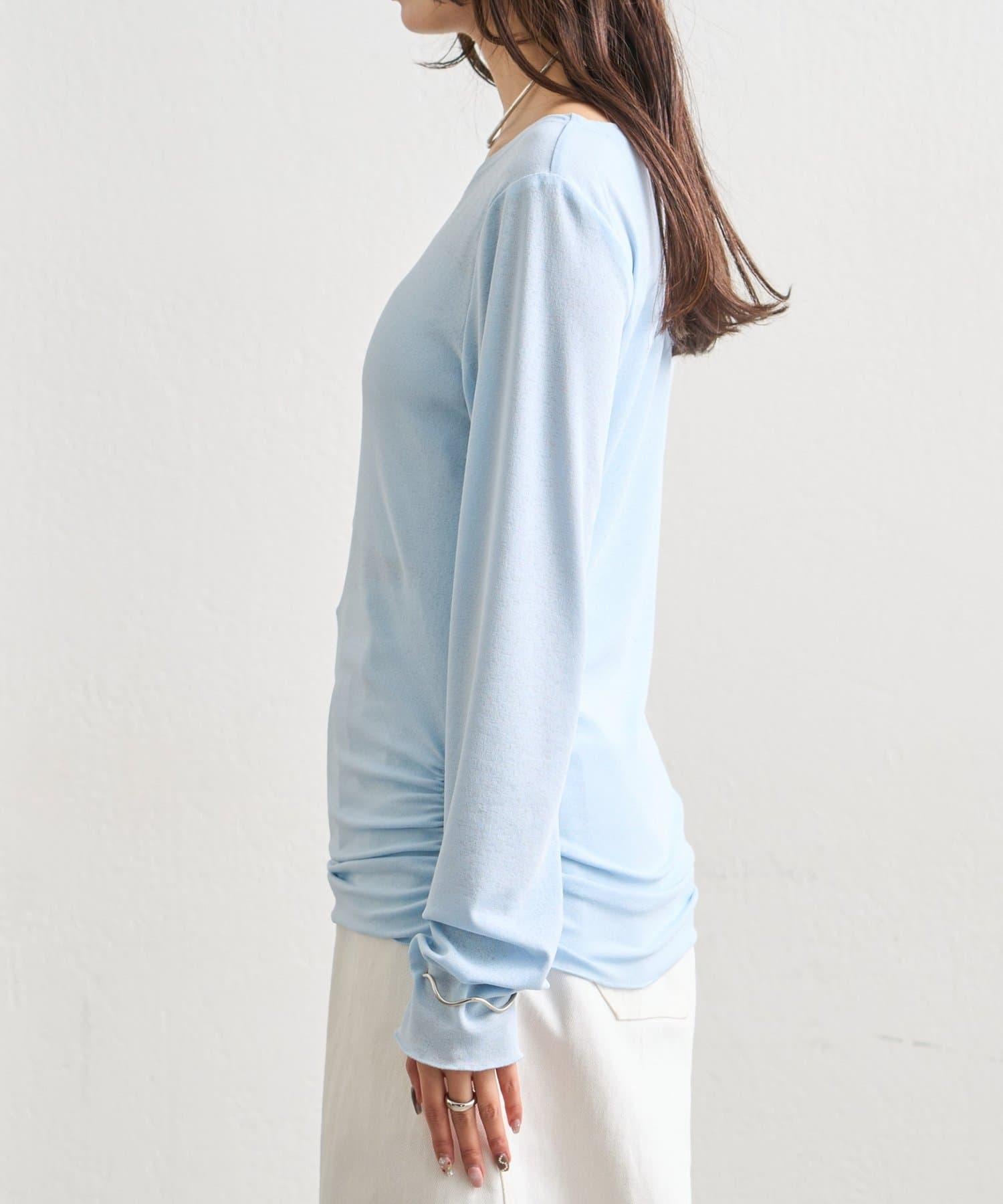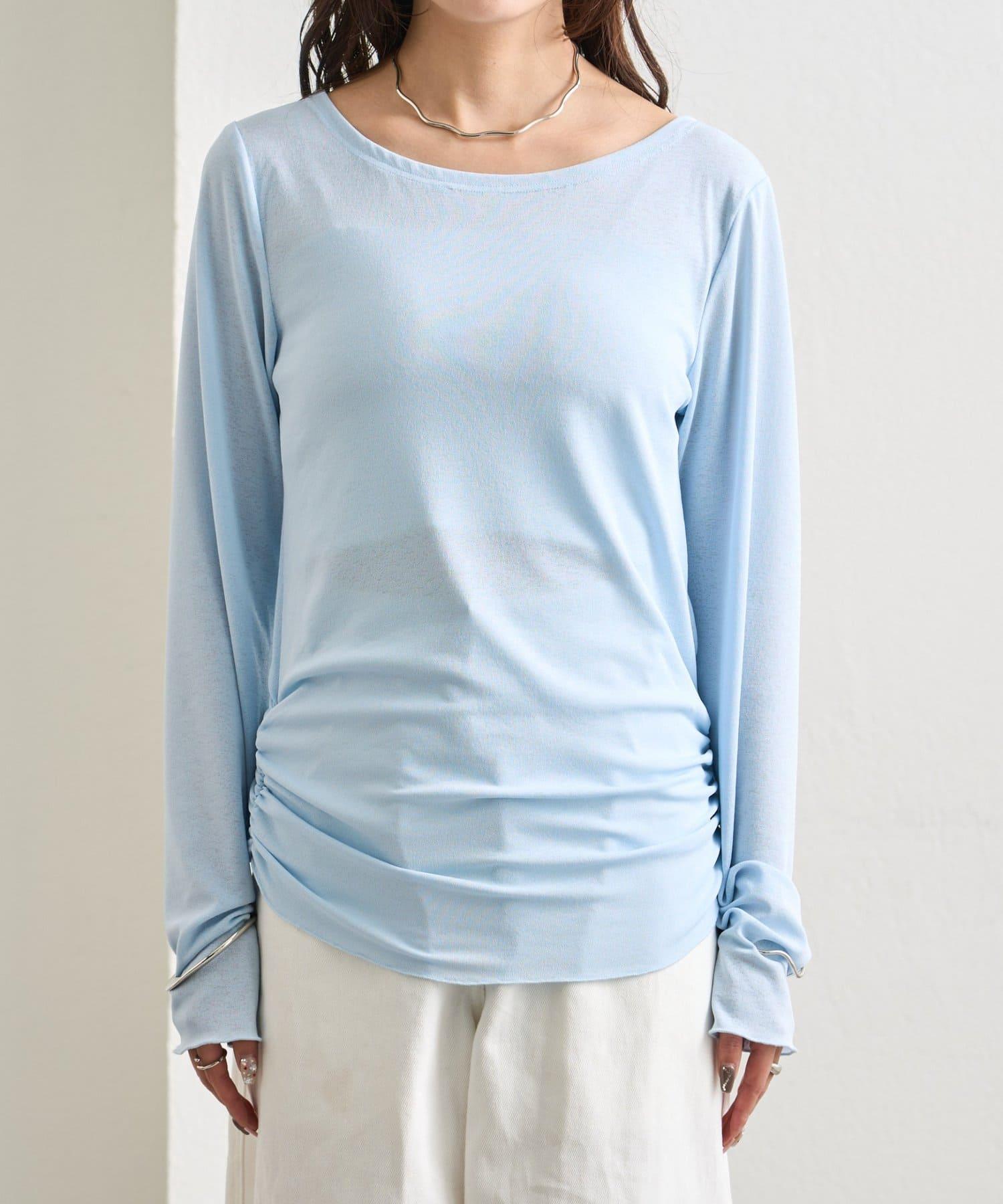 下襬褶皺透視長袖T恤